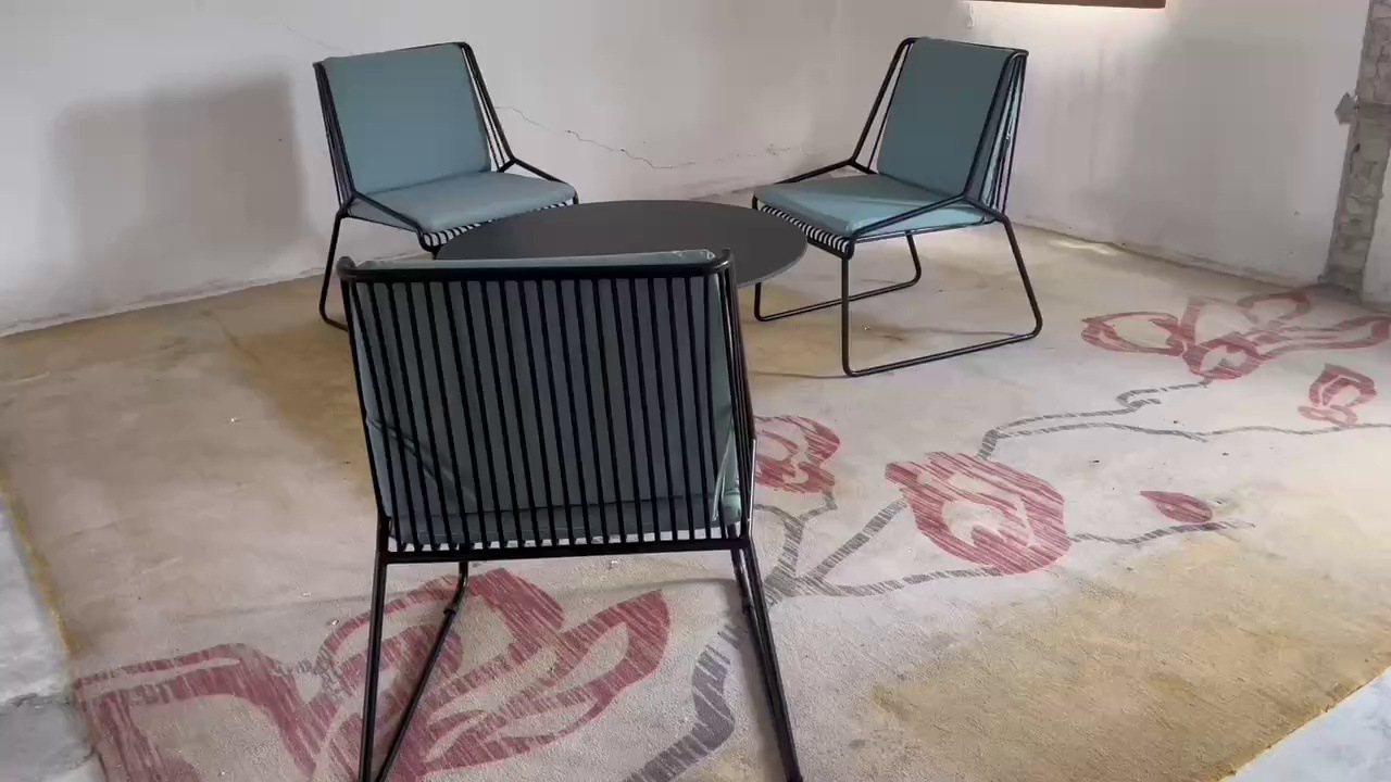 야외 테이블 및 의자 안뜰 판매 부서 스테인레스 스틸 방수 선 스크린 야외 정원 카페 발코니 레저 테이블 및 의자스토어 가기