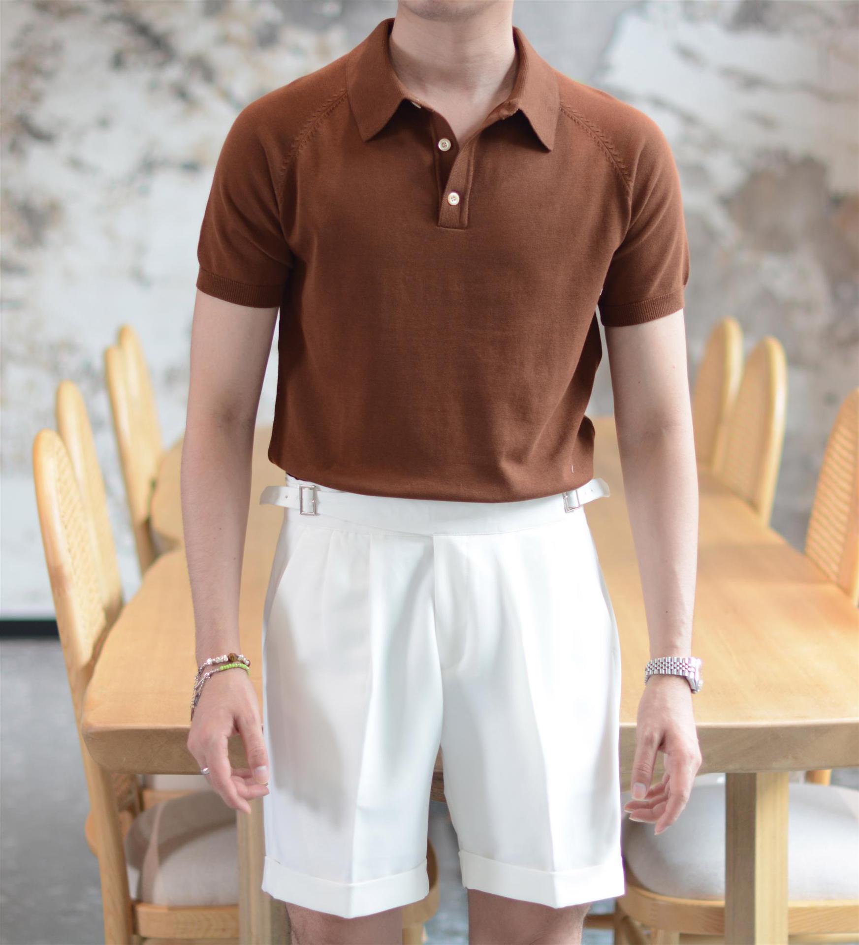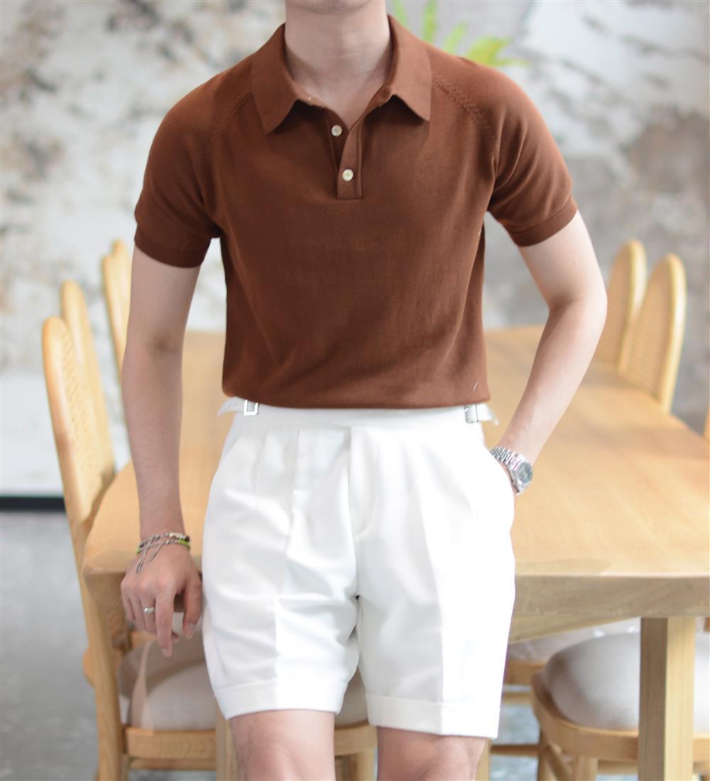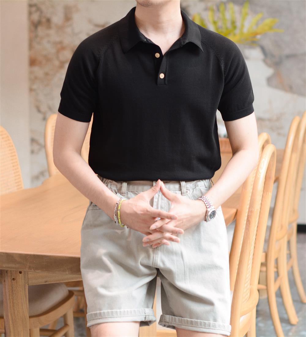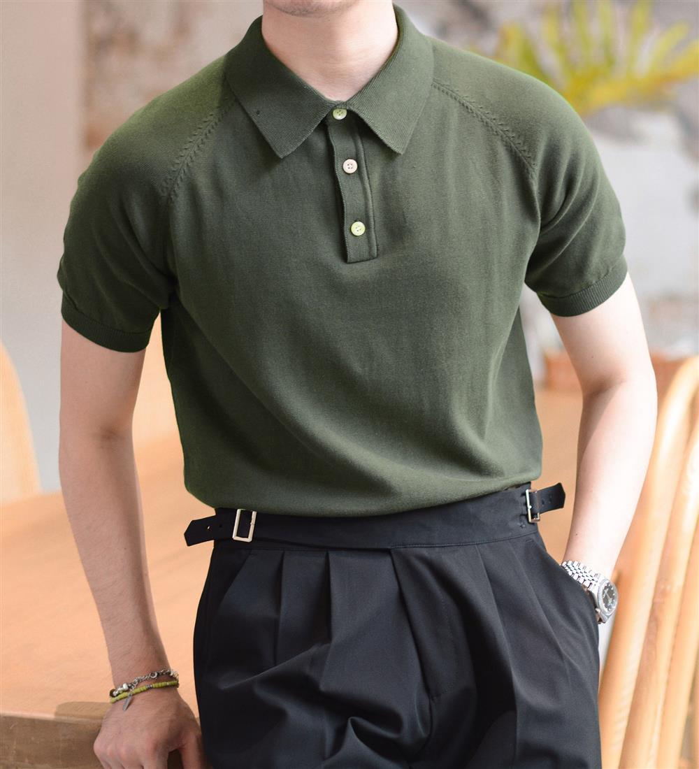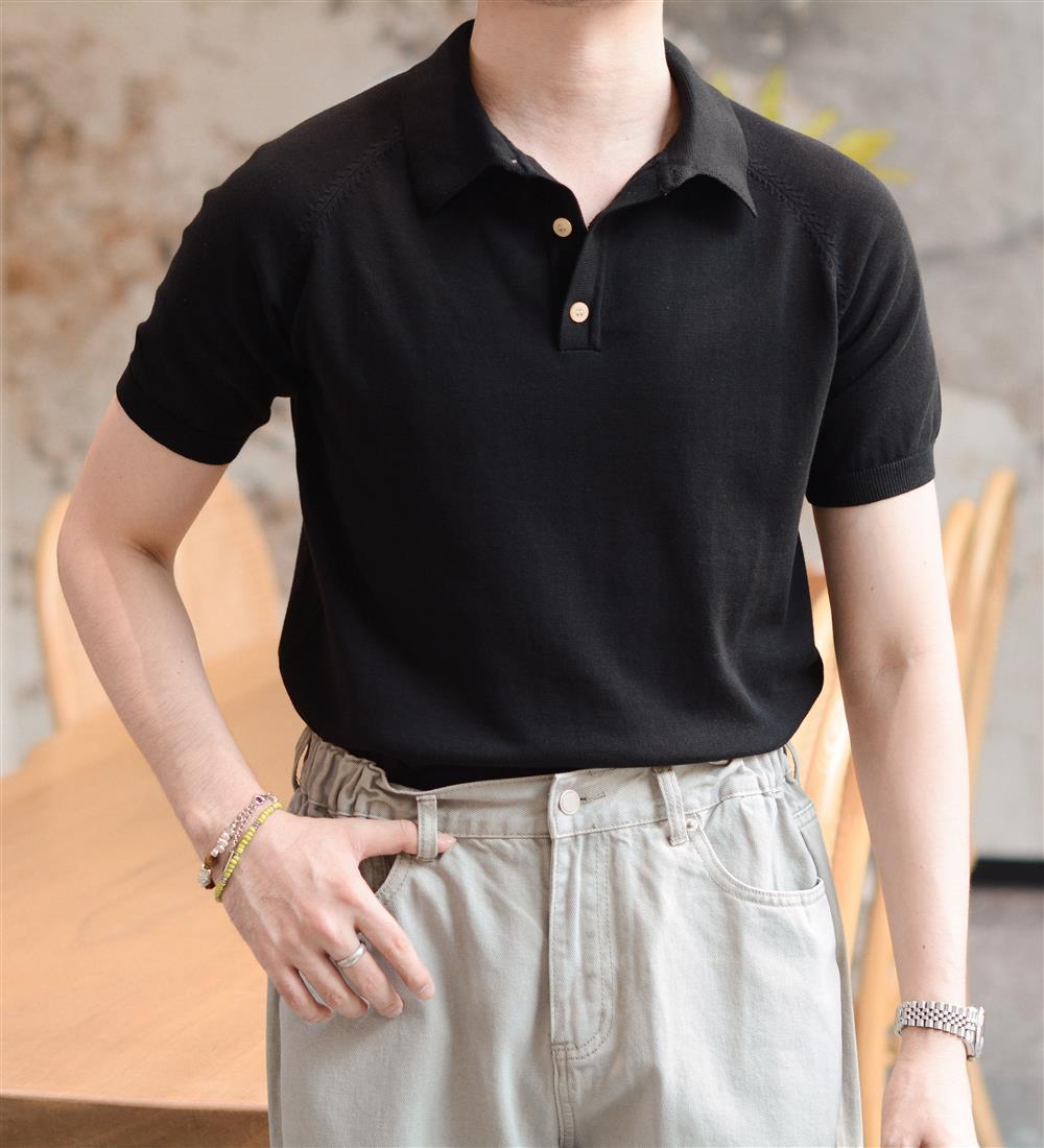 2025 여름 미국 하이 엔드 니트 반팔 폴로 셔츠 남성 패션 비즈니스 캐주얼 라글란 슬리브 라펠 티셔츠스토어 가기