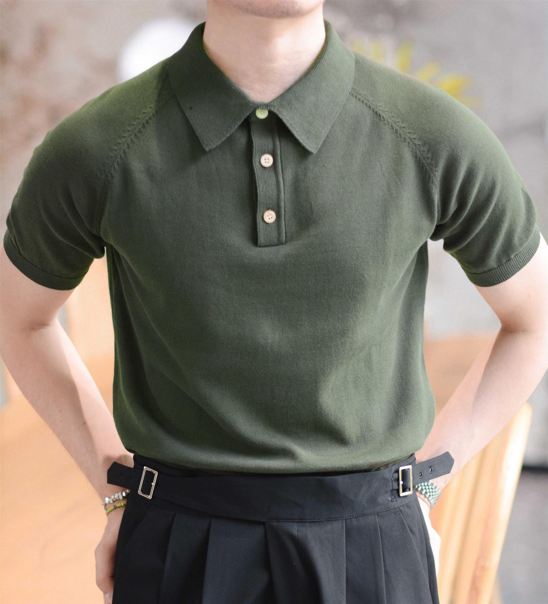 2025 여름 미국 하이 엔드 니트 반팔 폴로 셔츠 남성 패션 비즈니스 캐주얼 라글란 슬리브 라펠 티셔츠