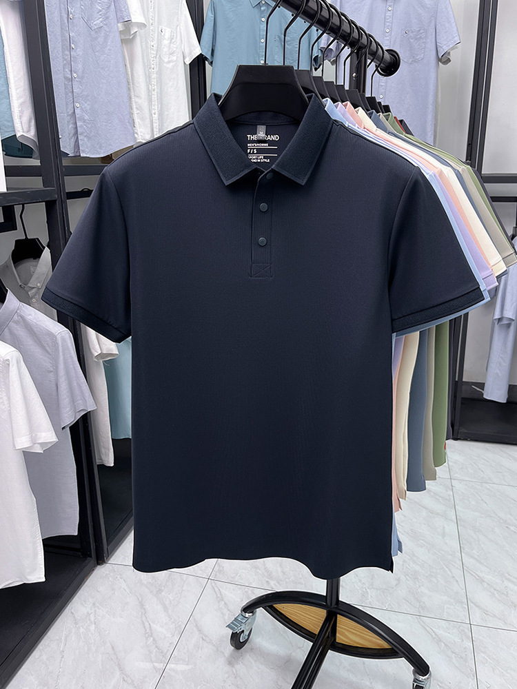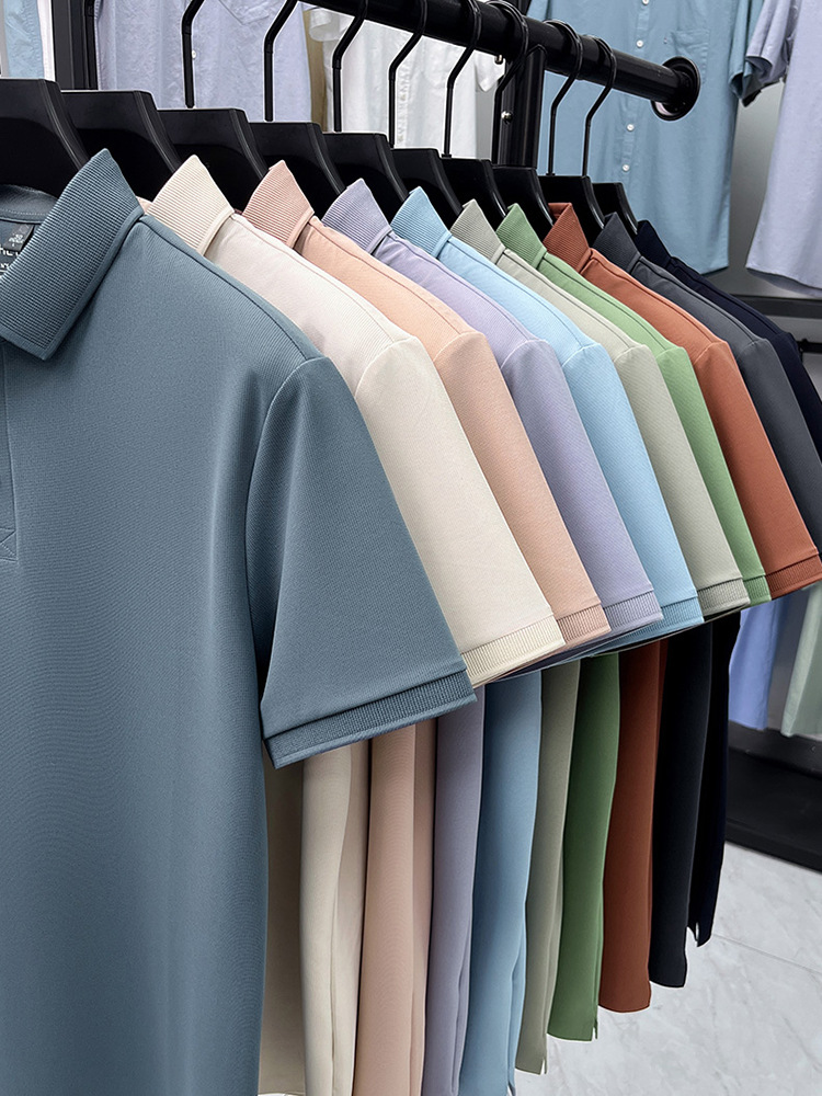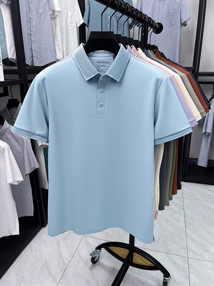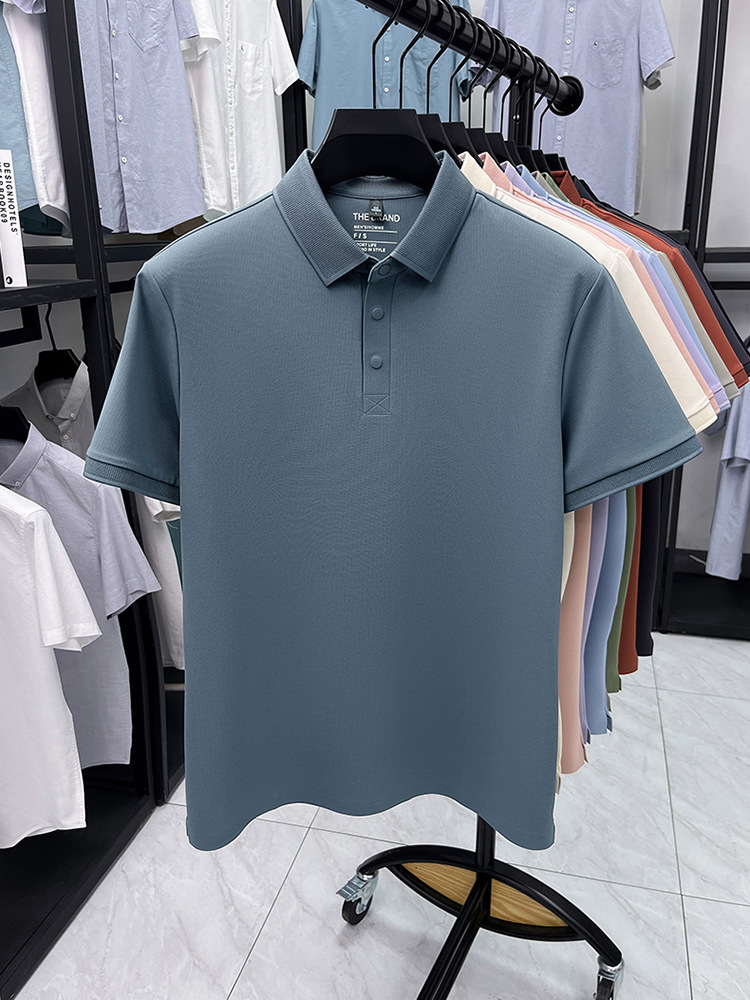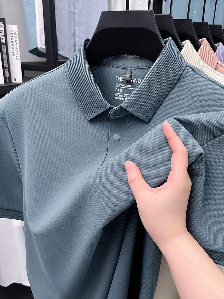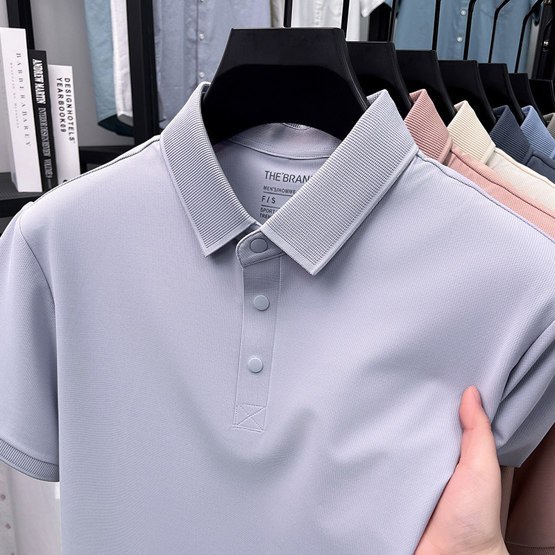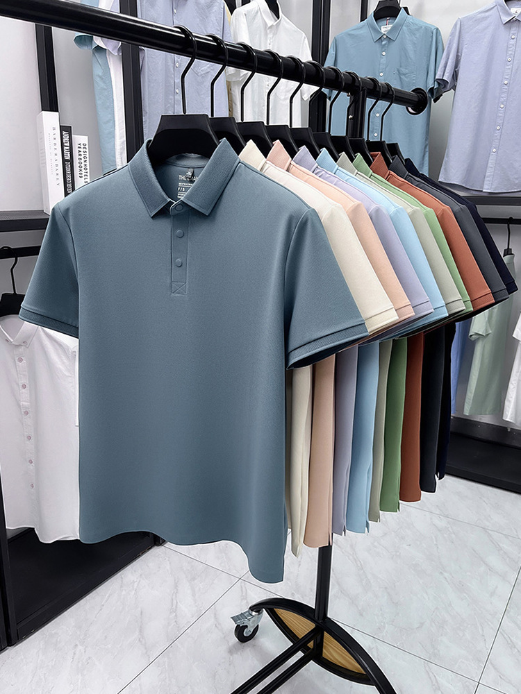 하단 슬릿 여름 신상 고급 비즈니스 남성 반팔 티셔츠 노다림방지 주름 방지 아이스 실크 솔리드 컬러 폴로 탑스토어 가기