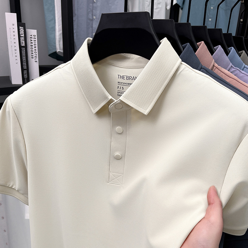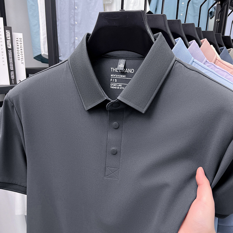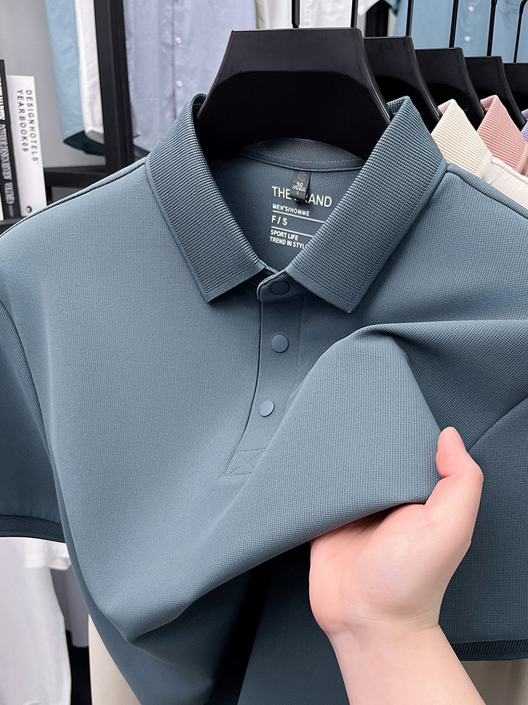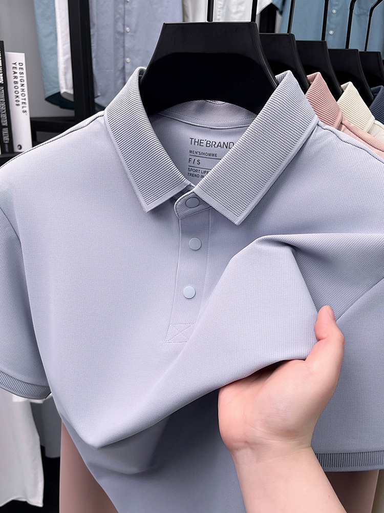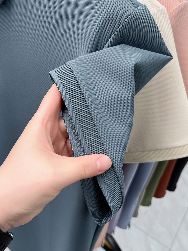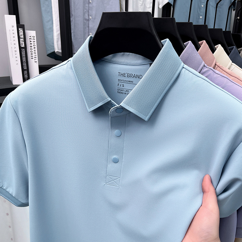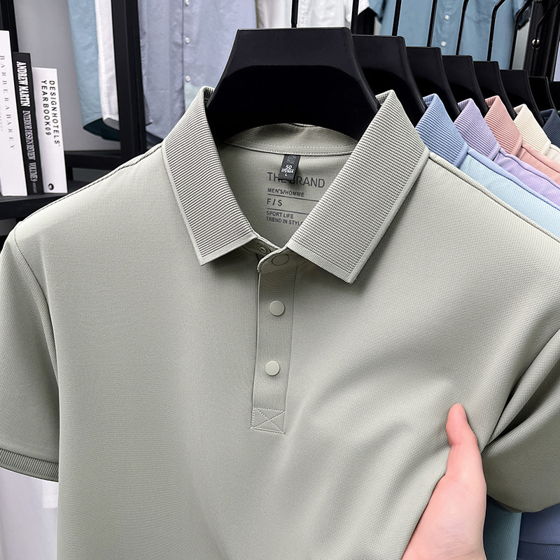 하단 슬릿 여름 신상 고급 비즈니스 남성 반팔 티셔츠 노다림방지 주름 방지 아이스 실크 솔리드 컬러 폴로 탑스토어 가기