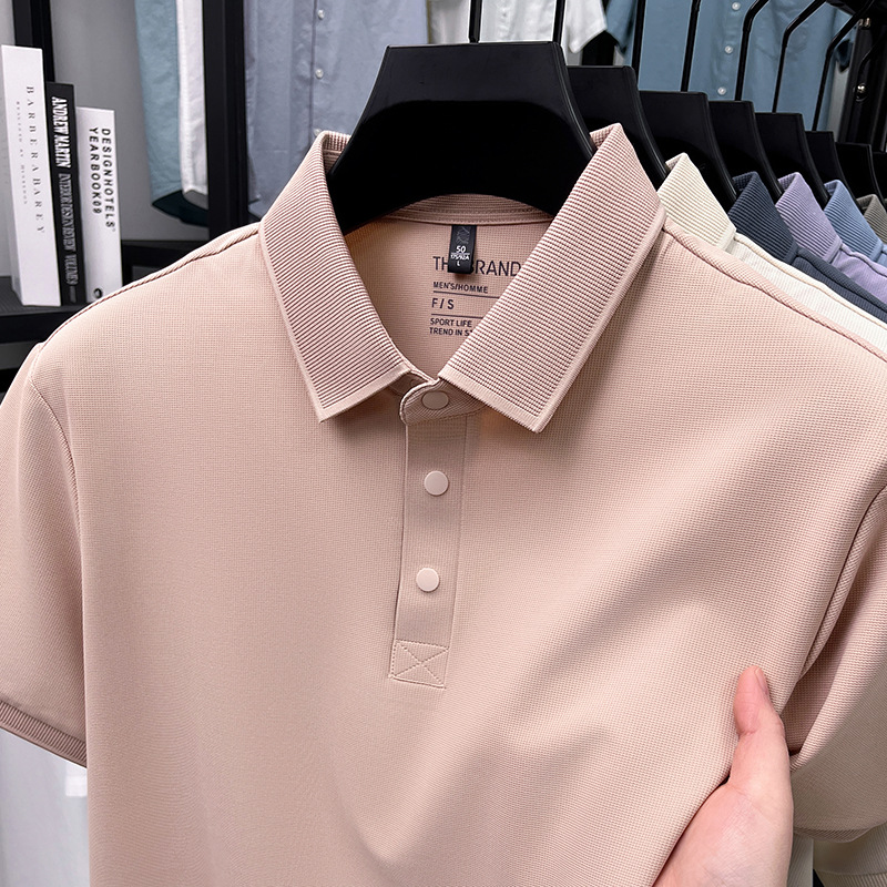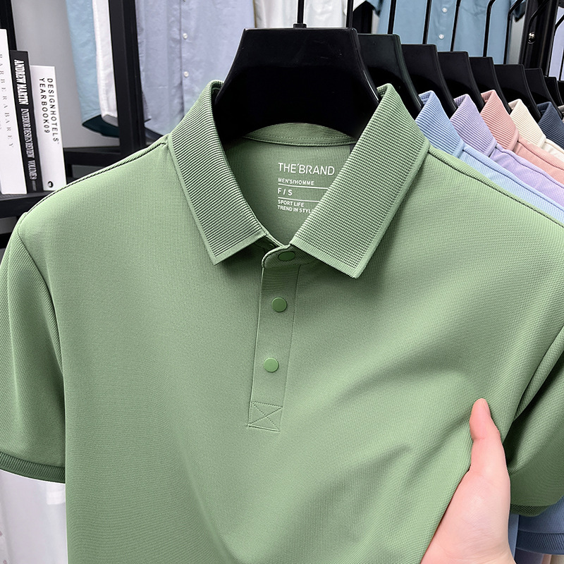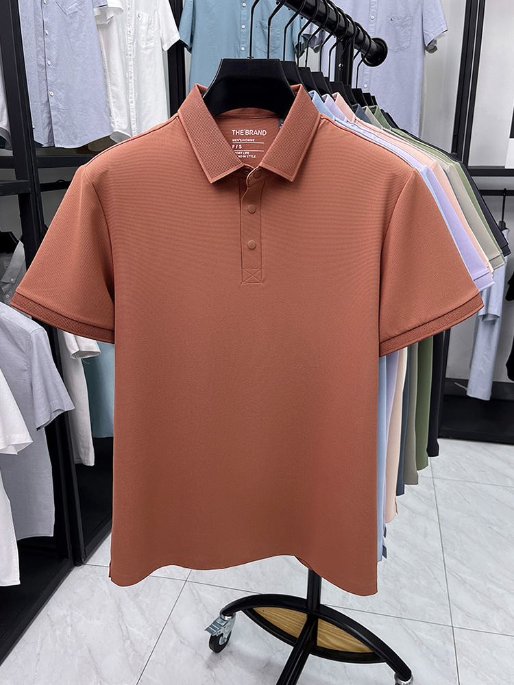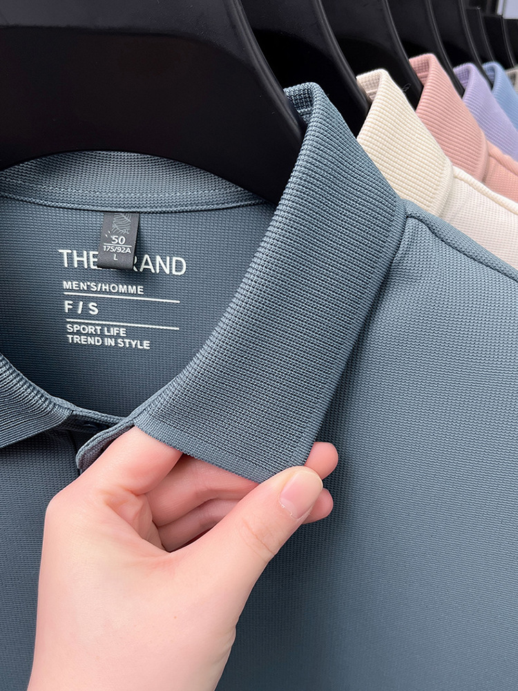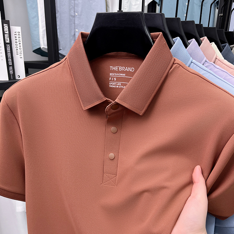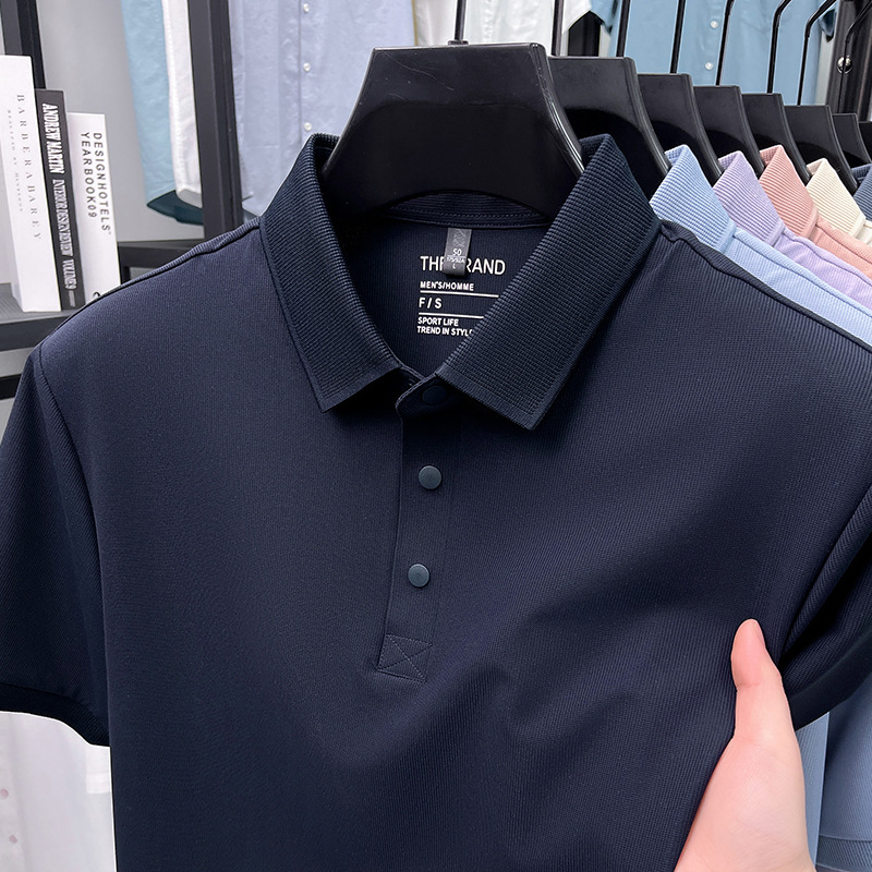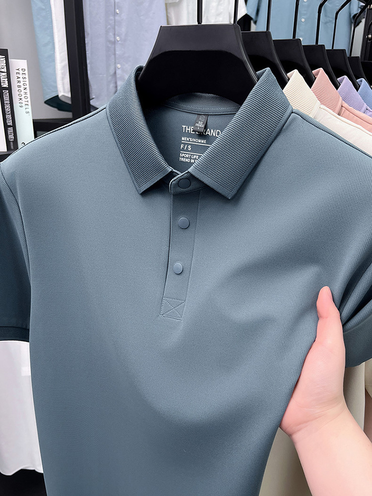 하단 슬릿 여름 신상 고급 비즈니스 남성 반팔 티셔츠 노다림방지 주름 방지 아이스 실크 솔리드 컬러 폴로 탑스토어 가기