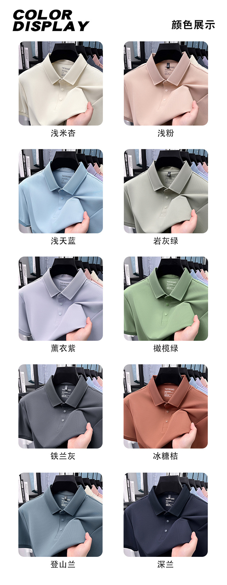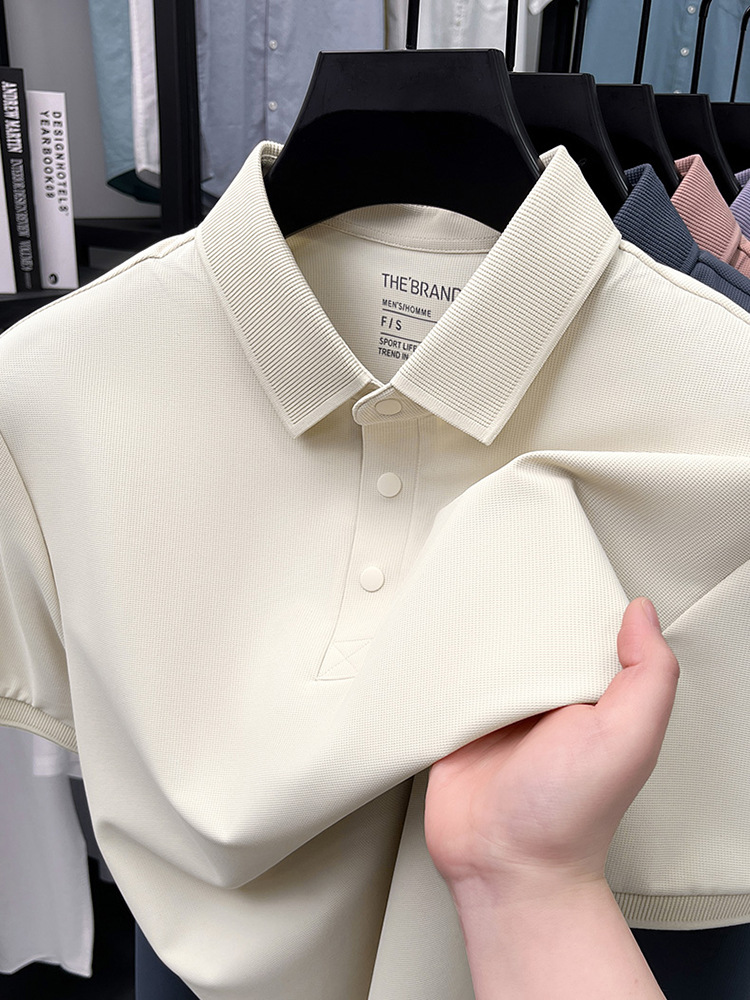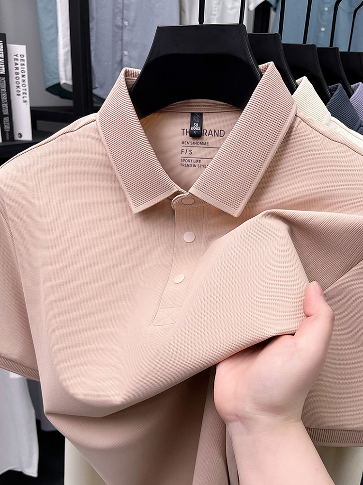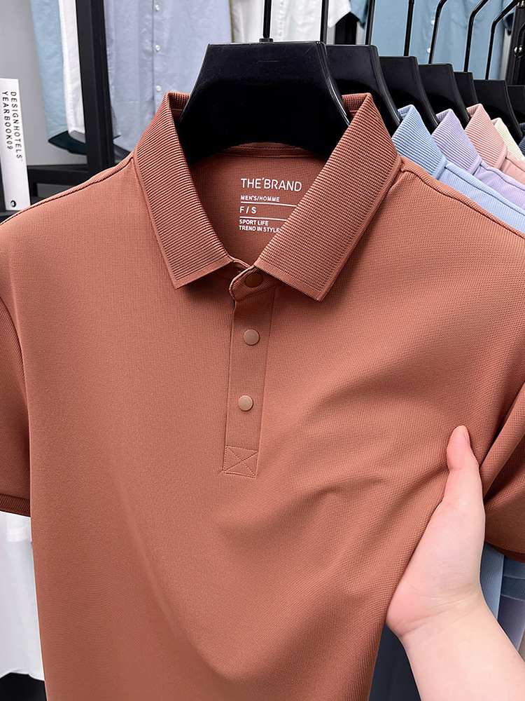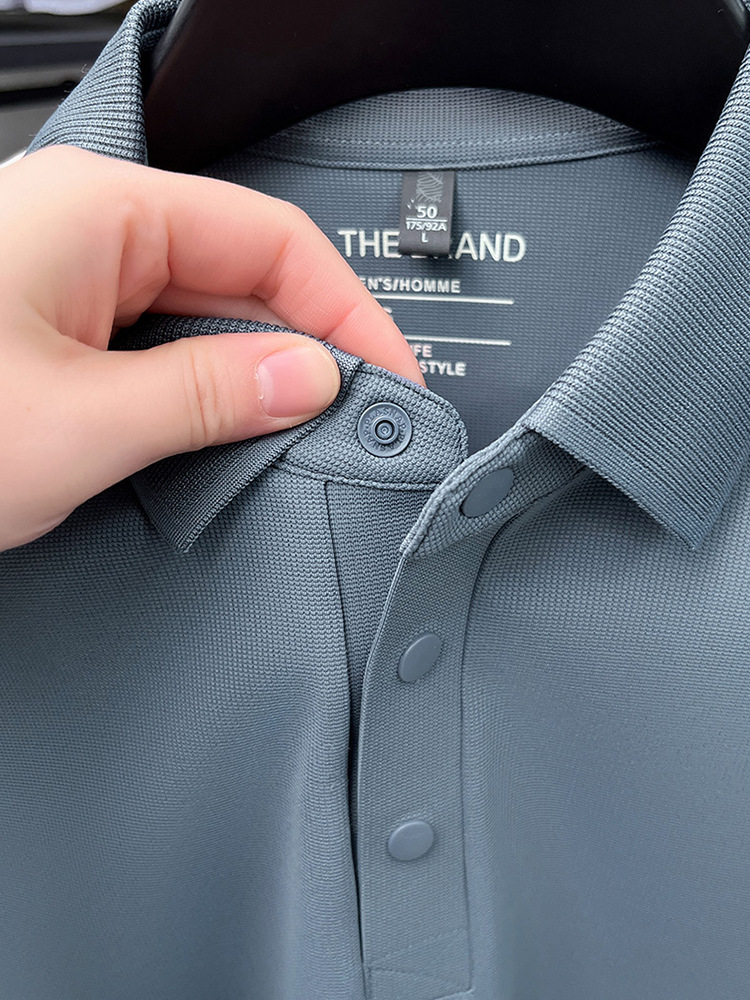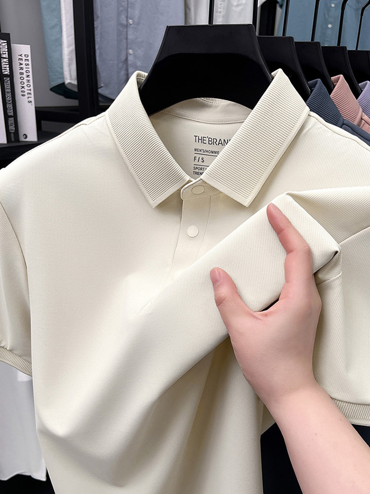 하단 슬릿 여름 신상 고급 비즈니스 남성 반팔 티셔츠 노다림방지 주름 방지 아이스 실크 솔리드 컬러 폴로 탑스토어 가기