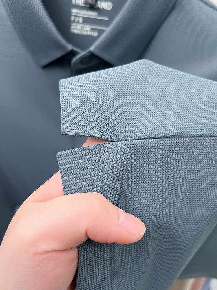 하단 슬릿 여름 신상 고급 비즈니스 남성 반팔 티셔츠 노다림방지 주름 방지 아이스 실크 솔리드 컬러 폴로 탑