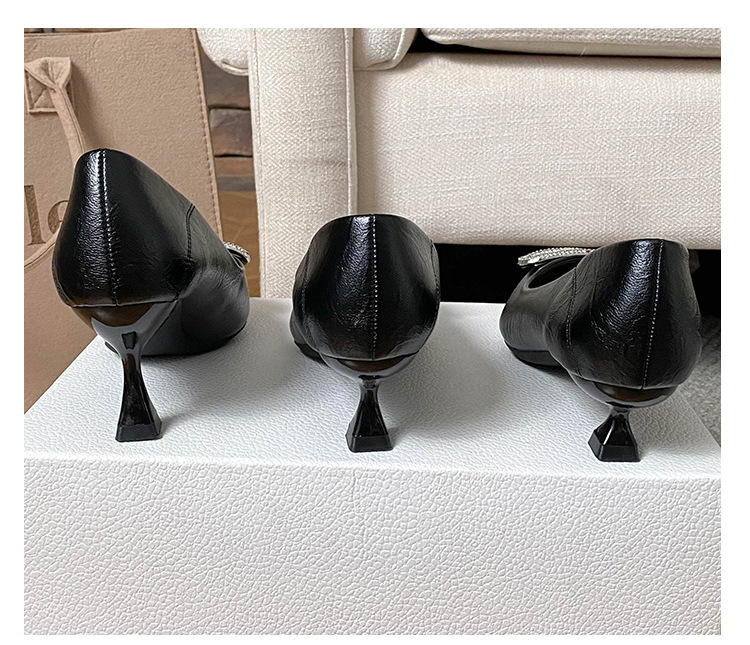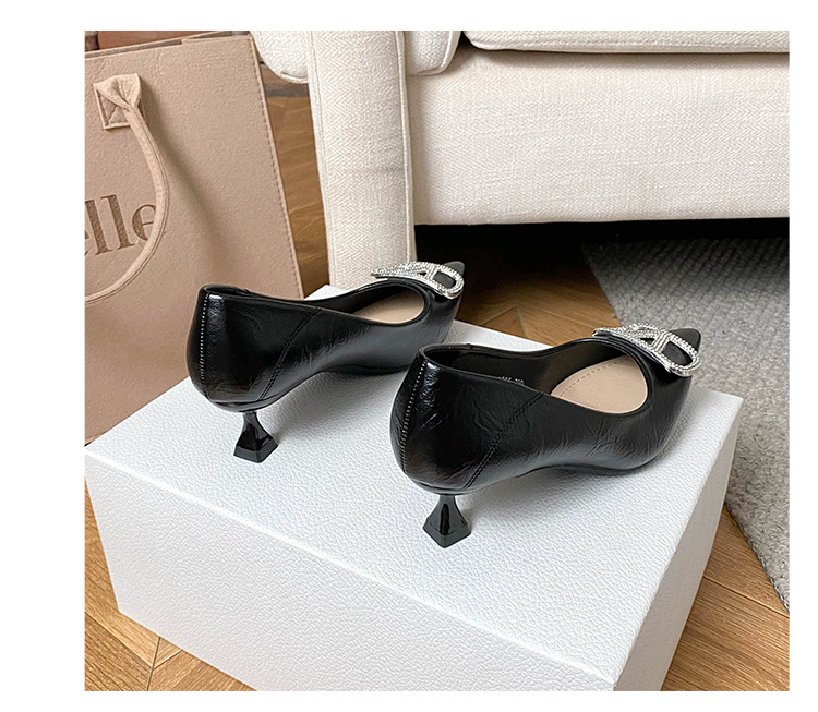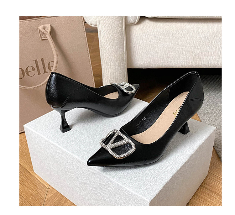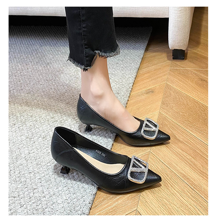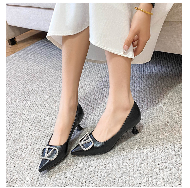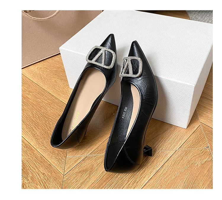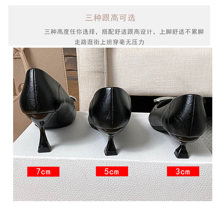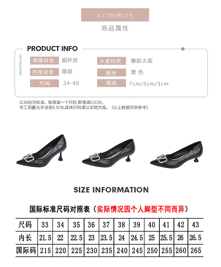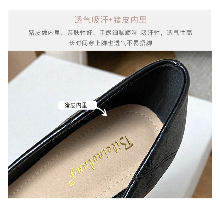 25 봄과 가을 뾰족한 금속 V-버클 특허 가죽 누드 플랫 얕은 입 연예인 스타일 내부 높이 증가 스몰 사이즈 싱글 신발 프리미엄 감각