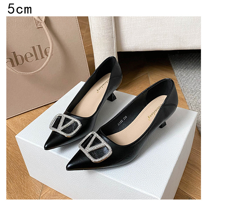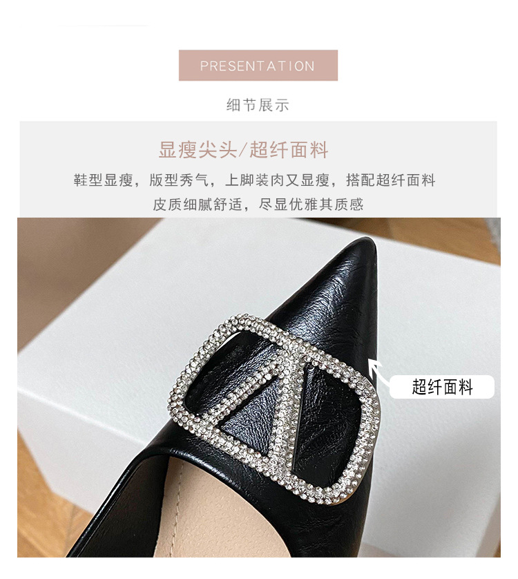 25 봄과 가을 뾰족한 금속 V-버클 특허 가죽 누드 플랫 얕은 입 연예인 스타일 내부 높이 증가 스몰 사이즈 싱글 신발 프리미엄 감각스토어 가기