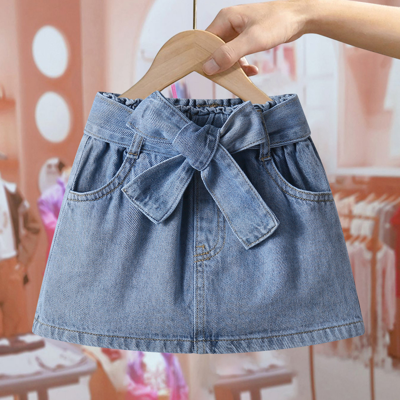 여자 여름 데님 스커트 2025 새로운 어린이 여름 한국 스타일 짧은 치마 여자 얇은 나비 스커트 바지스토어 가기