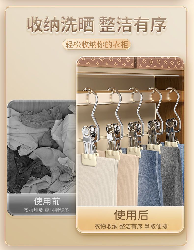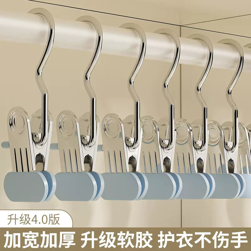 스테인리스 바지걸이 옷걸이 가정용 무자국 바지걸이 다기능 후크 바지 보관 건조 클립 모자 클립 미끄럼 방지스토어 가기