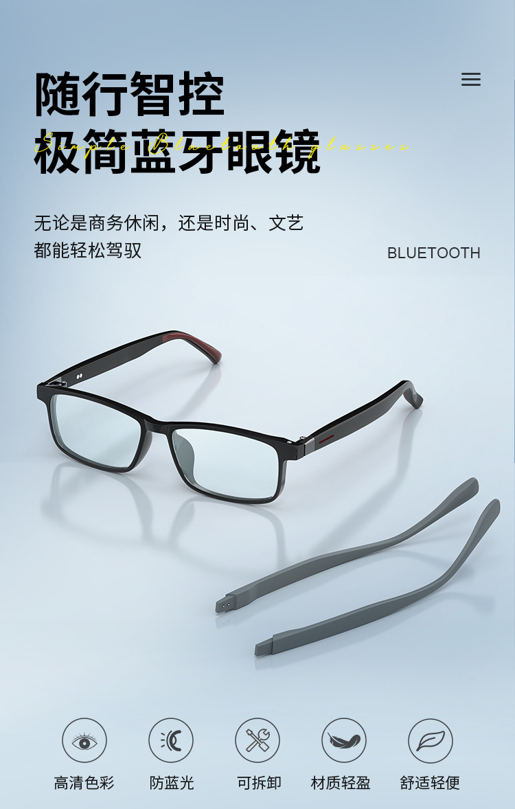 2025 패션 TR 사각형 탈부착 가능한 안경다리 블루투스 안경 AI 번역 G07 근시 렌즈 장착 가능 도매 눈 보호스토어 가기