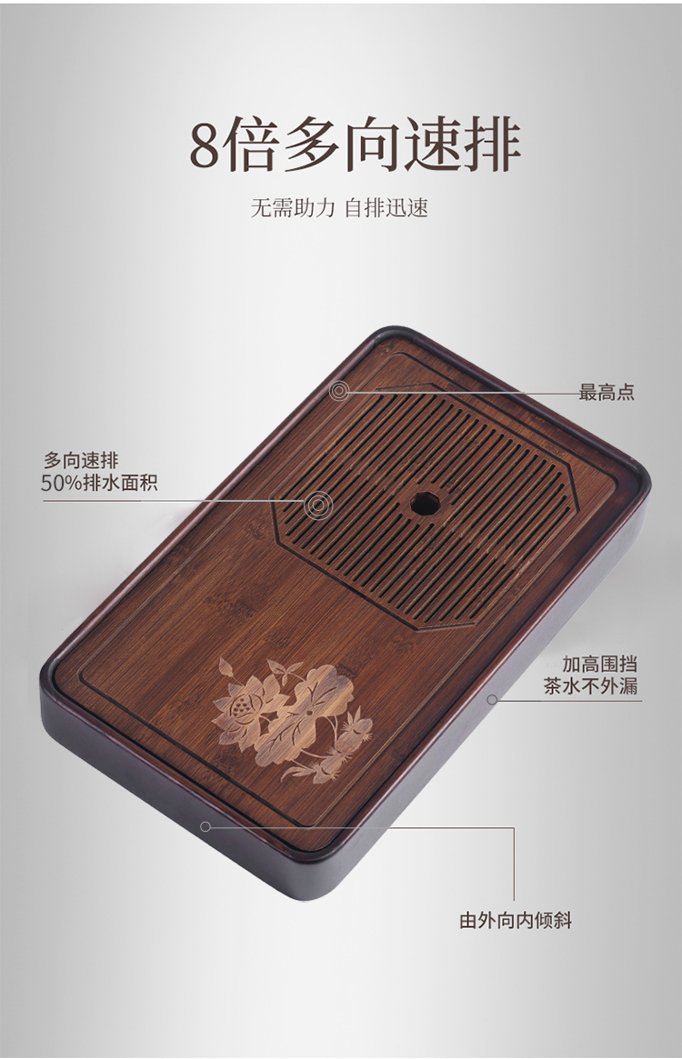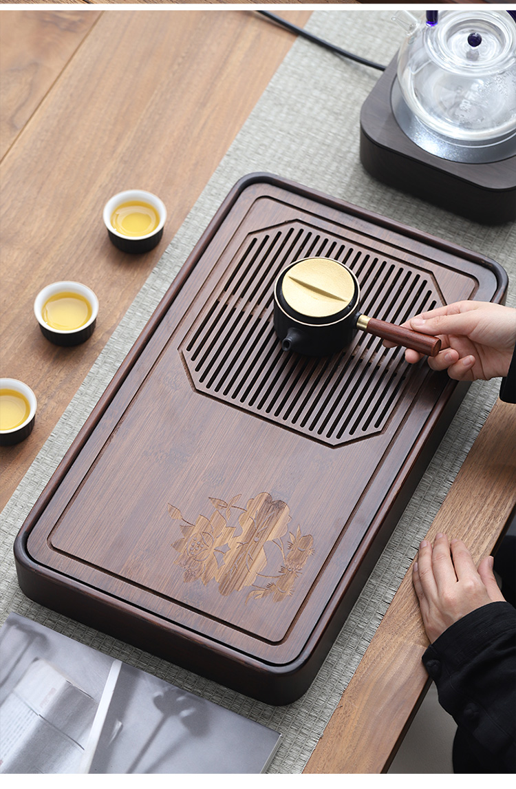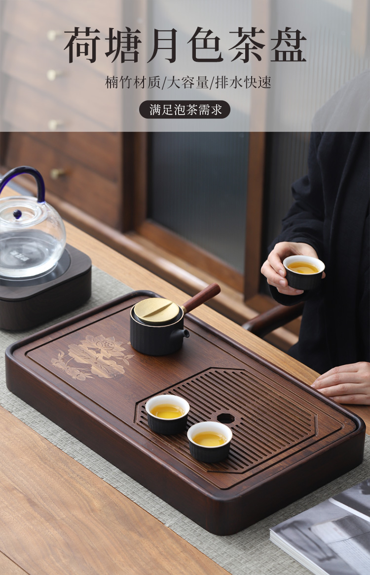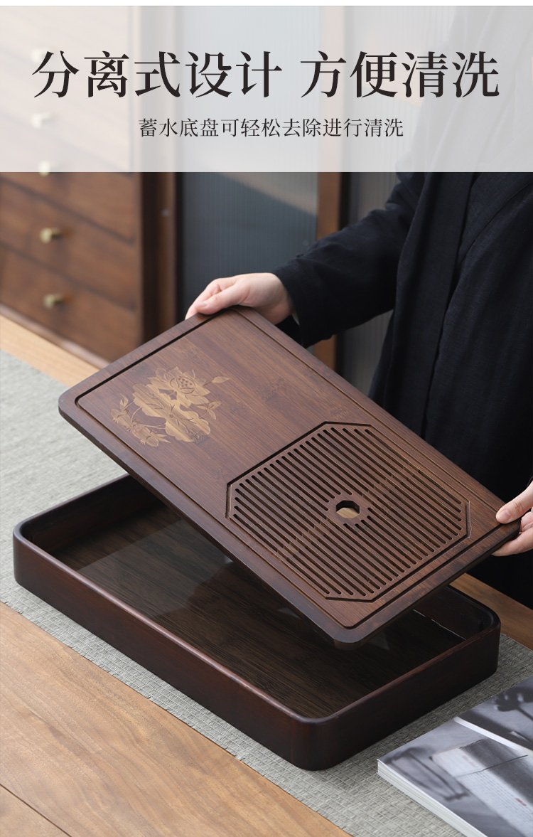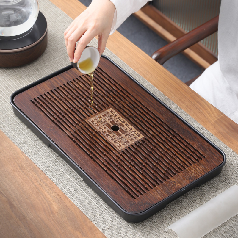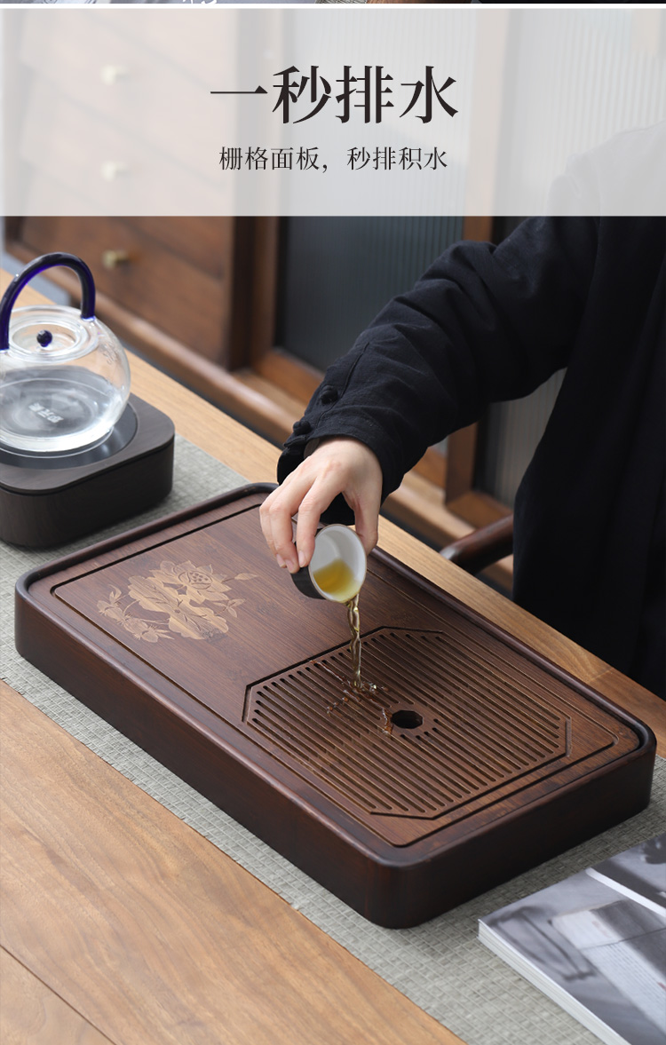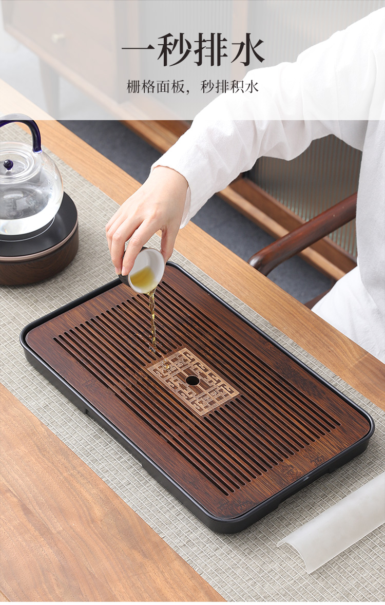 zx 차 트레이 가정용 물 저장 차 세트 트레이 데스크탑 쿵푸 차 바다 대나무 단단한 나무 간단한 배수 건조 버블 소형