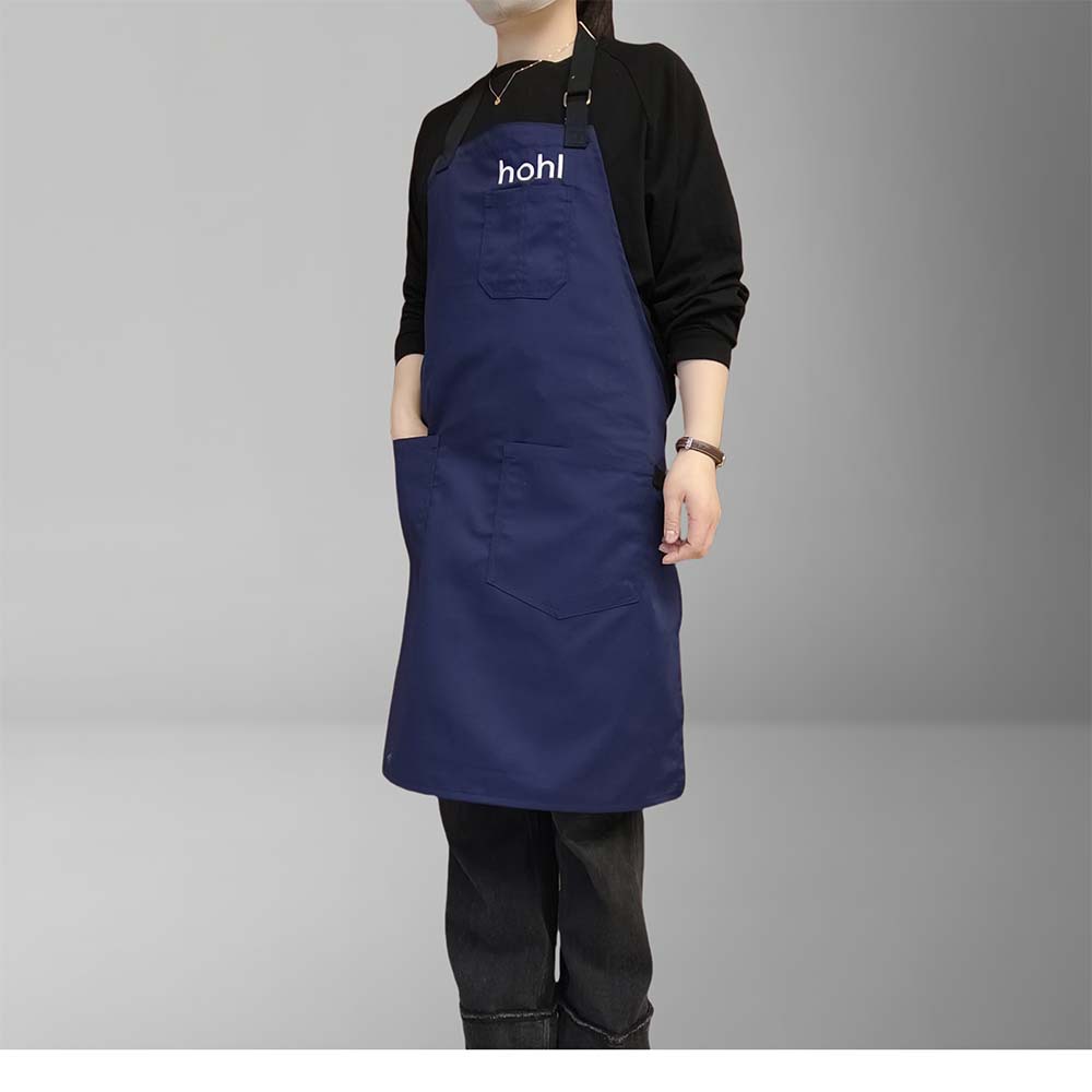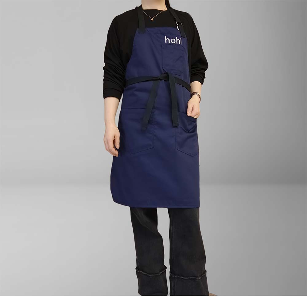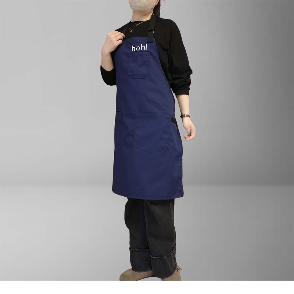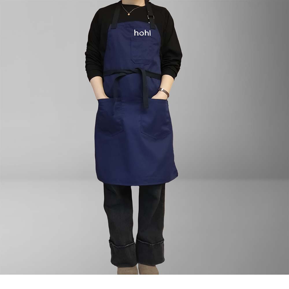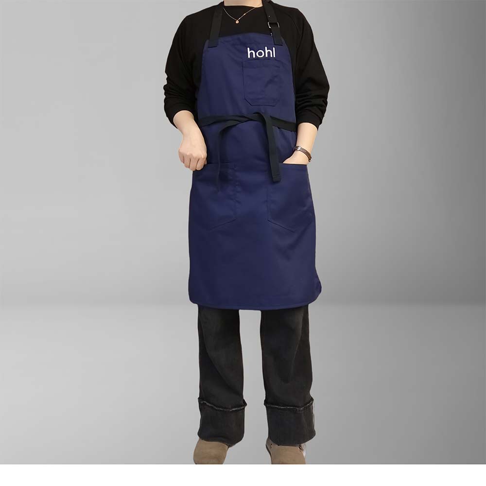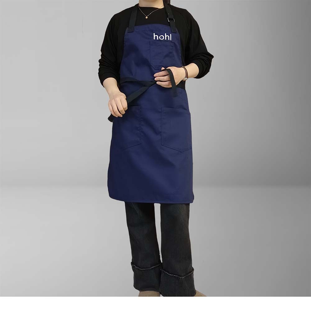 네이비 블루 폴리에스터 면 앞치마, 홀터넥, 맞춤형 로고, 심플한 밀크티 샵, 카페, 주방, 매니큐어, 방오스토어 가기