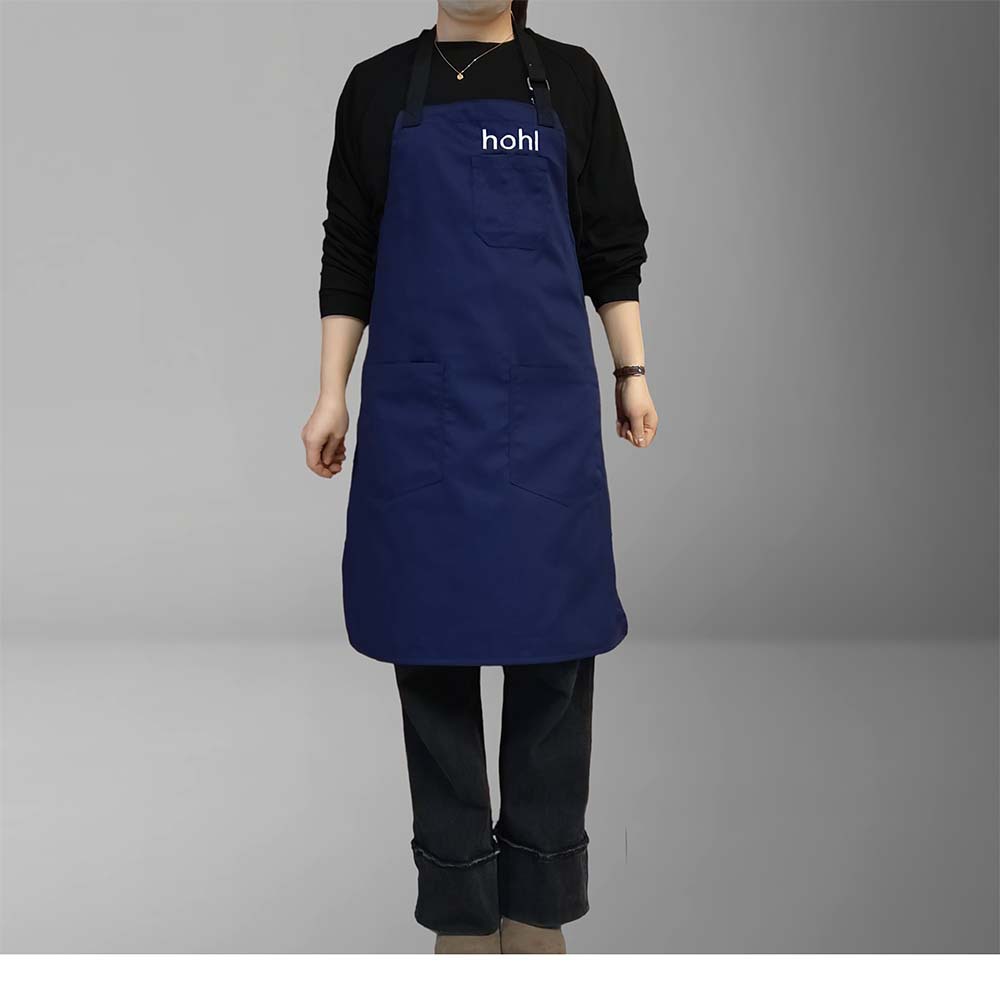 네이비 블루 폴리에스터 면 앞치마, 홀터넥, 맞춤형 로고, 심플한 밀크티 샵, 카페, 주방, 매니큐어, 방오