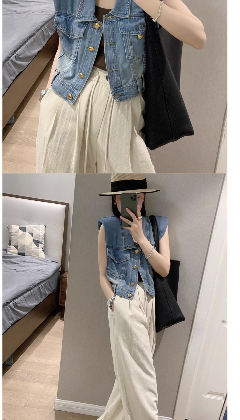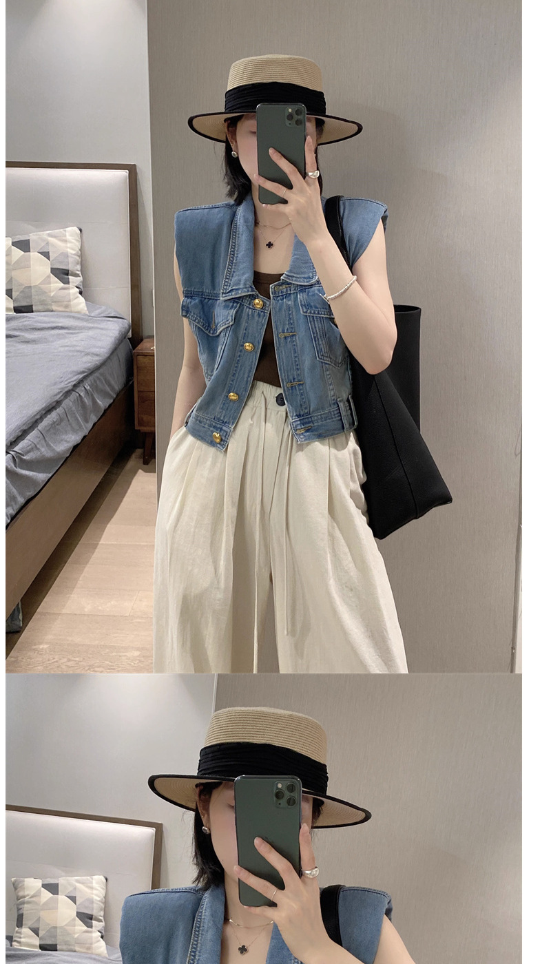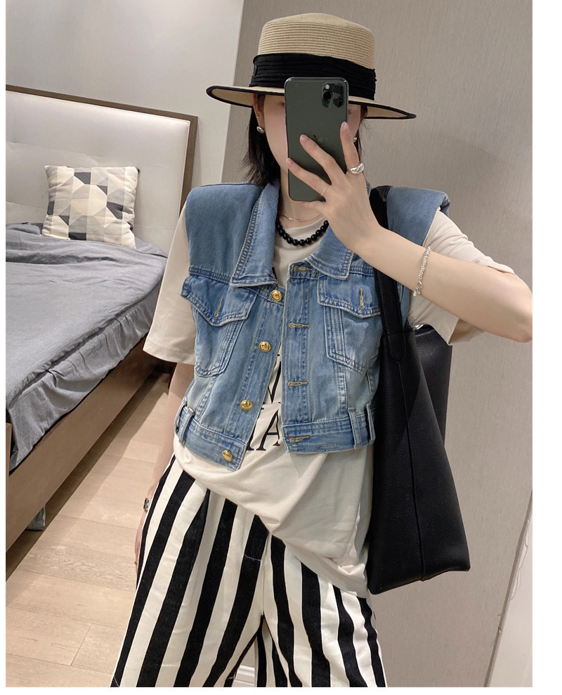 홍콩 스타일 빈티지 세련된 데님 조끼 여성 여름 하이 엔드 쇼트 외부 소매 자켓 웨이스트 코트 탑스토어 가기