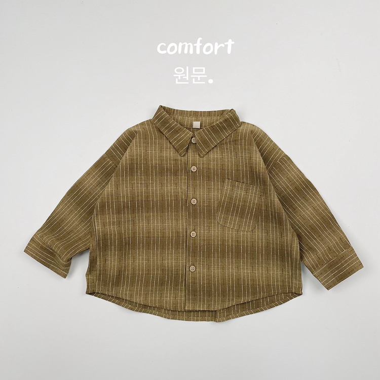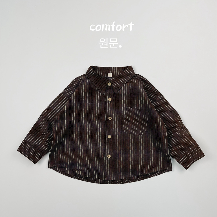 소년 소녀를위한 일본 쌓을 수있는 한국 스타일 레트로 줄무늬 셔츠 재킷 2024 봄 어린이 긴 소매 카디건 탑