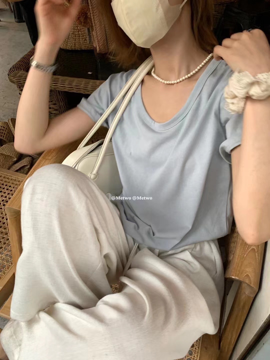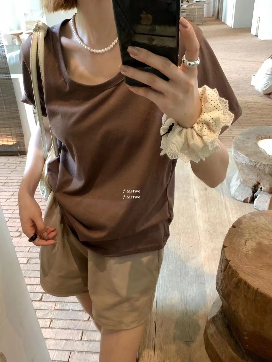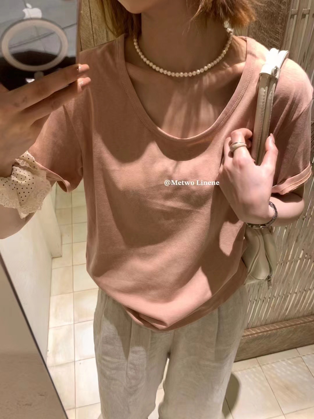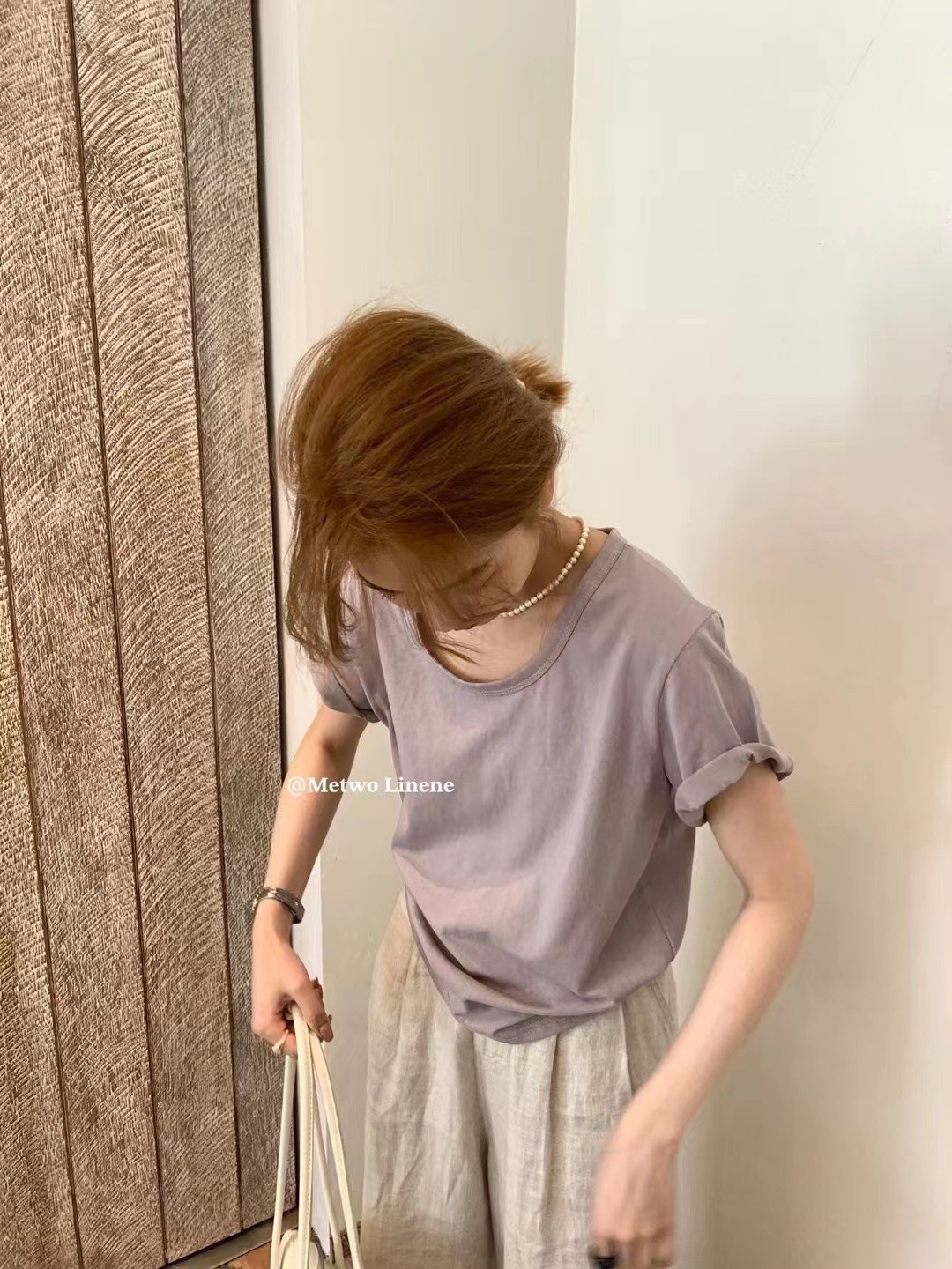 그녀의 달콤한 스푼은 8 색 눈송이 모시 티 라운드 넥 반팔 탑 여성 여름 신작 티셔츠 08243을 추천합니다