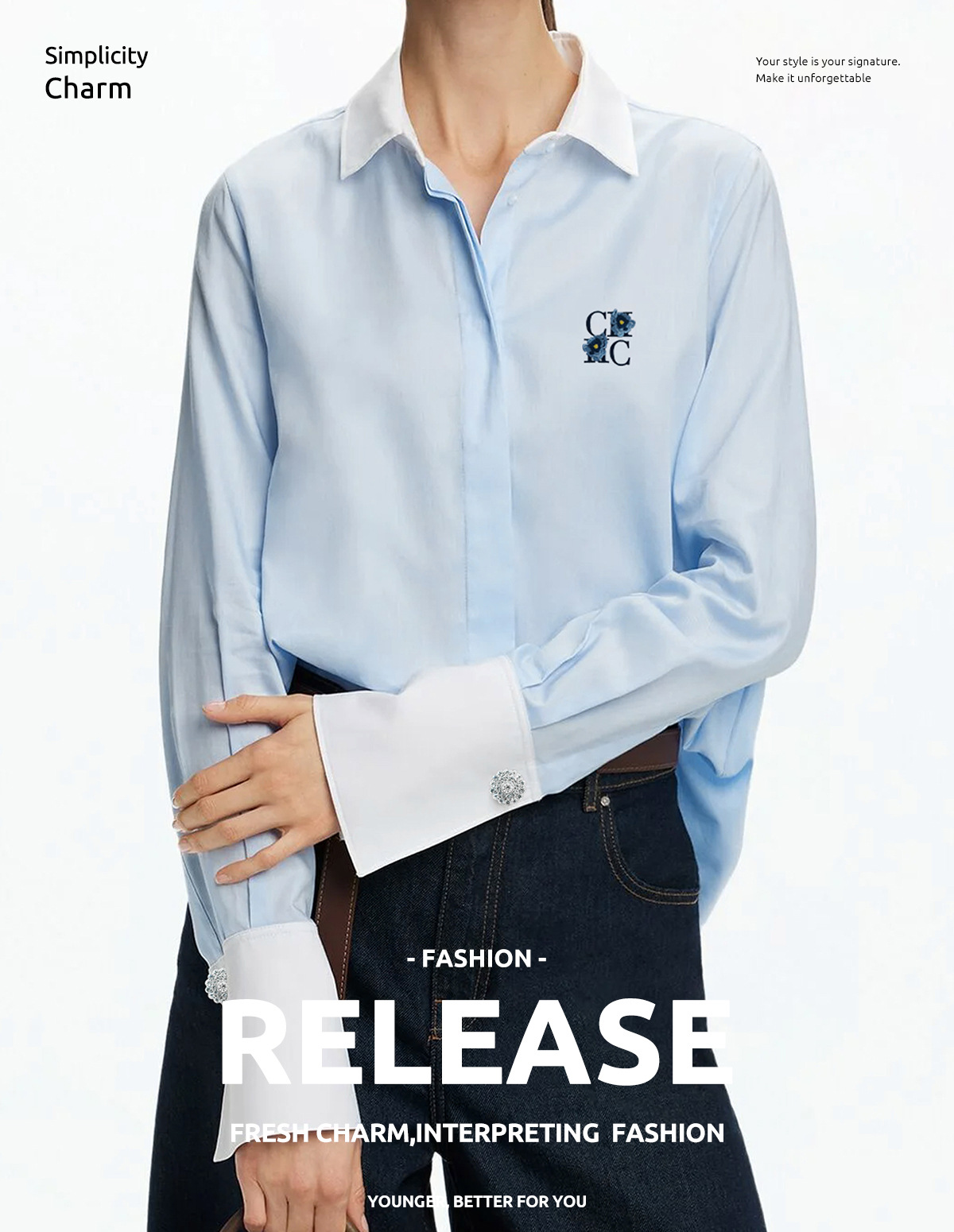 봄과 가을 CHCH2025 새로운 한국 스타일 바느질 셔츠 여성 하이 디자인 센스 클래식 셔츠 패션 올 매치 탑