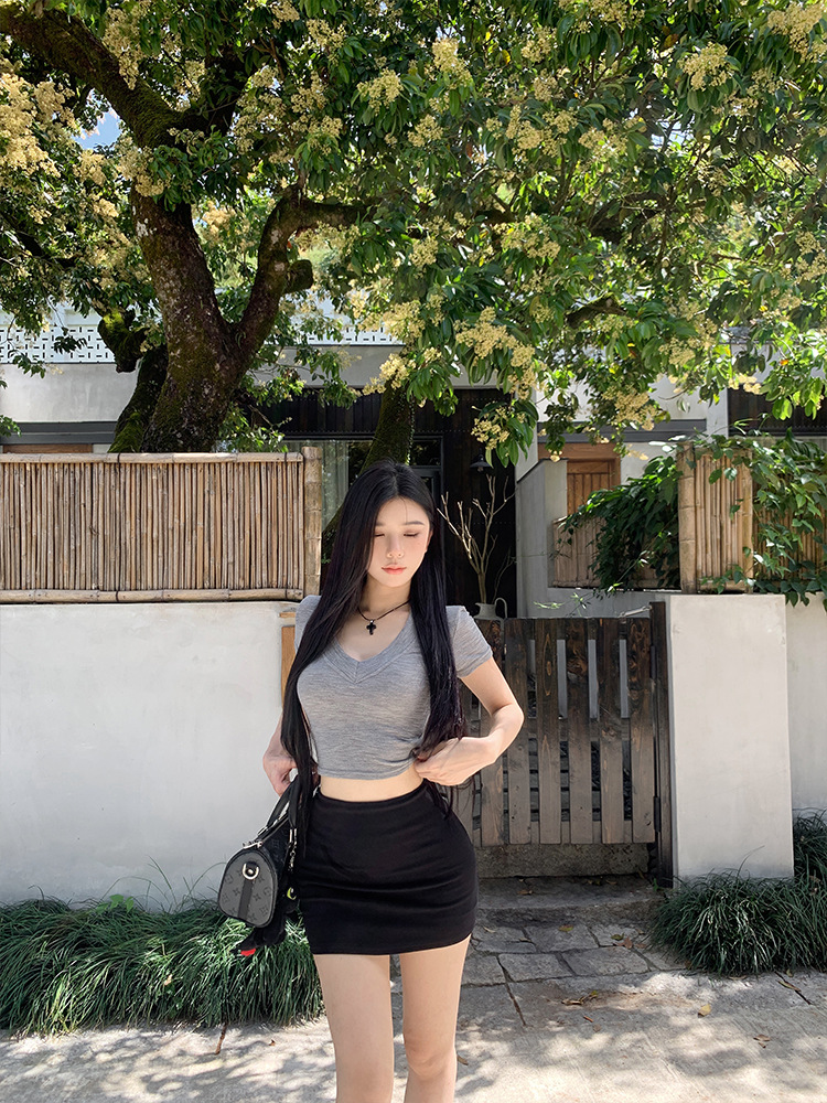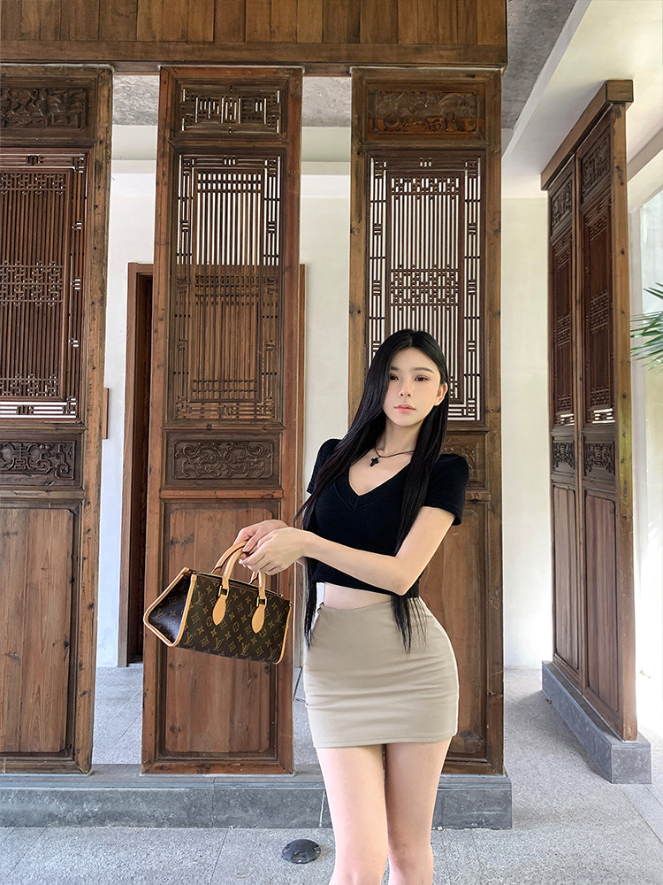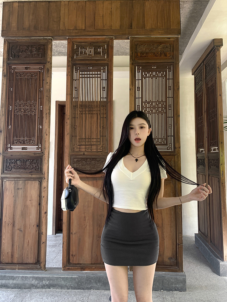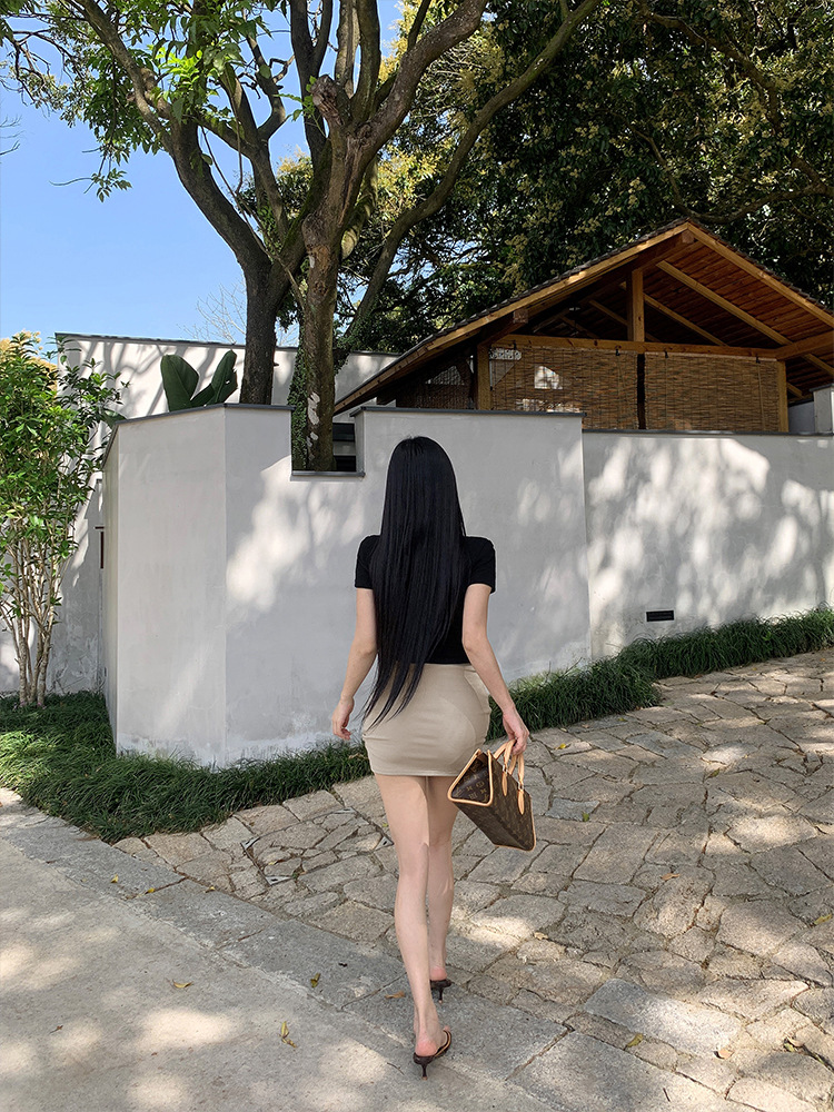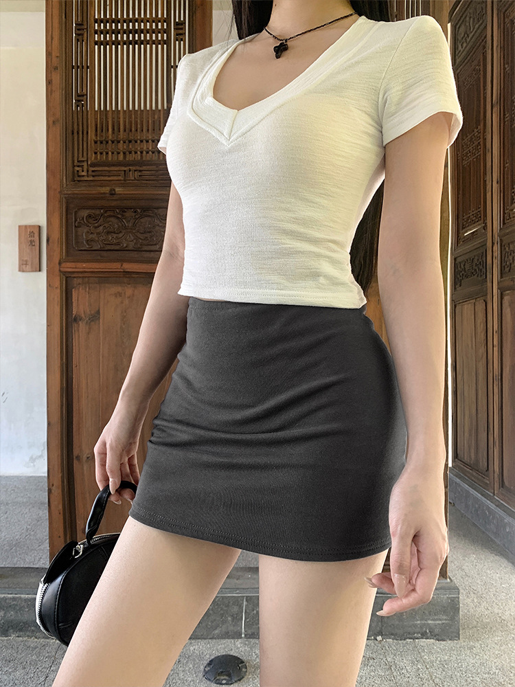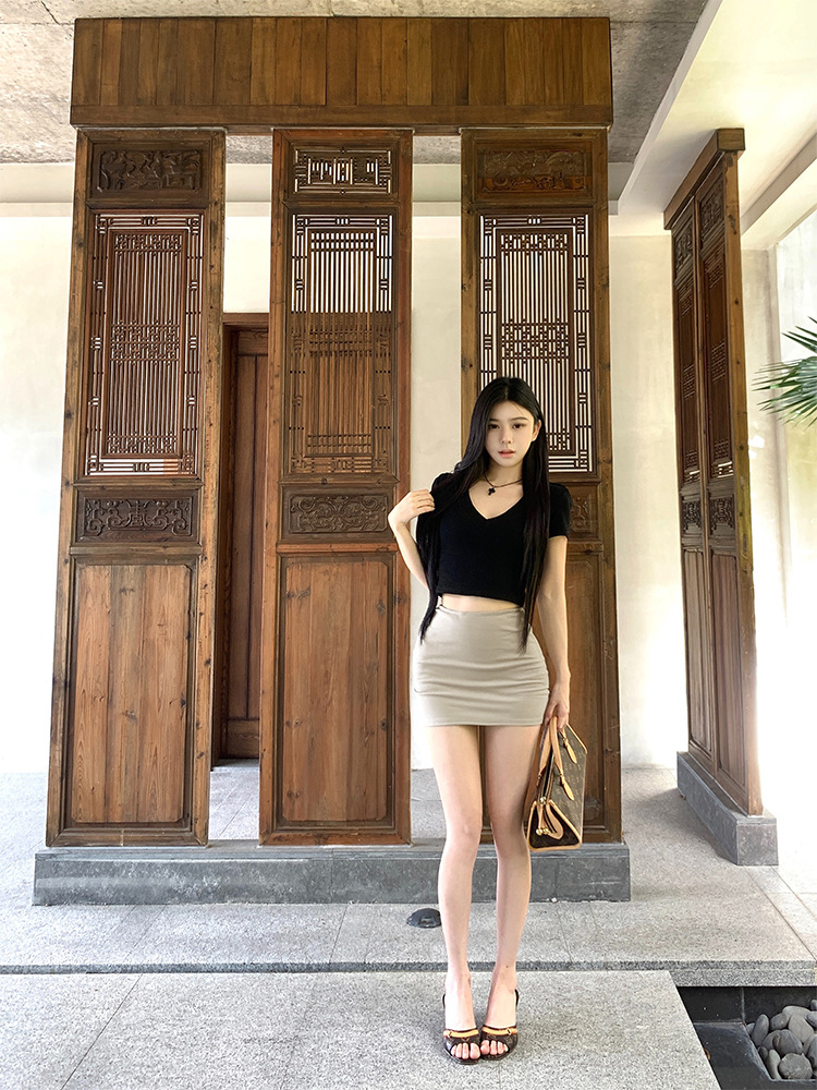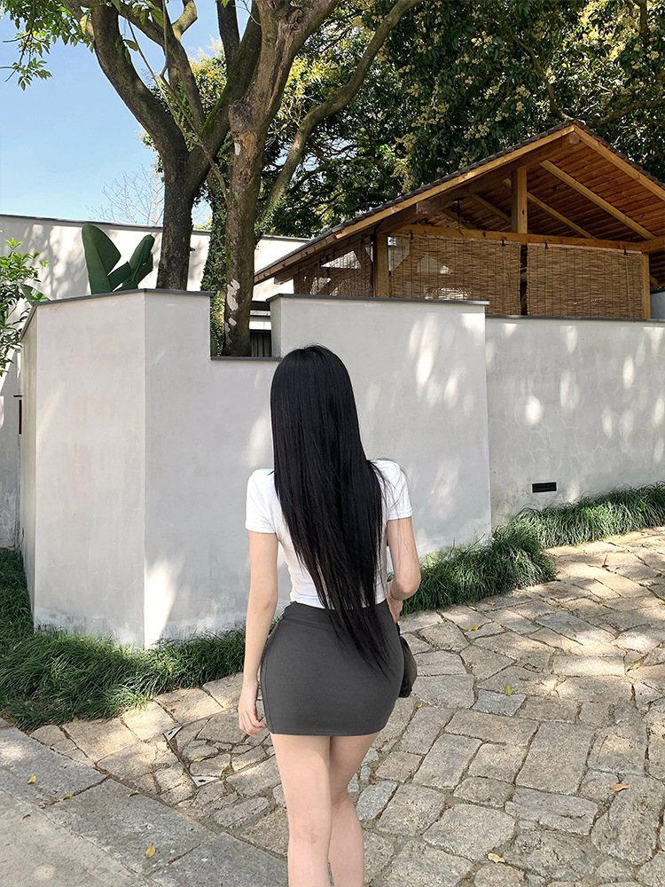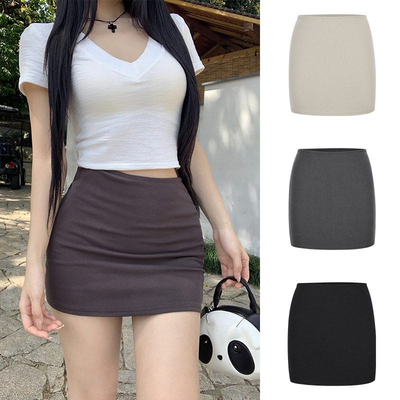 실제 샷 - 낮은 허리의 핫걸이 다리가 길어지고 엉덩이가 덮혀 있으며 신축성이 뛰어나고 활용도가 높으며 여름용 타이트한 미니 스커트와 스커트스토어 가기