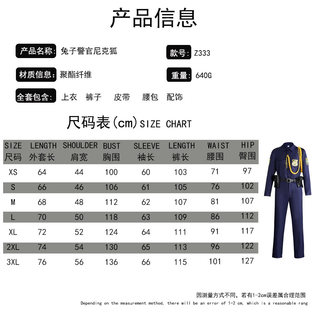 Zootopia 2cos 세트 Zootopia Fox Nick 코스프레 할로윈 공장 재고스토어 가기