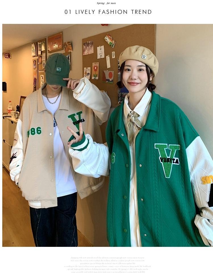 NASA ABOUT 야구 유니폼 남성용 아메리칸 하이 스트리트 스플라이싱 대비 컬러 대형 야구 유니폼 트렌디 오버사이즈 재킷스토어 가기