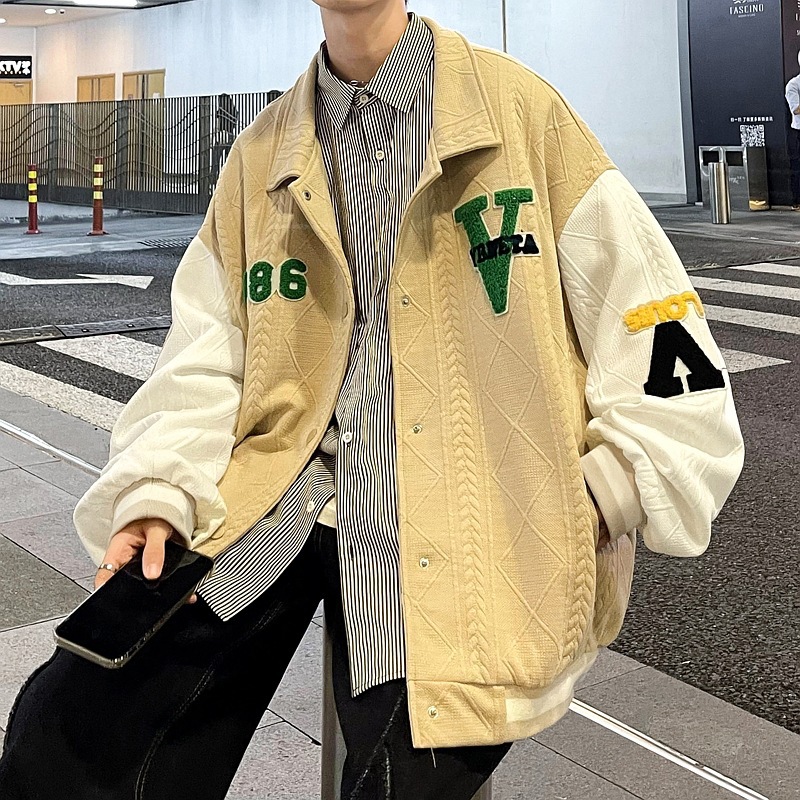 NASA ABOUT 야구 유니폼 남성용 아메리칸 하이 스트리트 스플라이싱 대비 컬러 대형 야구 유니폼 트렌디 오버사이즈 재킷