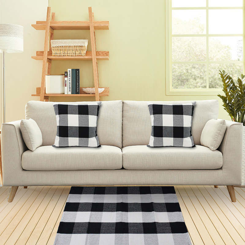 유럽과 미국의 흑백 베개 케이스 카펫 세트 가정 용품 면화 및 리넨 백 쿠션 홈 섬유 홈 장식 바람 문 매트