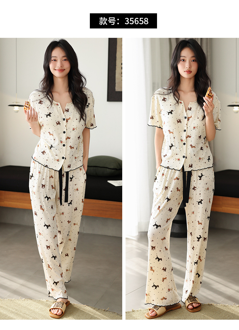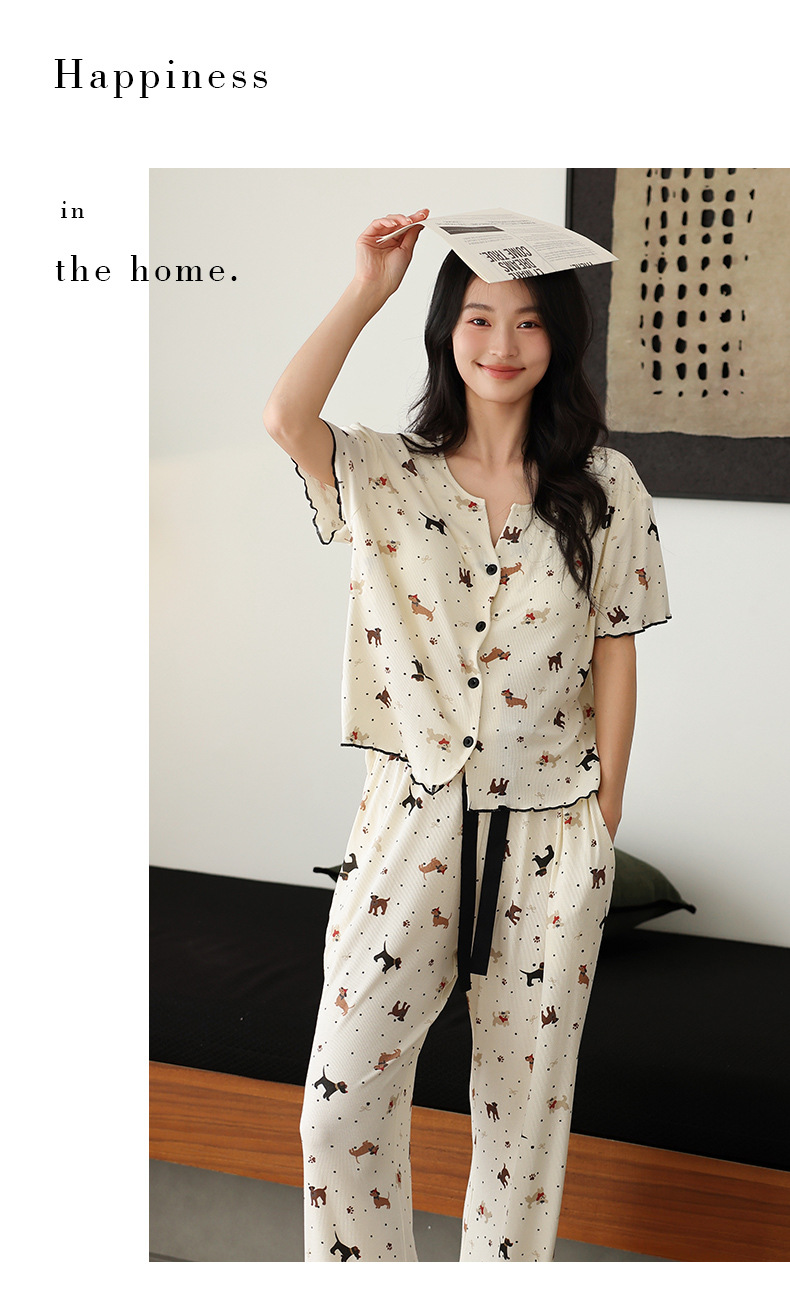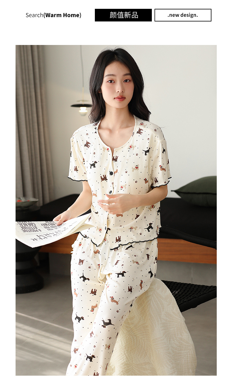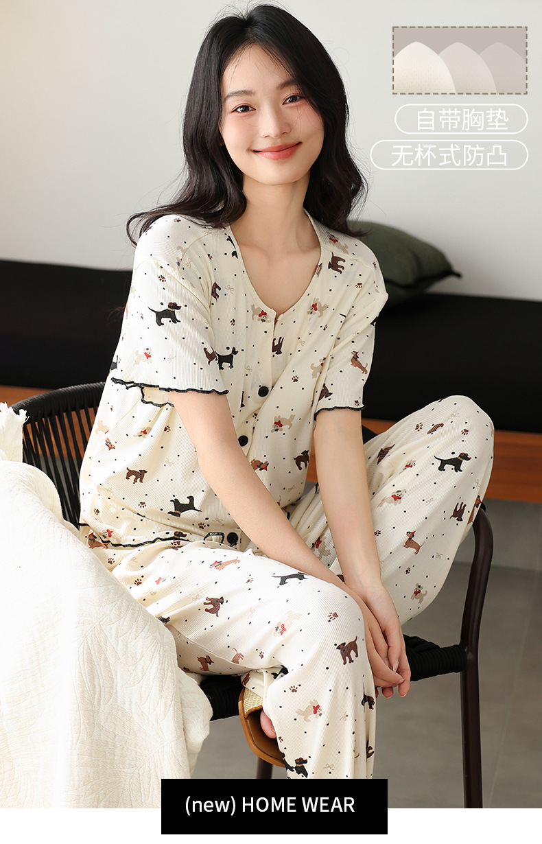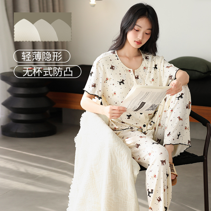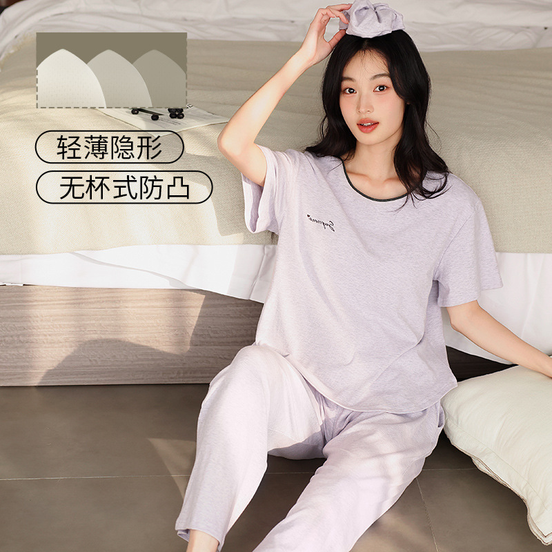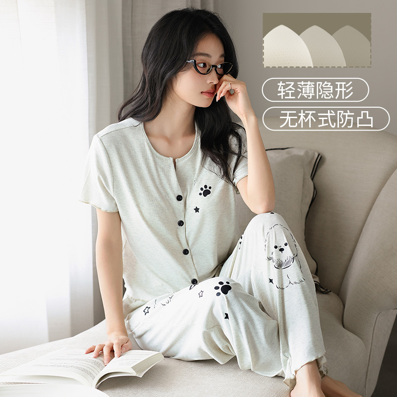 7030 모달 컬러 코튼 스레드 멋진 느낌의 파자마, 가슴 패드 여성용 편안한 반팔 바지 쿨 느낌 외부 옷스토어 가기