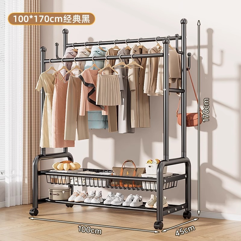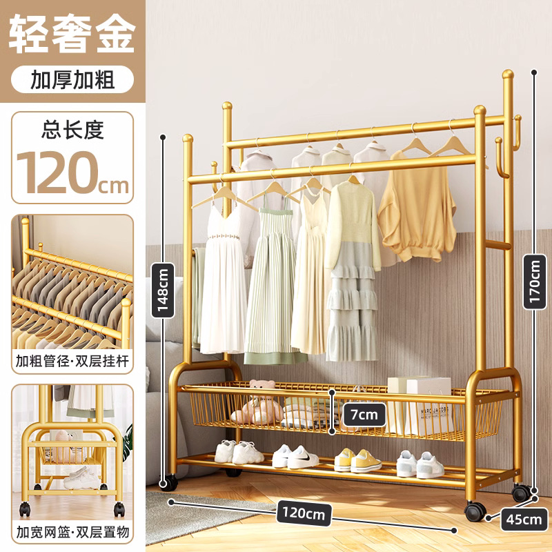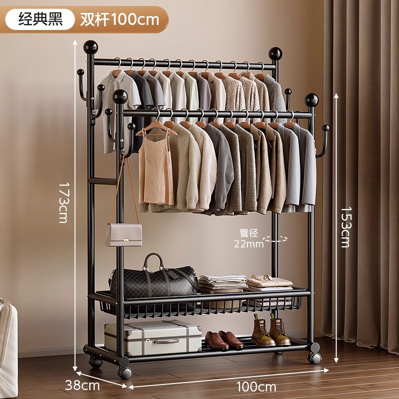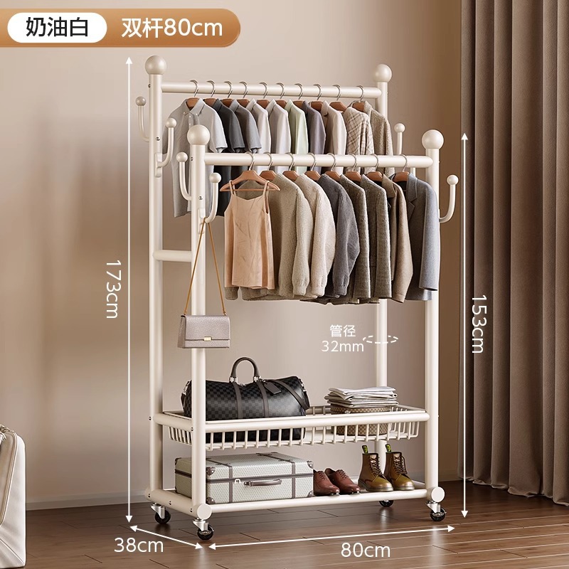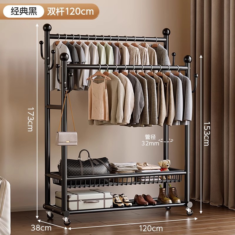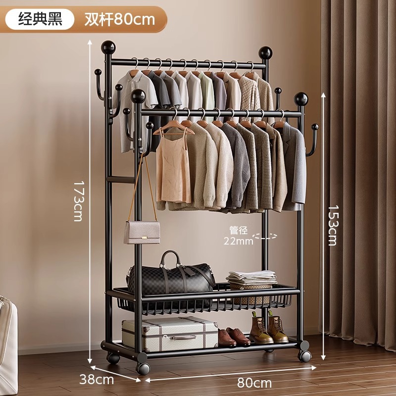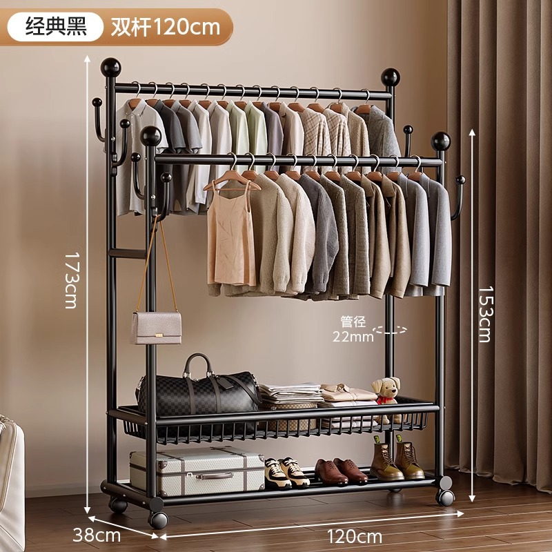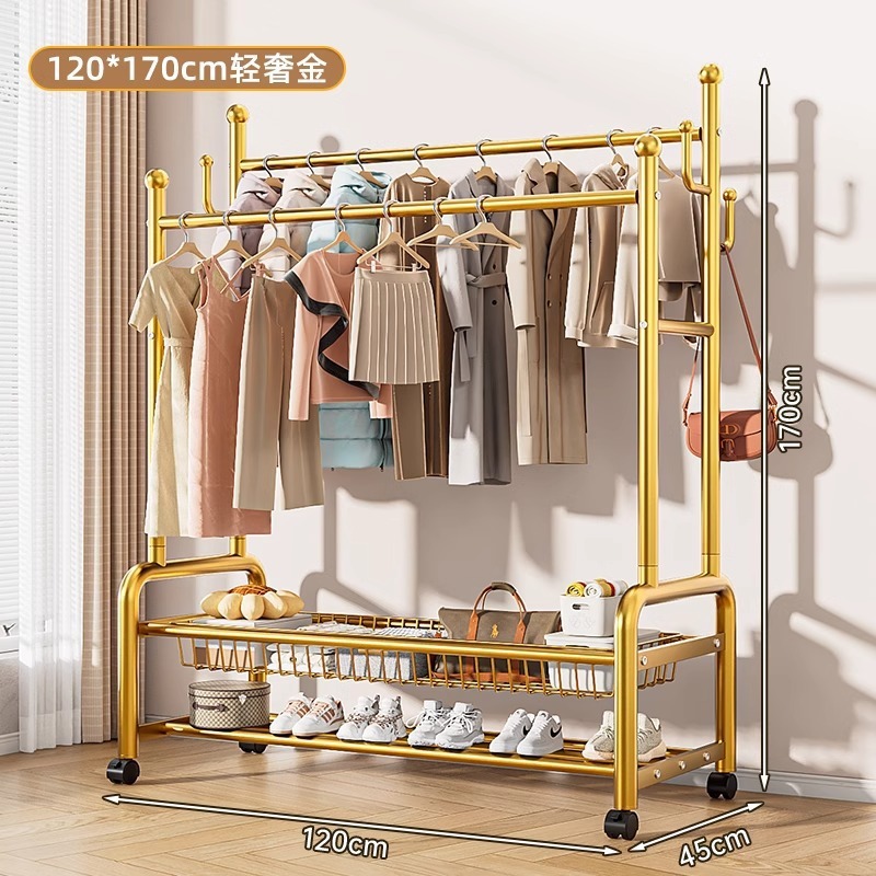 옷 옷걸이 침실 바닥-스탠딩 가정용 룸 실내 더블로드 옷 랙 움직일 수있는 다기능 코트 랙스토어 가기