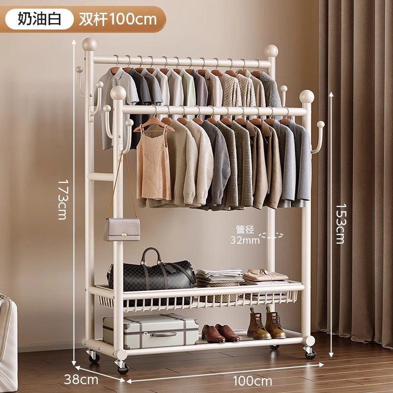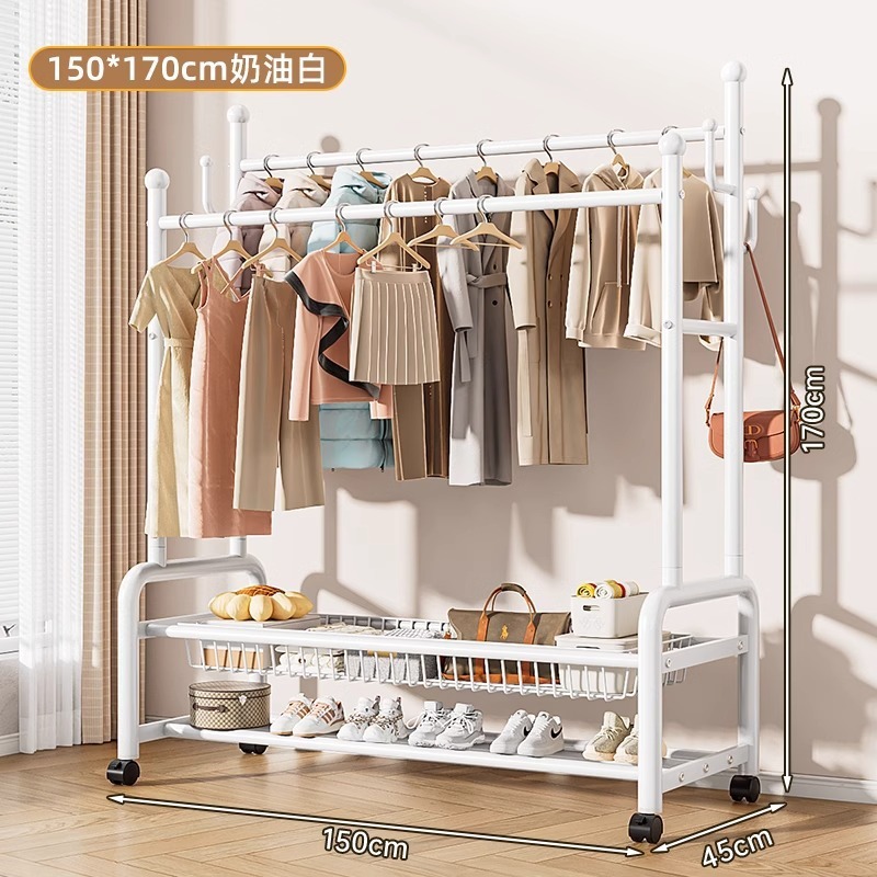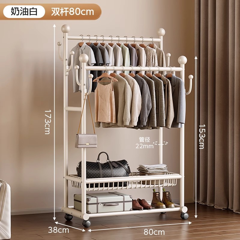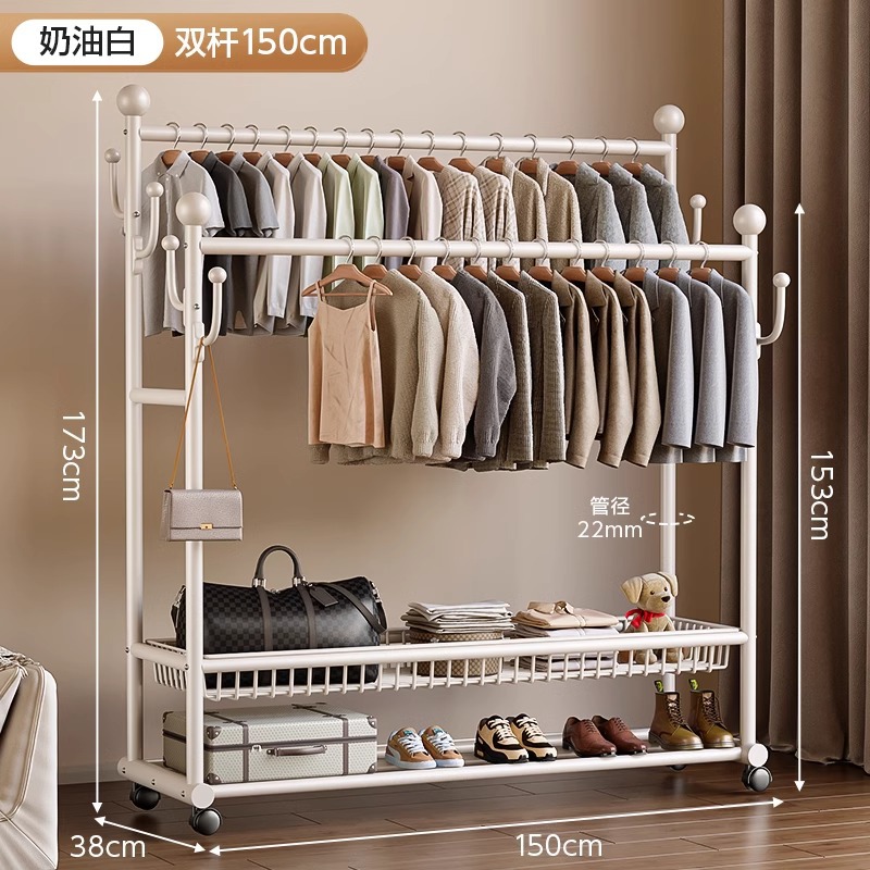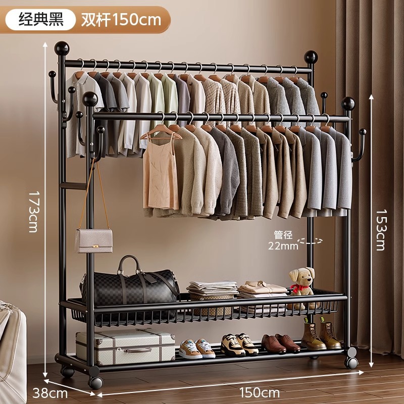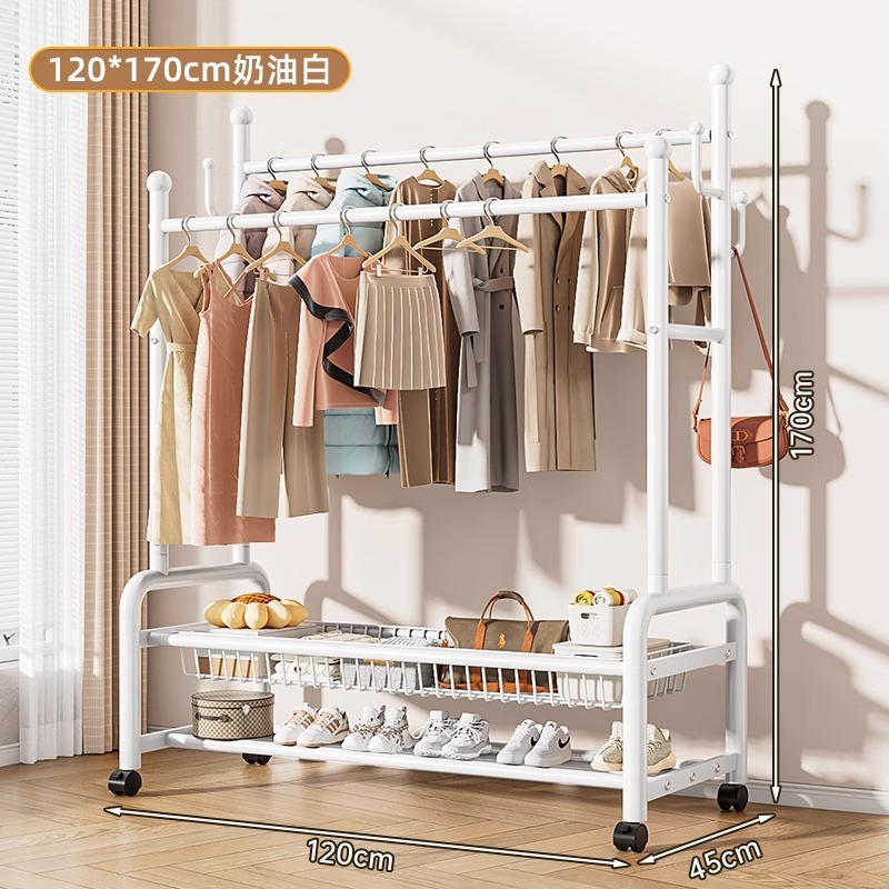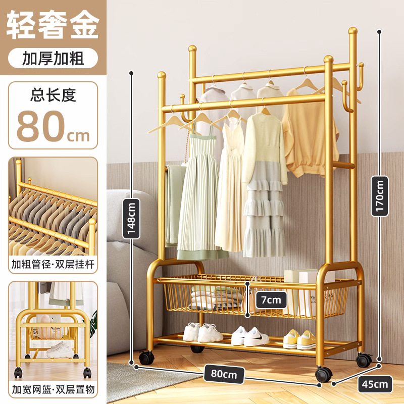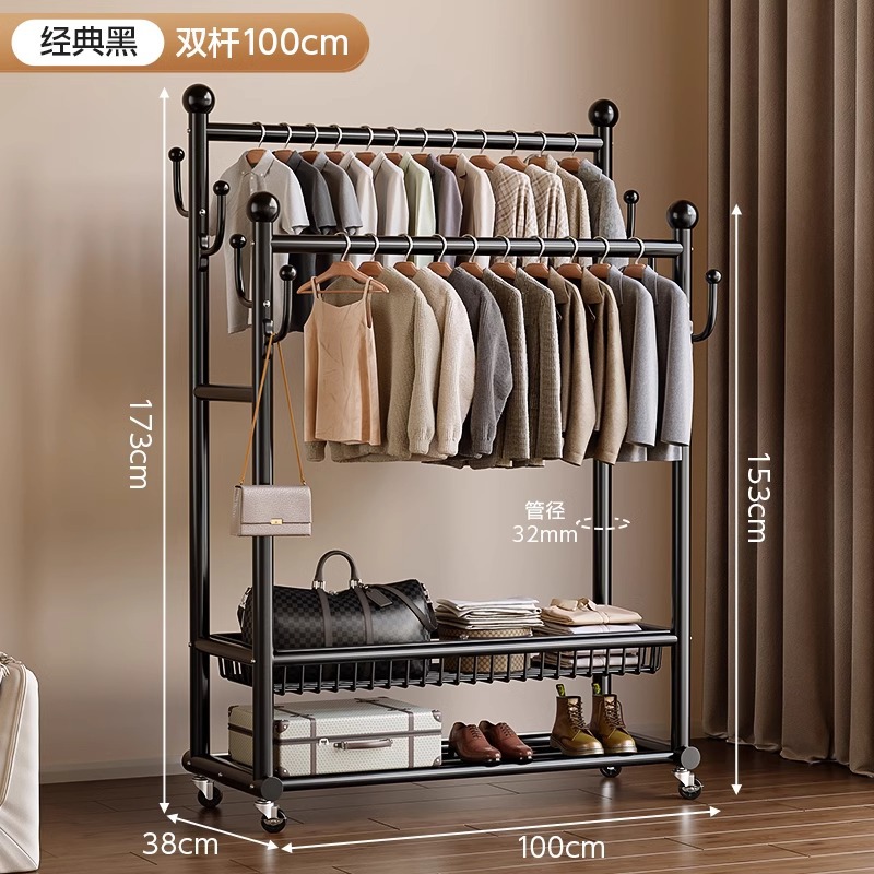 옷 옷걸이 침실 바닥-스탠딩 가정용 룸 실내 더블로드 옷 랙 움직일 수있는 다기능 코트 랙스토어 가기