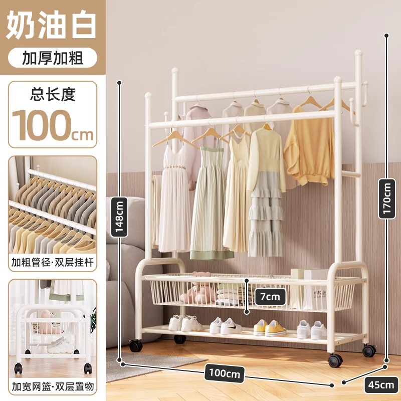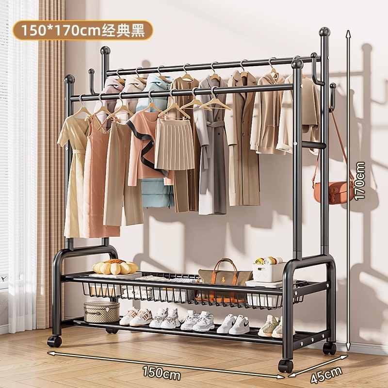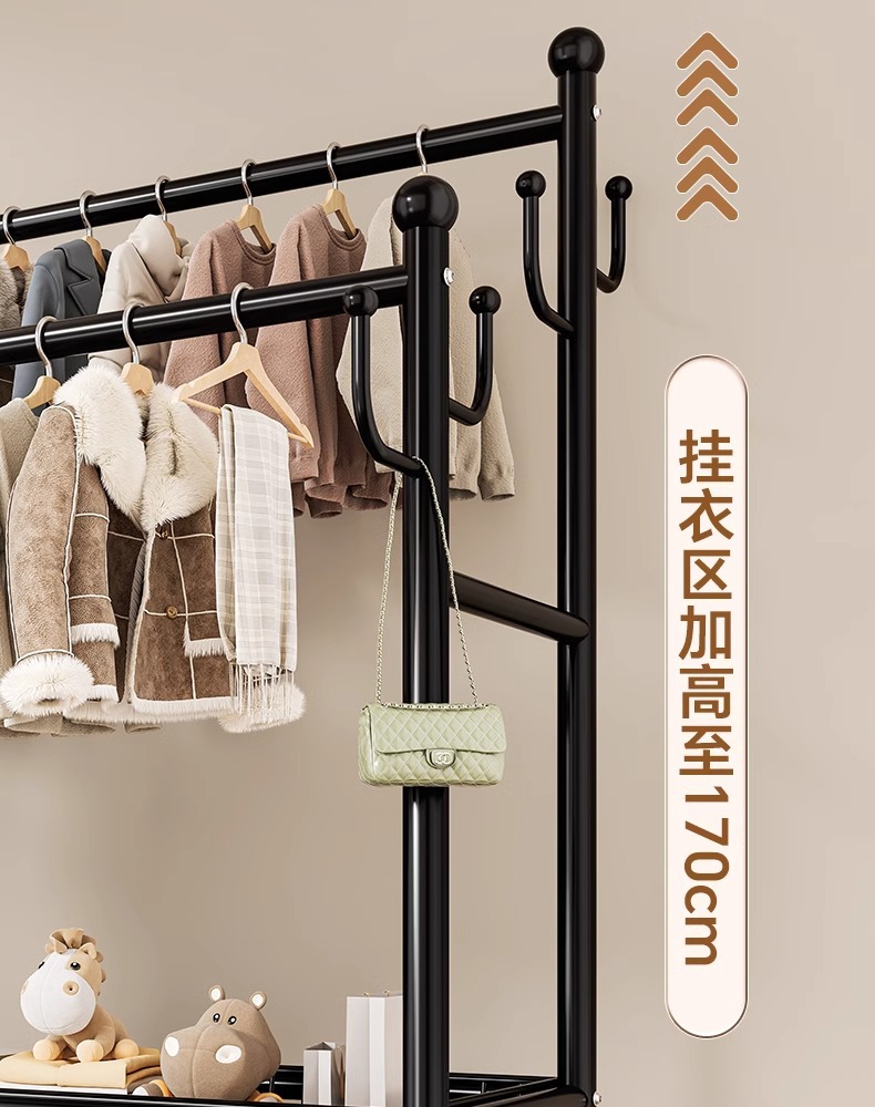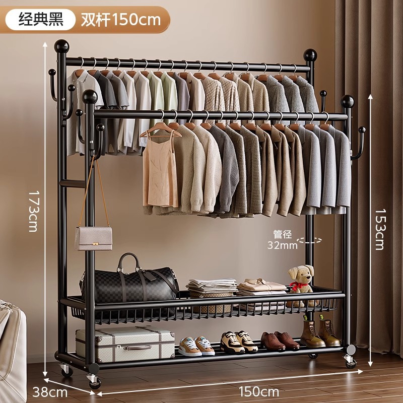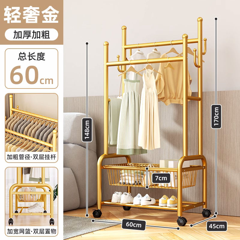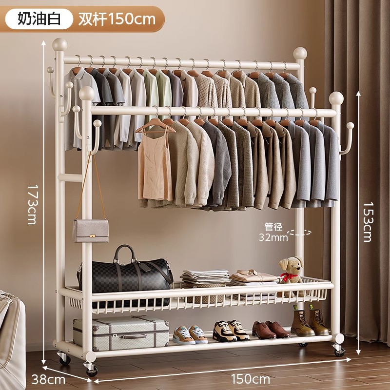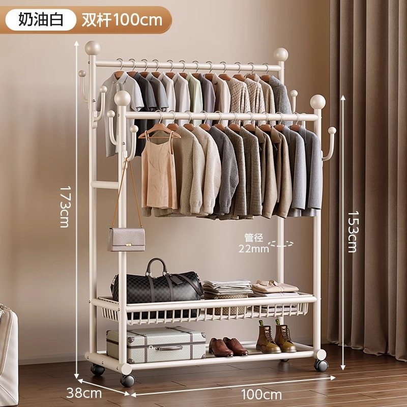 옷 옷걸이 침실 바닥-스탠딩 가정용 룸 실내 더블로드 옷 랙 움직일 수있는 다기능 코트 랙스토어 가기