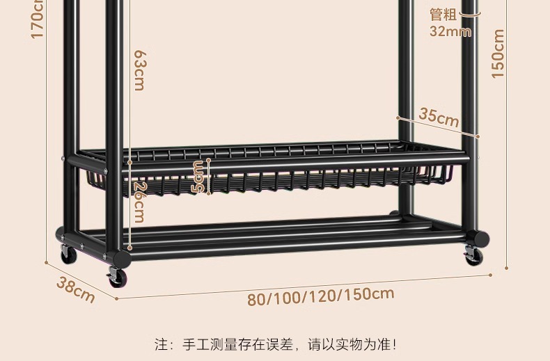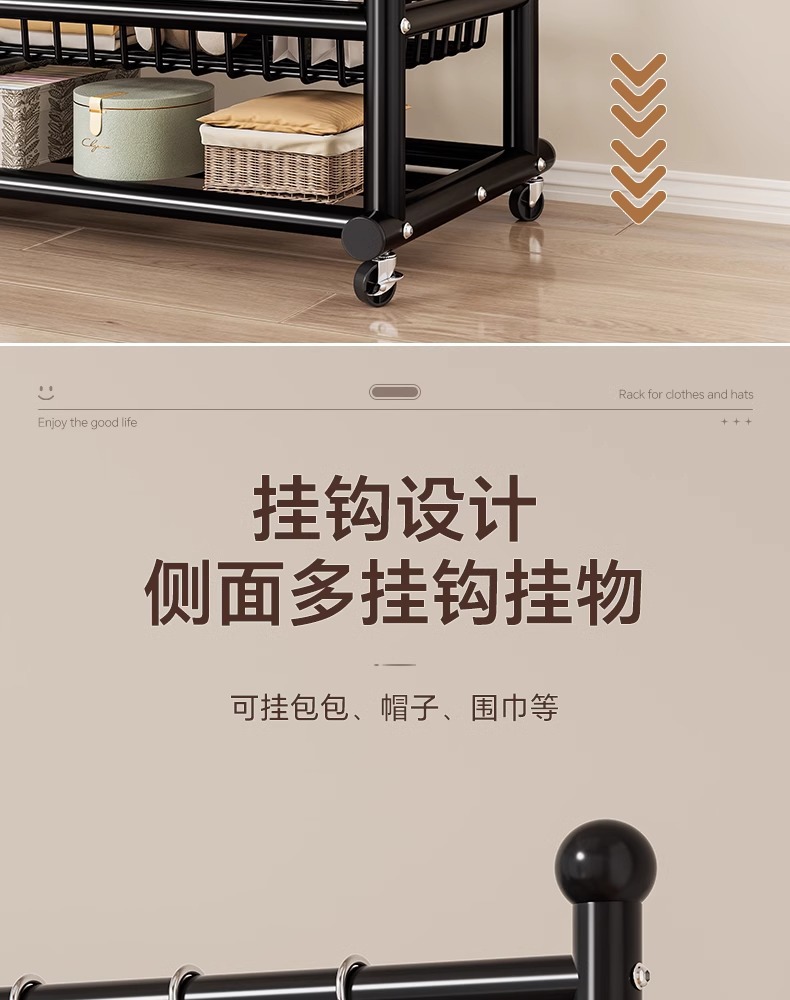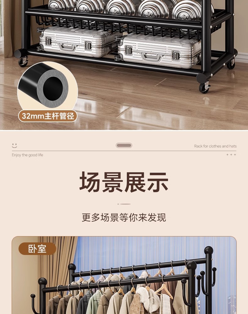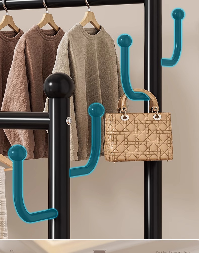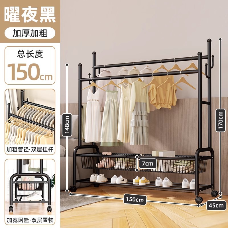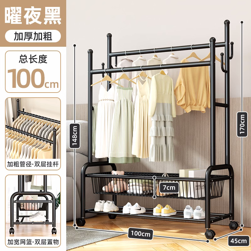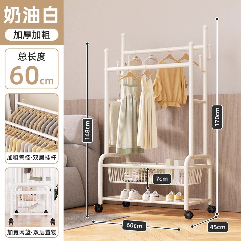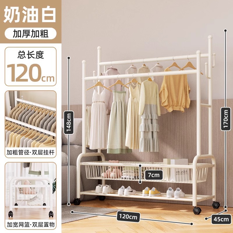 옷 옷걸이 침실 바닥-스탠딩 가정용 룸 실내 더블로드 옷 랙 움직일 수있는 다기능 코트 랙스토어 가기