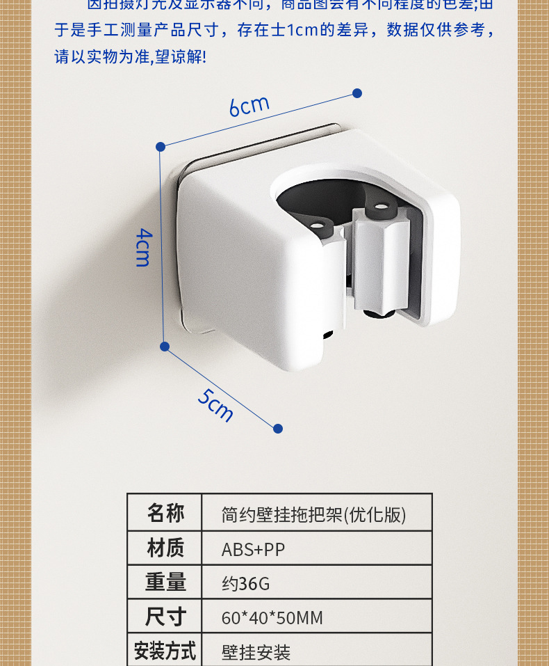升级款拖把架 品质款 白色:材质为全新优质pp,承重3kg以内,胶片尺寸6*6方形贴片