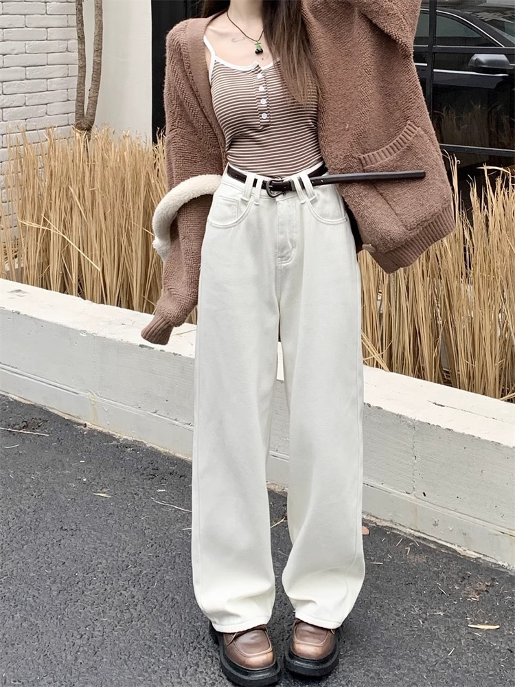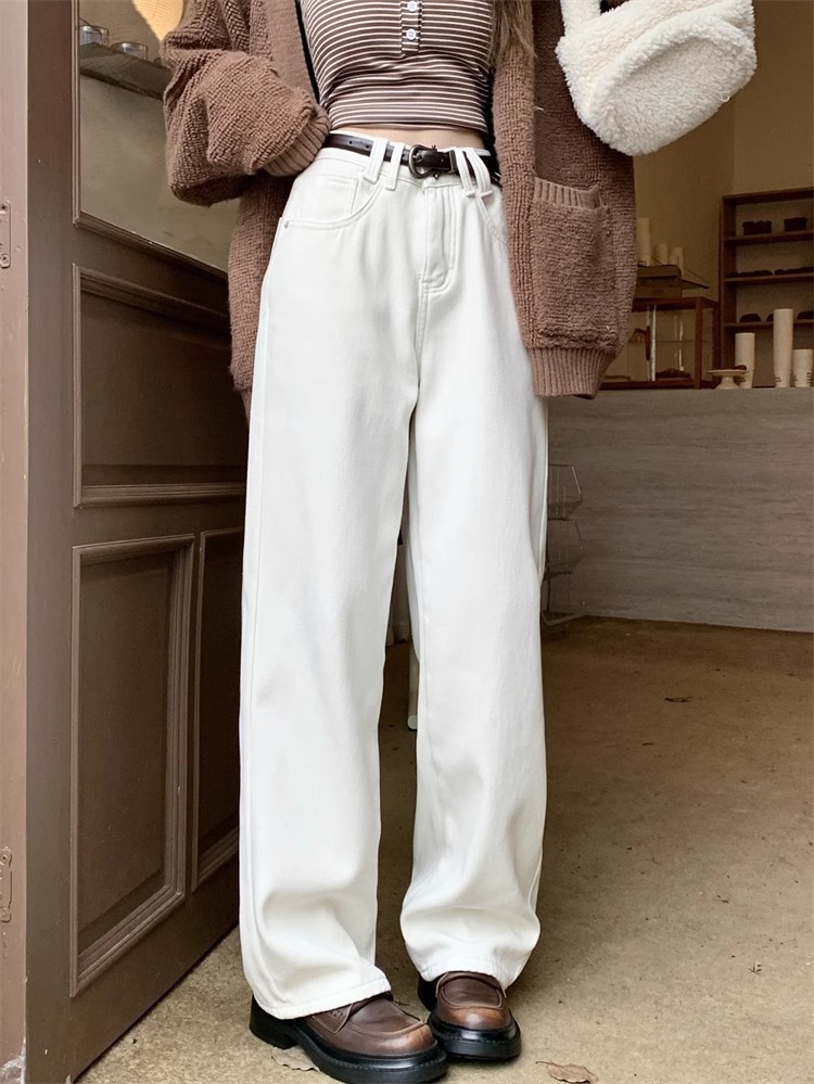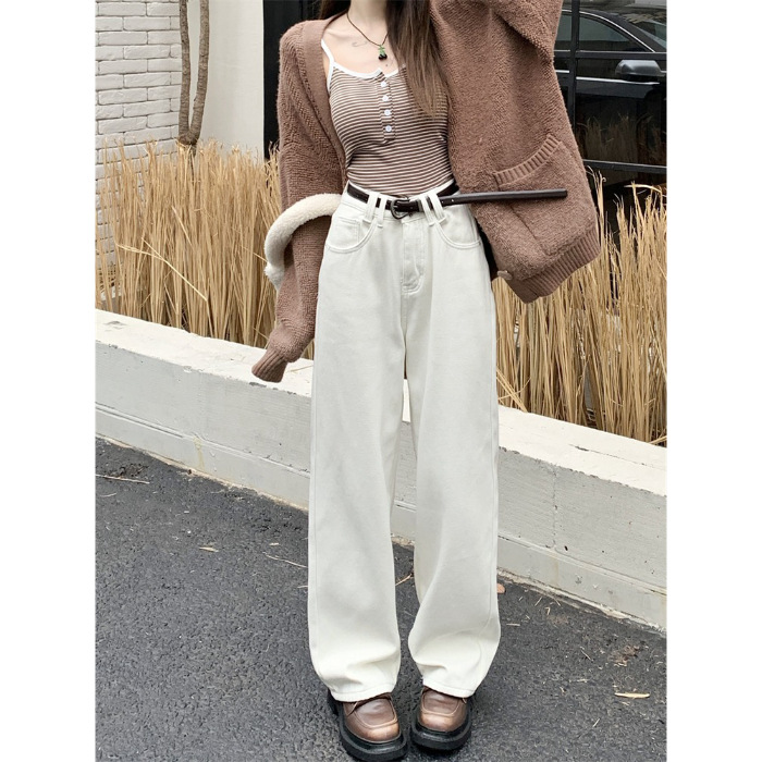 봄 새로운 흰색 직선 청바지 여성 2024 높은 허리 느슨한 슬림 캐주얼 와이드 다리 바지