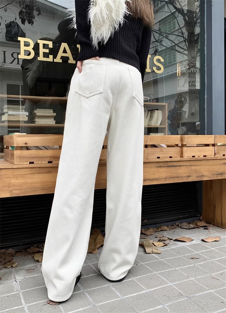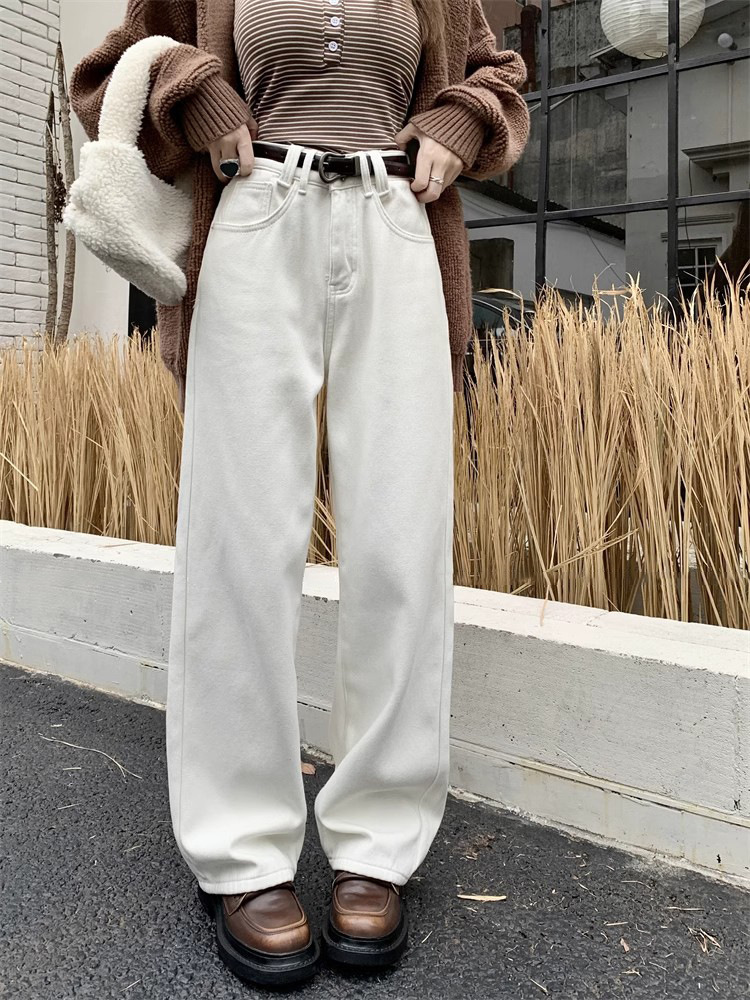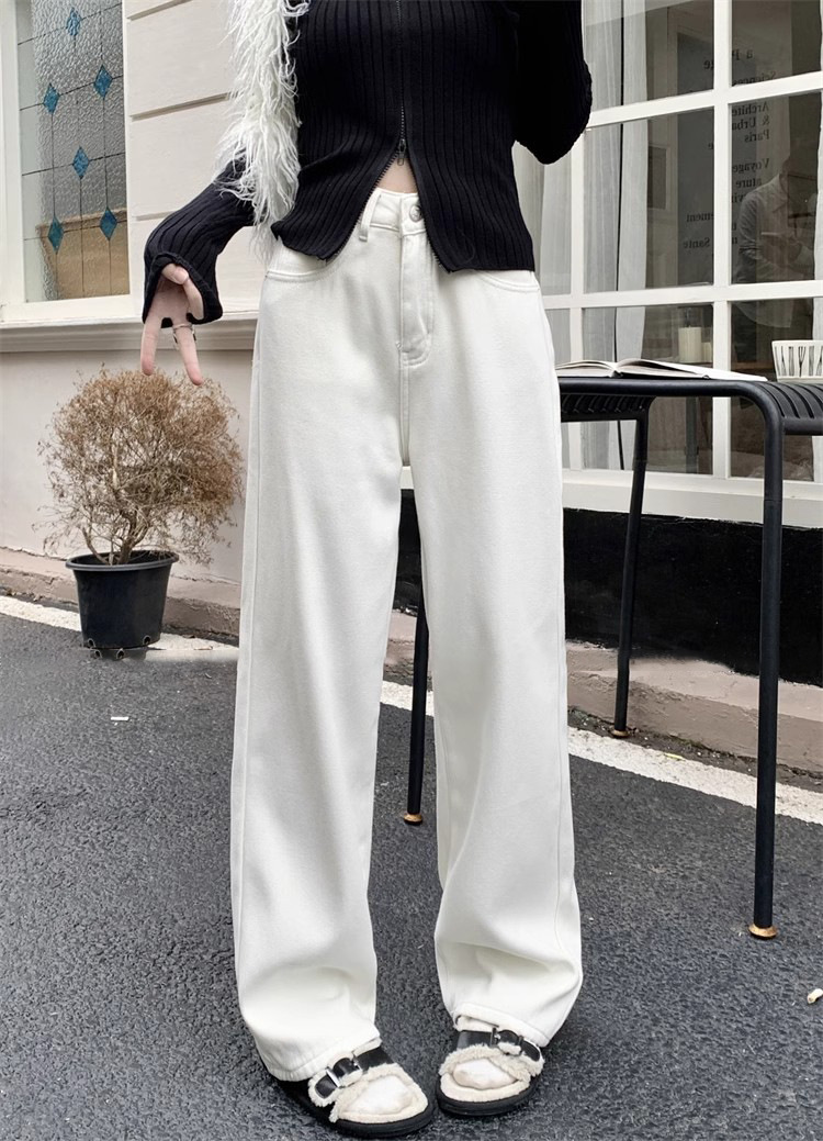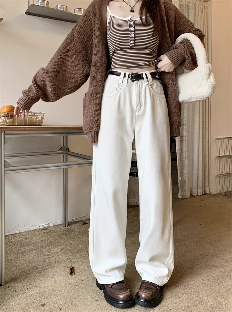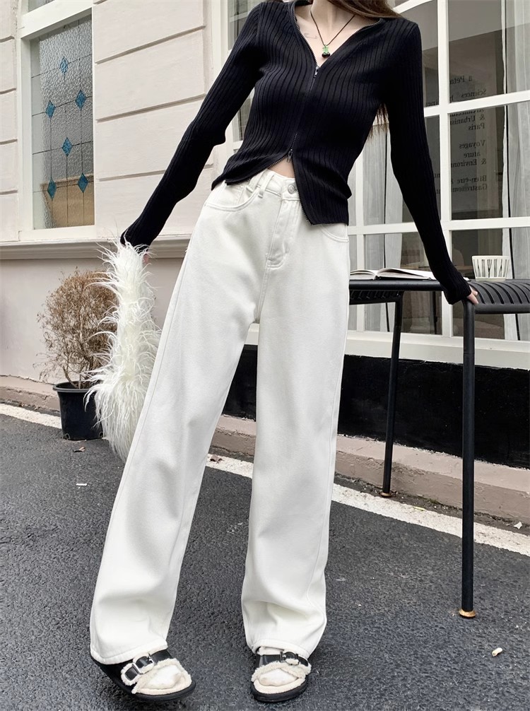 봄 새로운 흰색 직선 청바지 여성 2024 높은 허리 느슨한 슬림 캐주얼 와이드 다리 바지스토어 가기