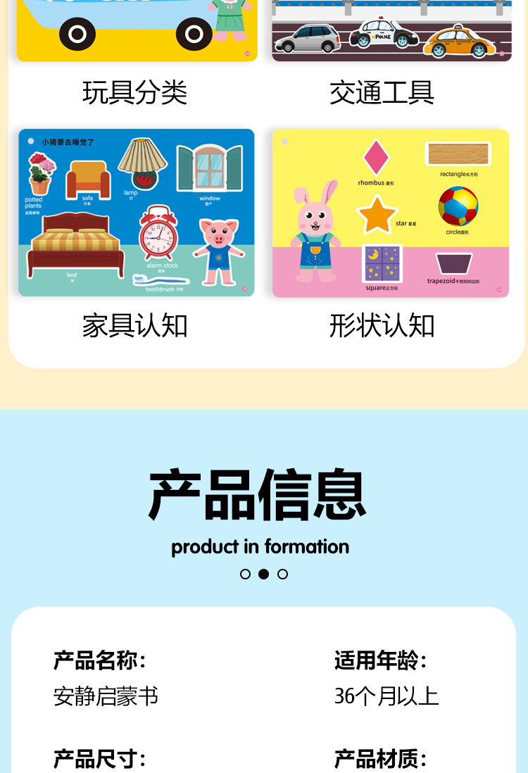어린이 계몽주의 조용한 책 유아 교육 벨크로인지 책 아기의 지능 개발 손으로 찢을 수있는 페이스트 북스토어 가기