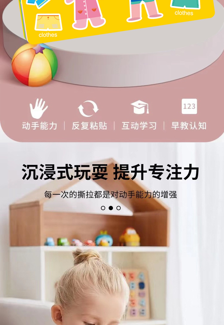 어린이 계몽주의 조용한 책 유아 교육 벨크로인지 책 아기의 지능 개발 손으로 찢을 수있는 페이스트 북