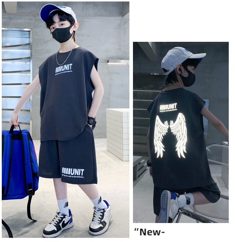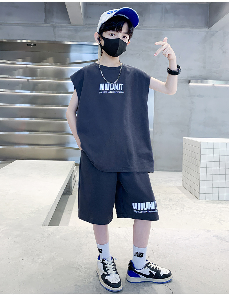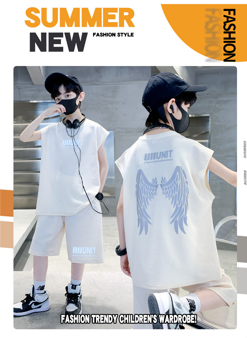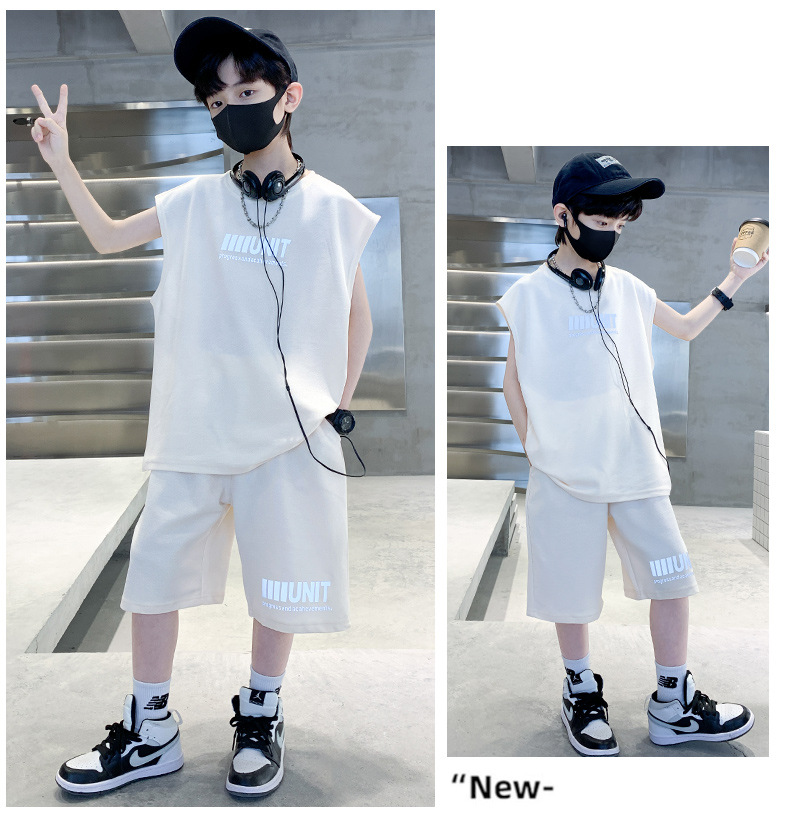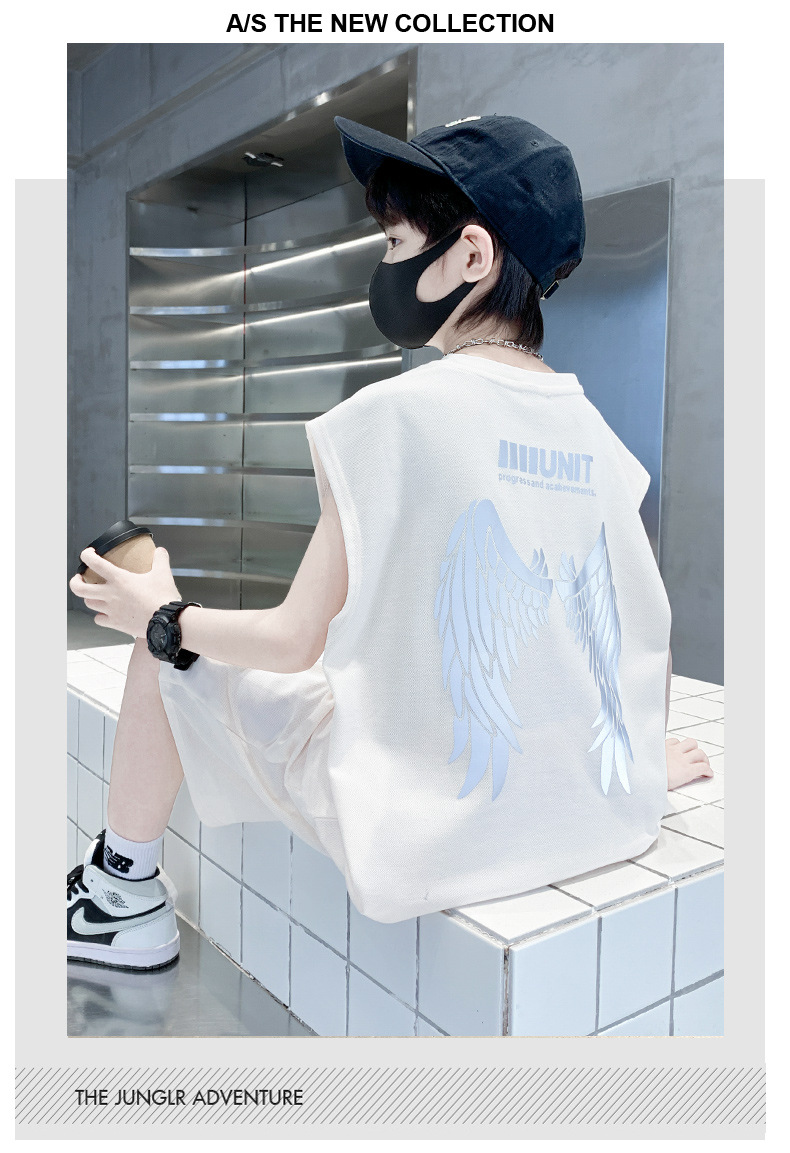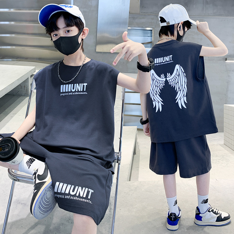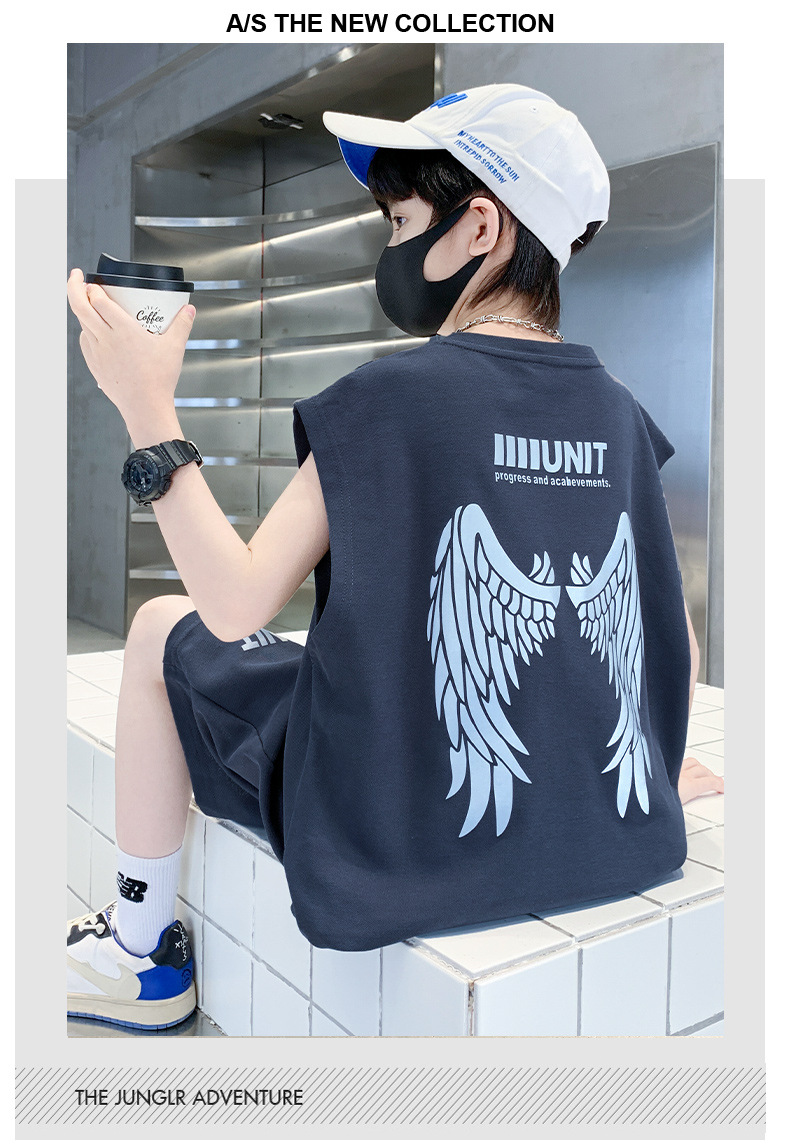 소년 여름 정장 2024 새로운 어린이 민소매 조끼 스포츠 잘 생긴 거리 옷 멋진 여름 아동복스토어 가기