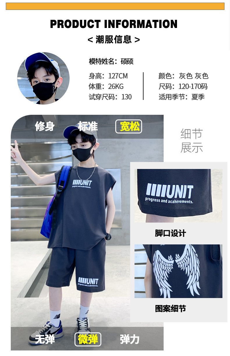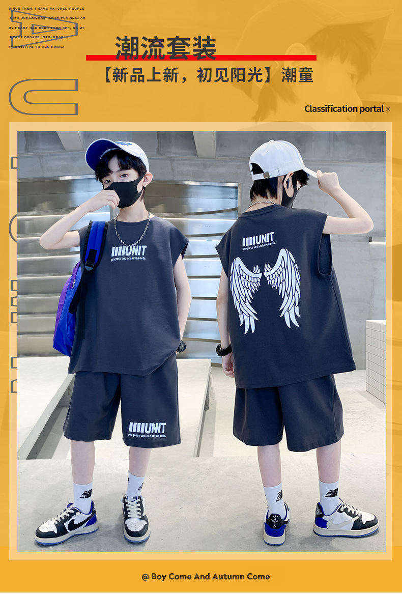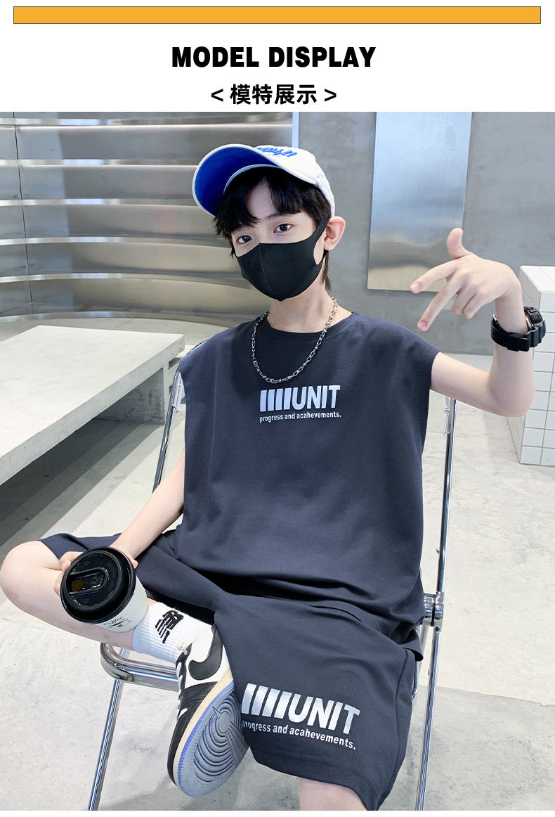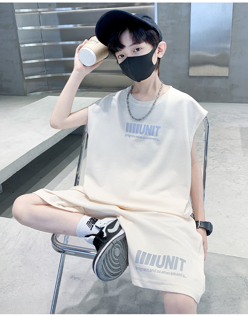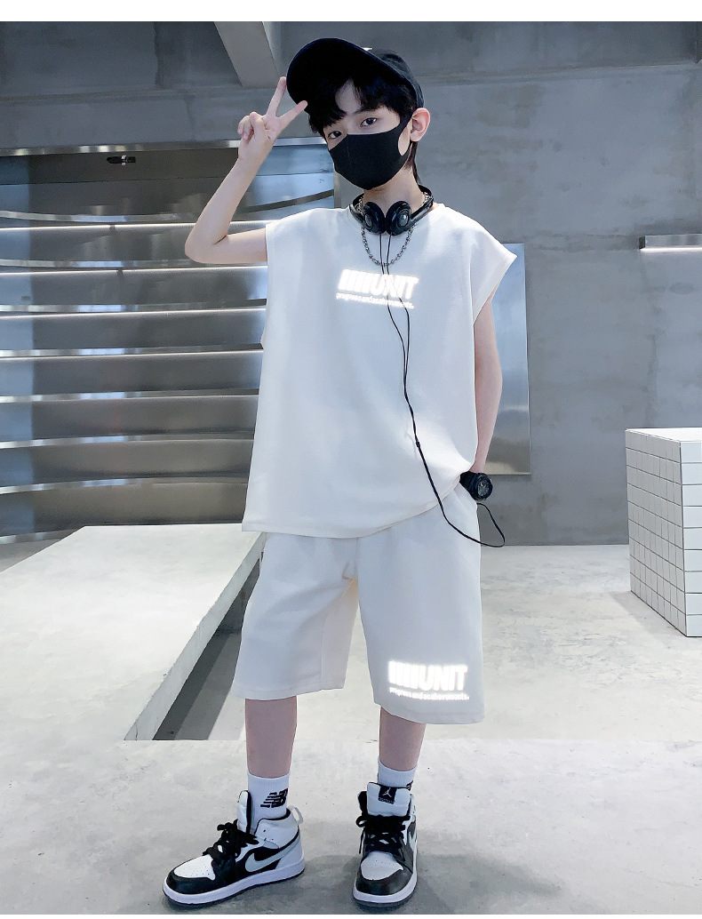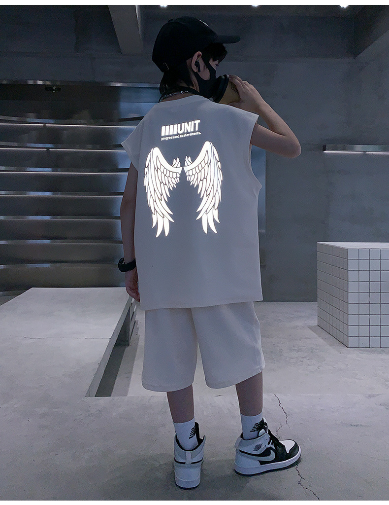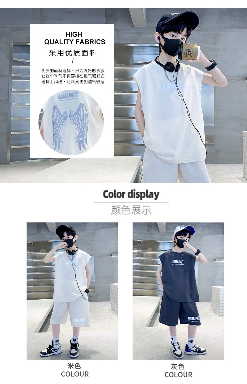 소년 여름 정장 2024 새로운 어린이 민소매 조끼 스포츠 잘 생긴 거리 옷 멋진 여름 아동복스토어 가기
