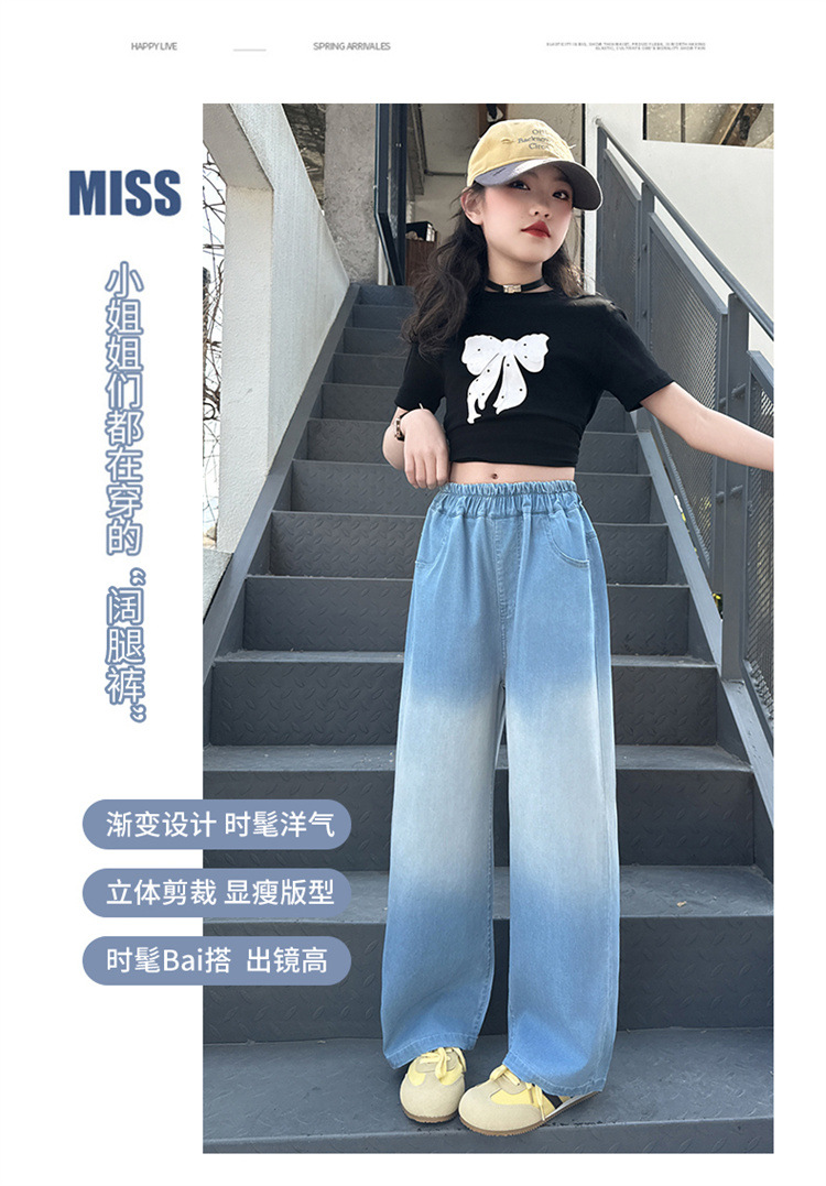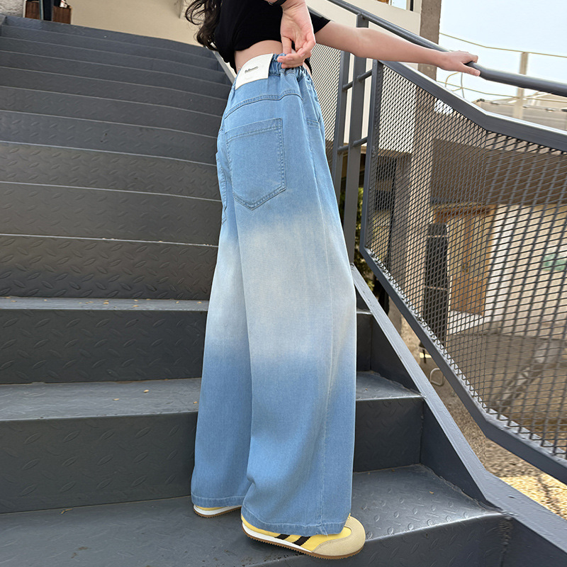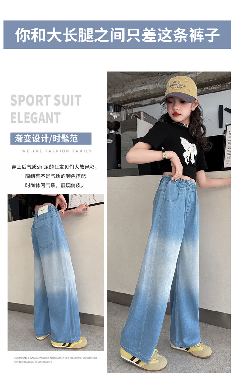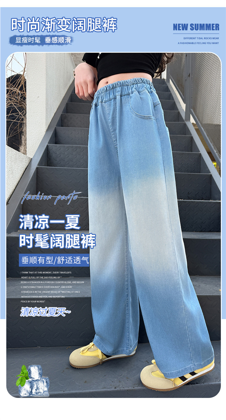 여자 빅 키즈 그라디언트 아이스 실크 청바지 중학교 2025 새로운 여름 초박형 소녀 느슨한 텐셀 바지스토어 가기