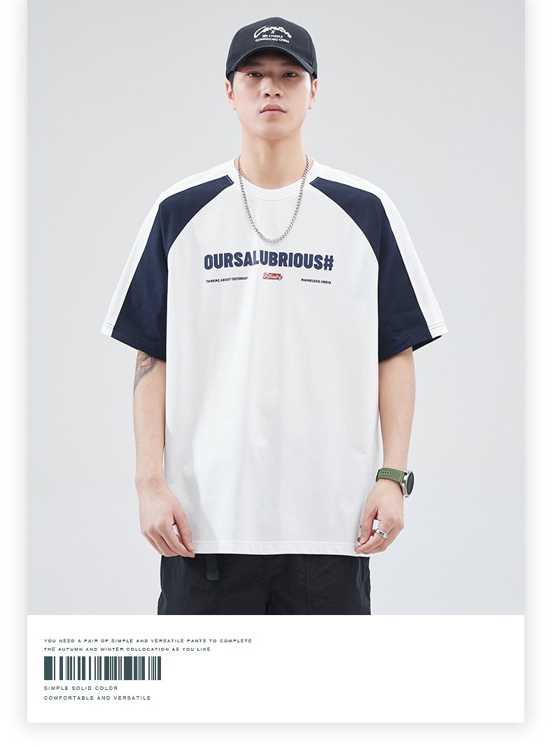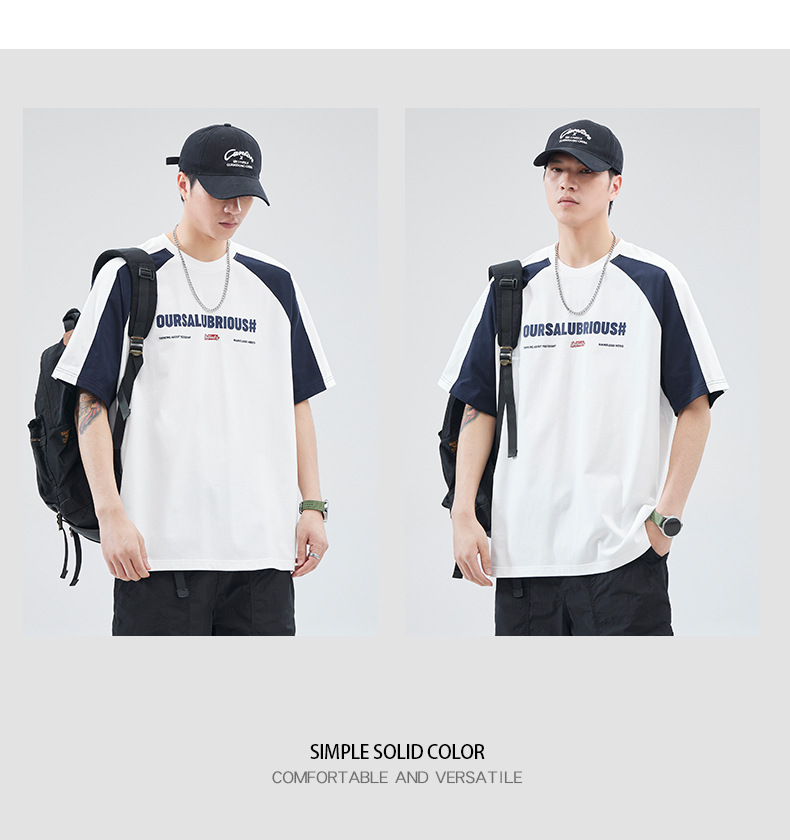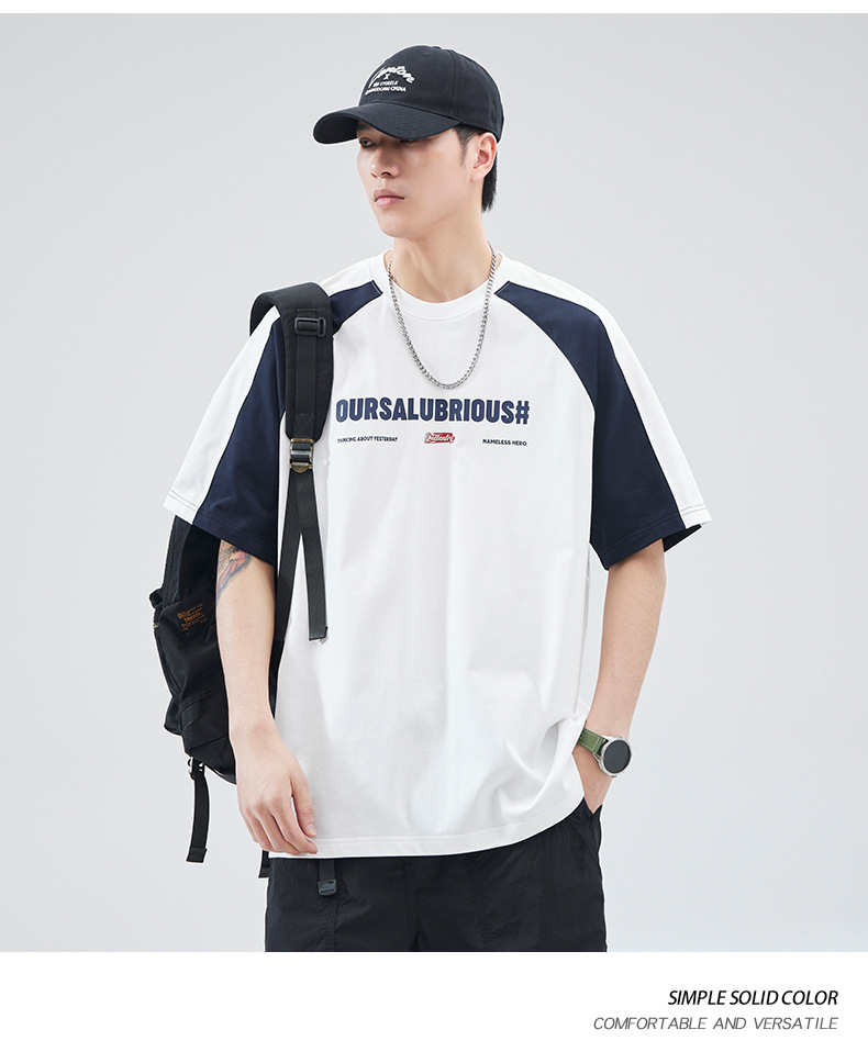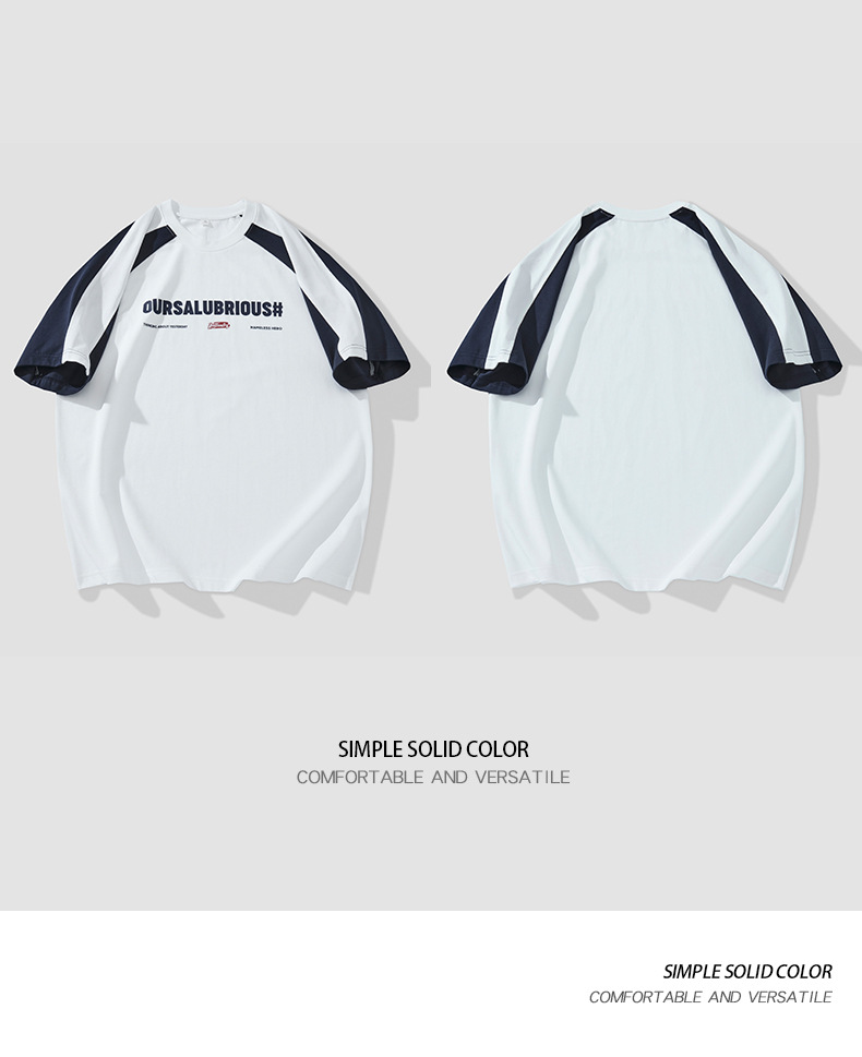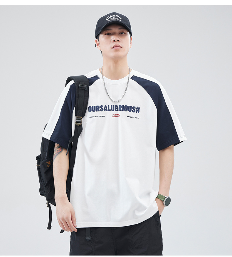 아메리칸 스플라이스 코튼 반팔 티셔츠 남성 여름 250g 헤비급 신작 루즈 대형 남성 캠퍼스 스타일 탑