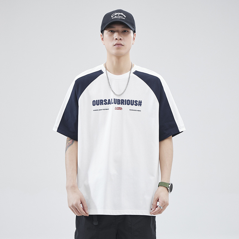 아메리칸 스플라이스 코튼 반팔 티셔츠 남성 여름 250g 헤비급 신작 루즈 대형 남성 캠퍼스 스타일 탑스토어 가기
