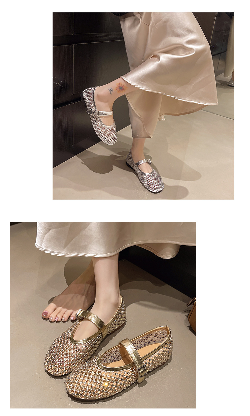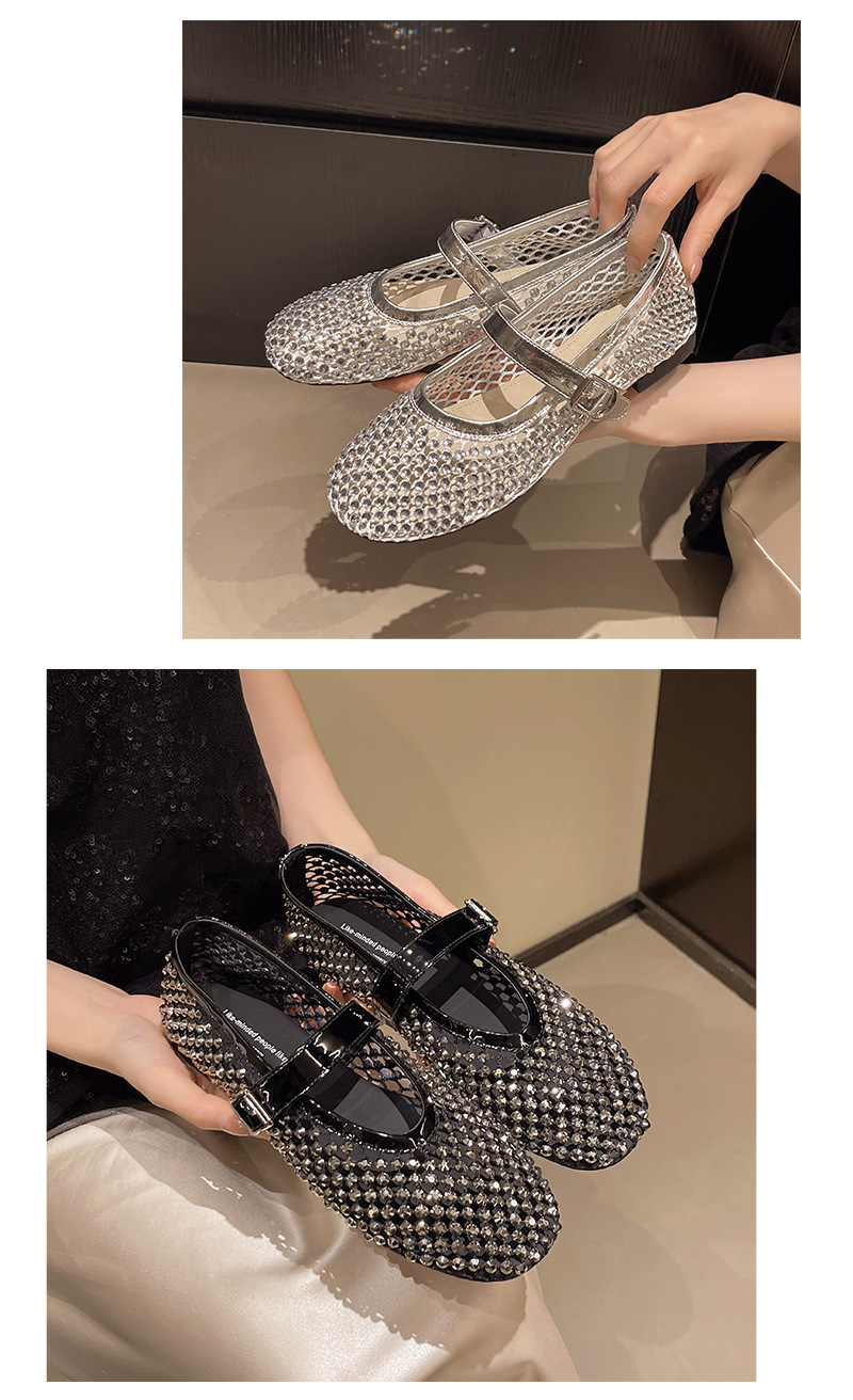 패션 메쉬 버클 발레 신발 메리 제인 신발 플랫 플래시 다이아몬드 새로운 2025 통기성 싱글 레이어 신발 여성 신발스토어 가기
