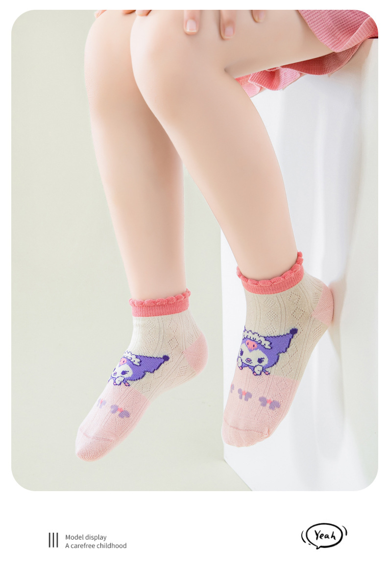 소녀 양말 여름 얇은 면 양말 메쉬 어린이 양말 Kulomi 통기성 보라색 귀여운 만화 아기 양말