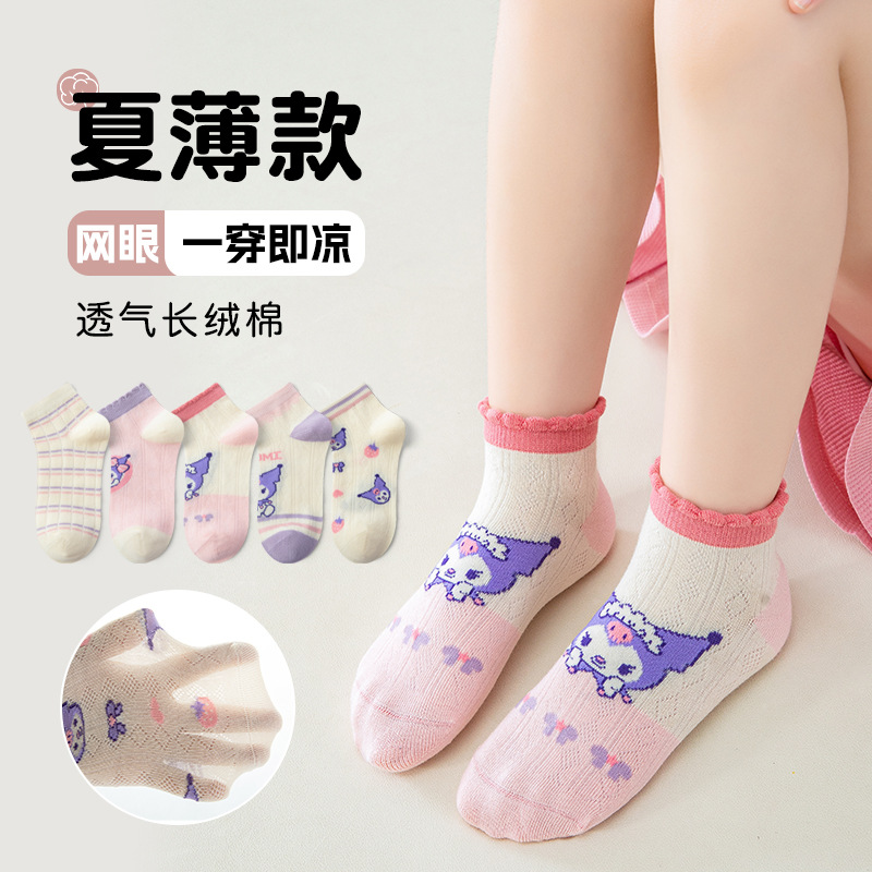 소녀 양말 여름 얇은 면 양말 메쉬 어린이 양말 Kulomi 통기성 보라색 귀여운 만화 아기 양말스토어 가기