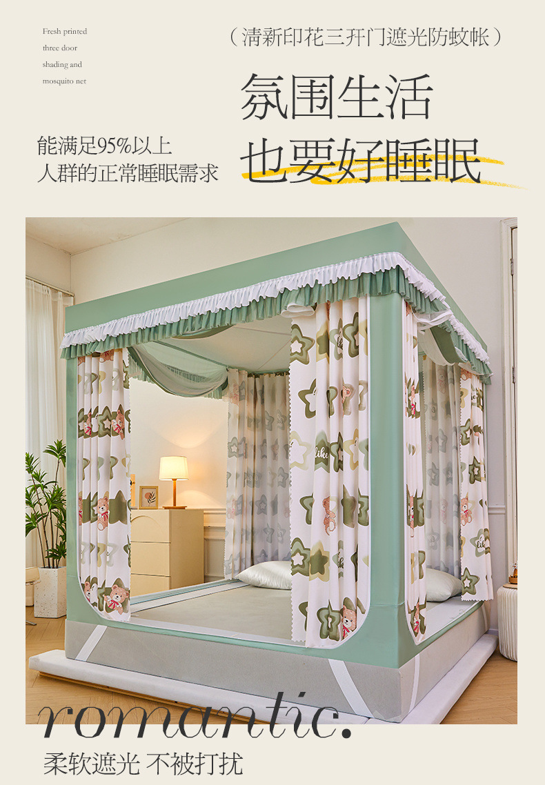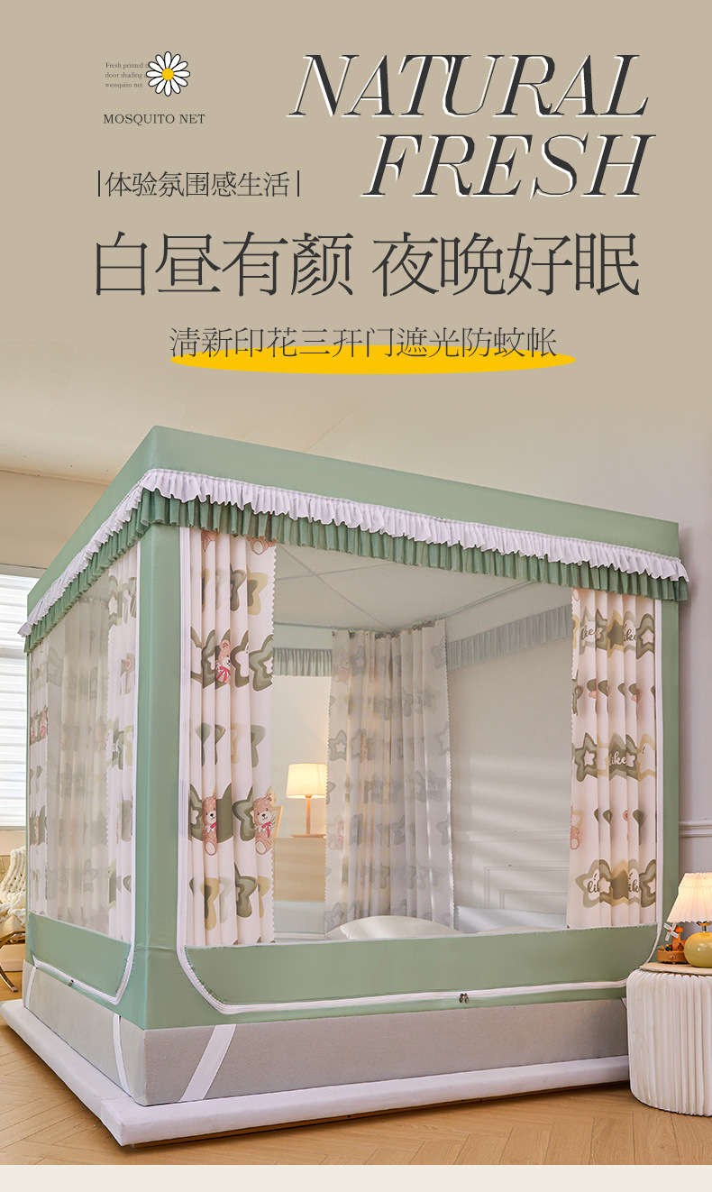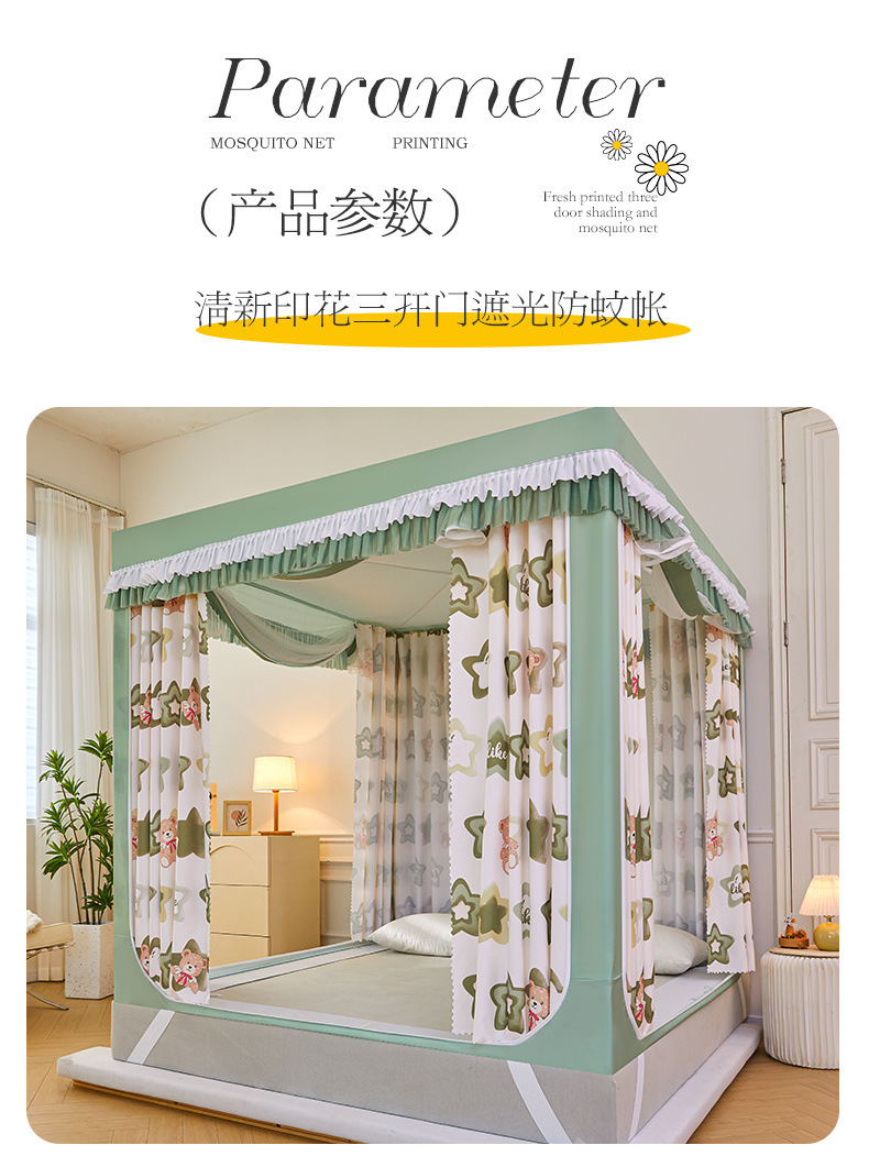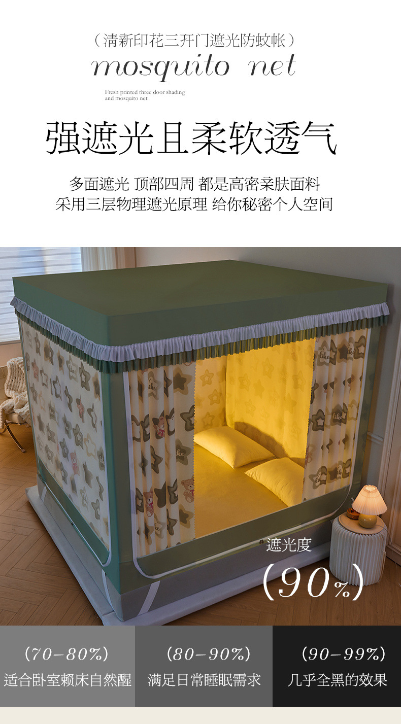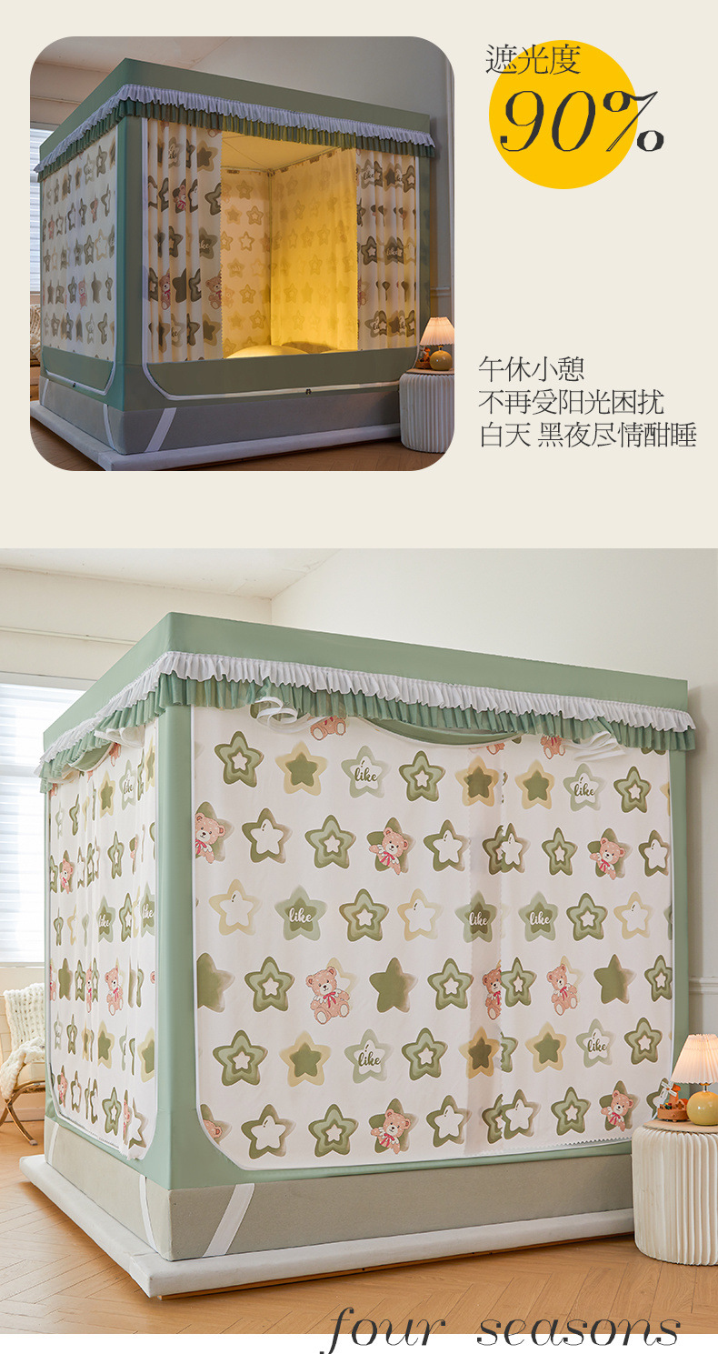 침대 커튼, 빛 차단 침대 커튼, 몽골리안 텐트, 어린이 낙하 방지 침실, 가정용 침대 커튼, 일체형 모기장 텐트스토어 가기