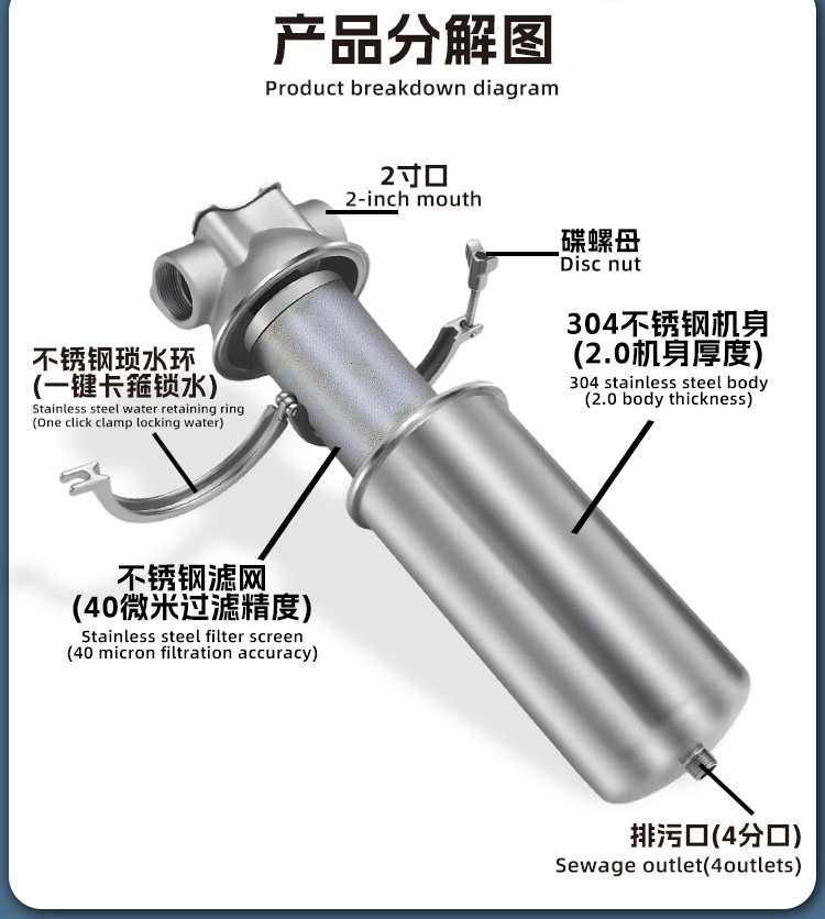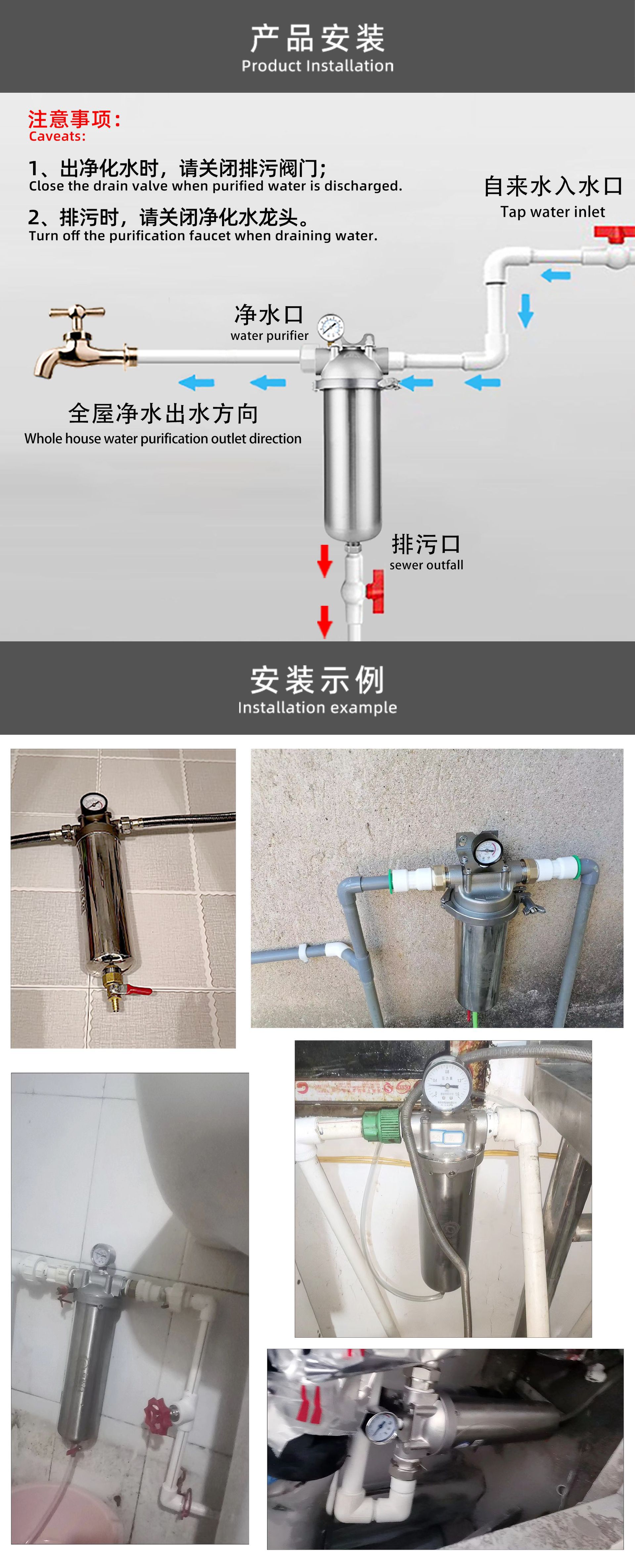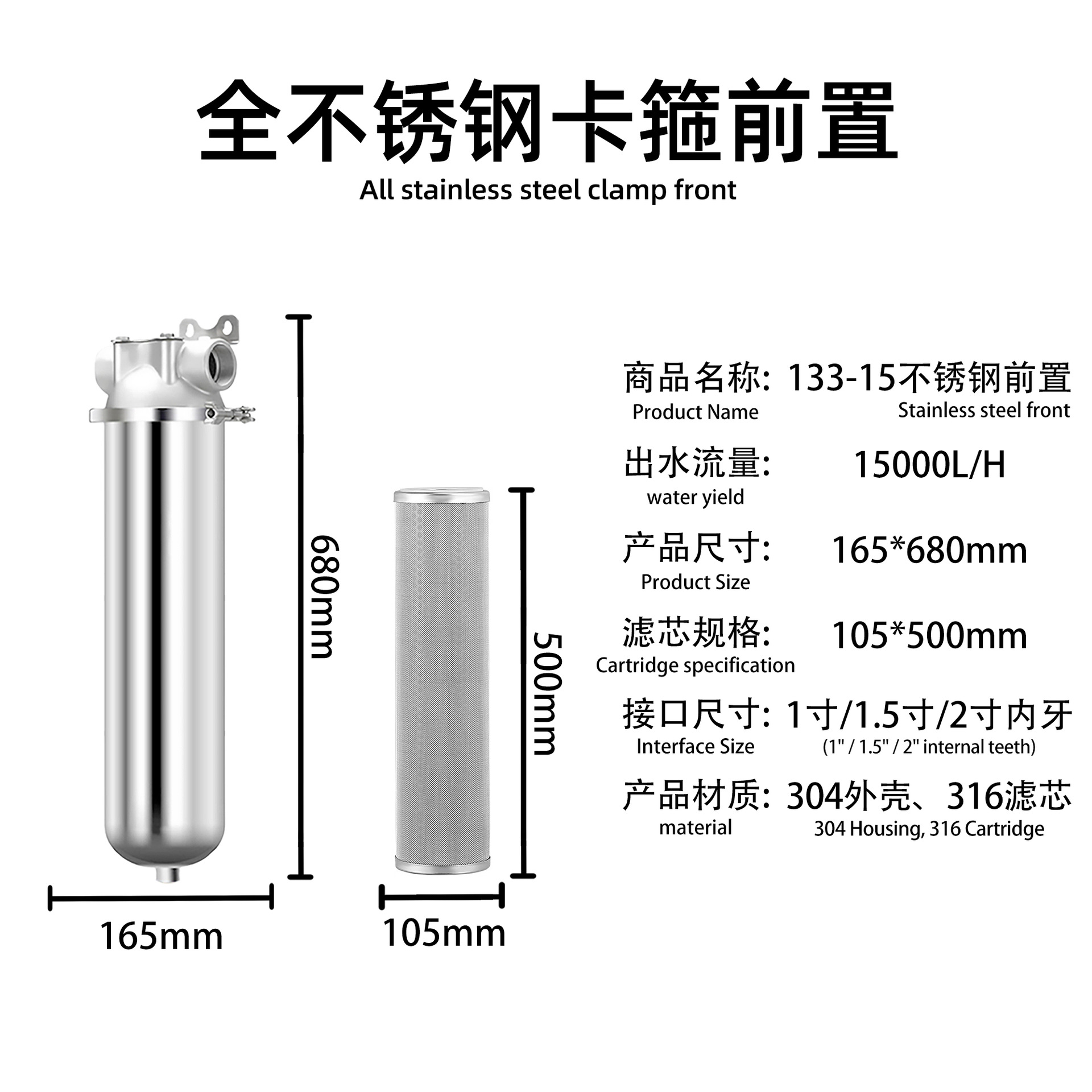 클램프 전면 정수기 304 스테인레스 스틸 대유량 빌라 정수기 빅 팻 파이프 전면 필터스토어 가기