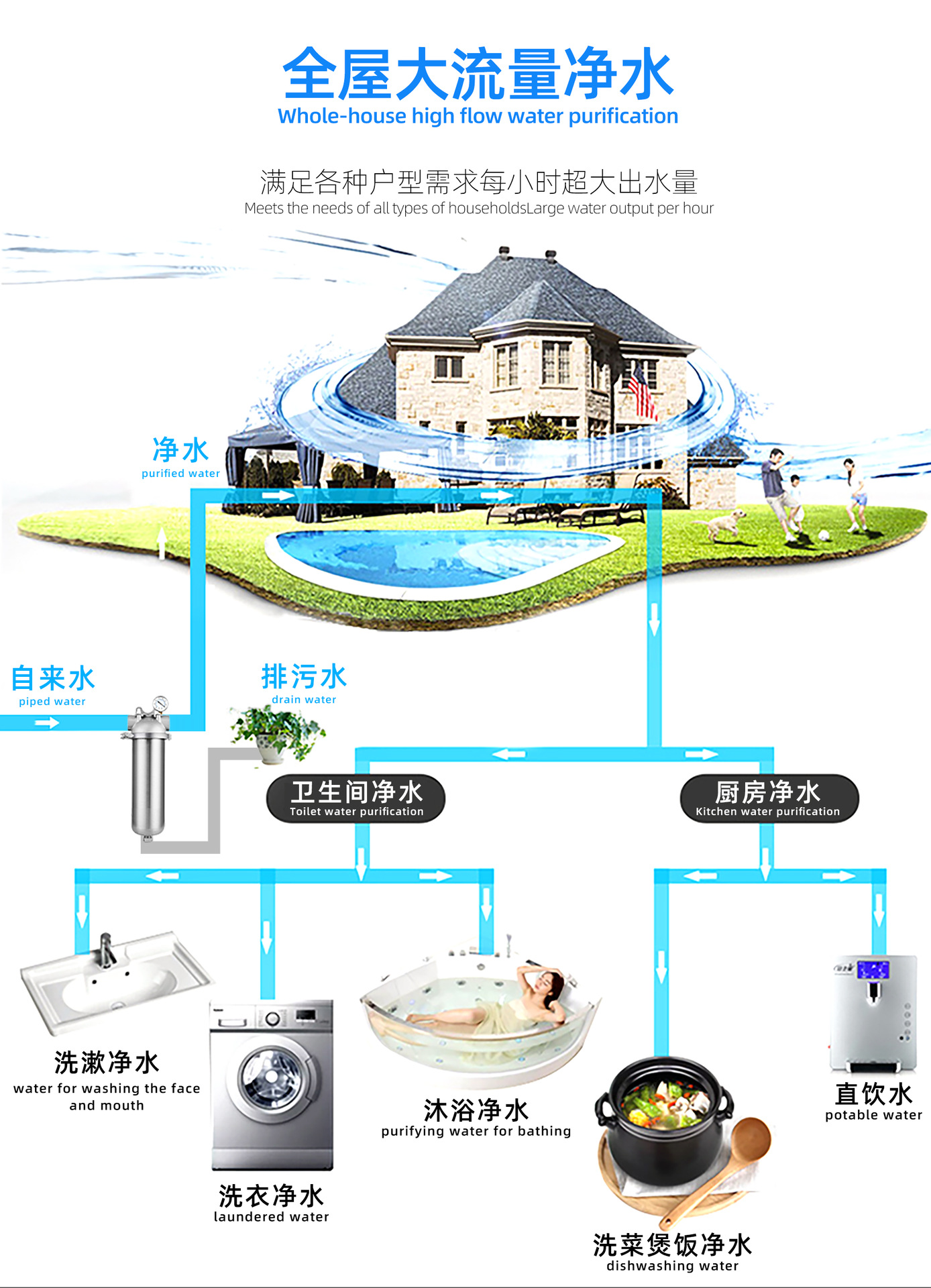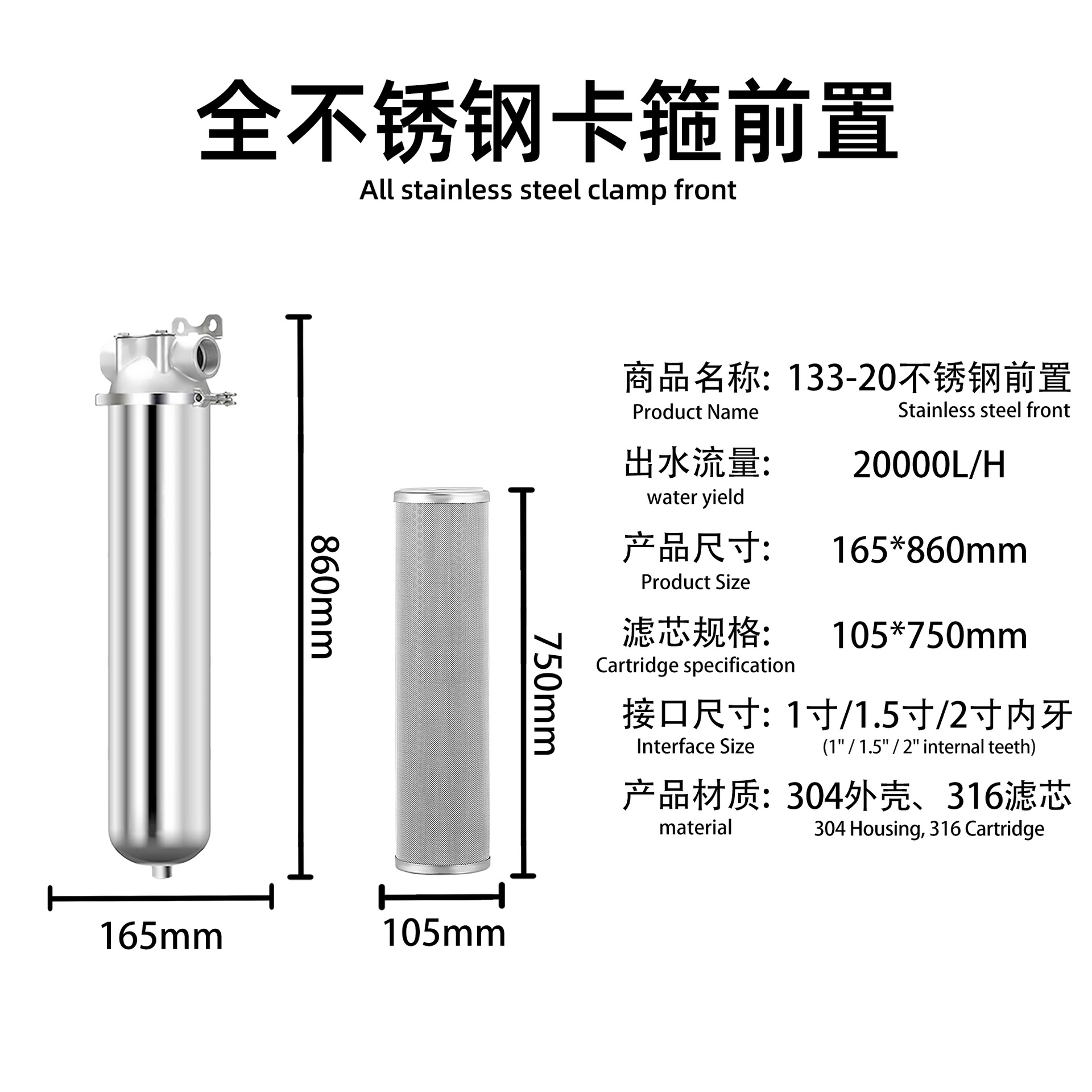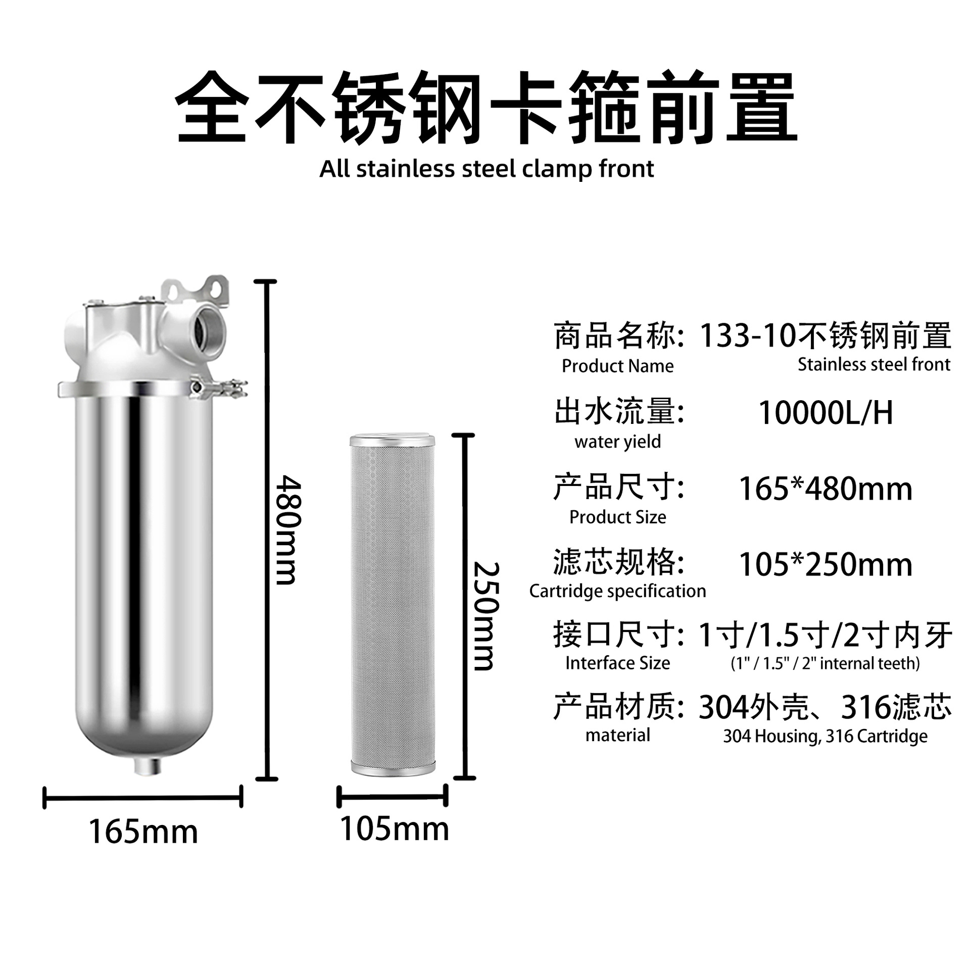 클램프 전면 정수기 304 스테인레스 스틸 대유량 빌라 정수기 빅 팻 파이프 전면 필터