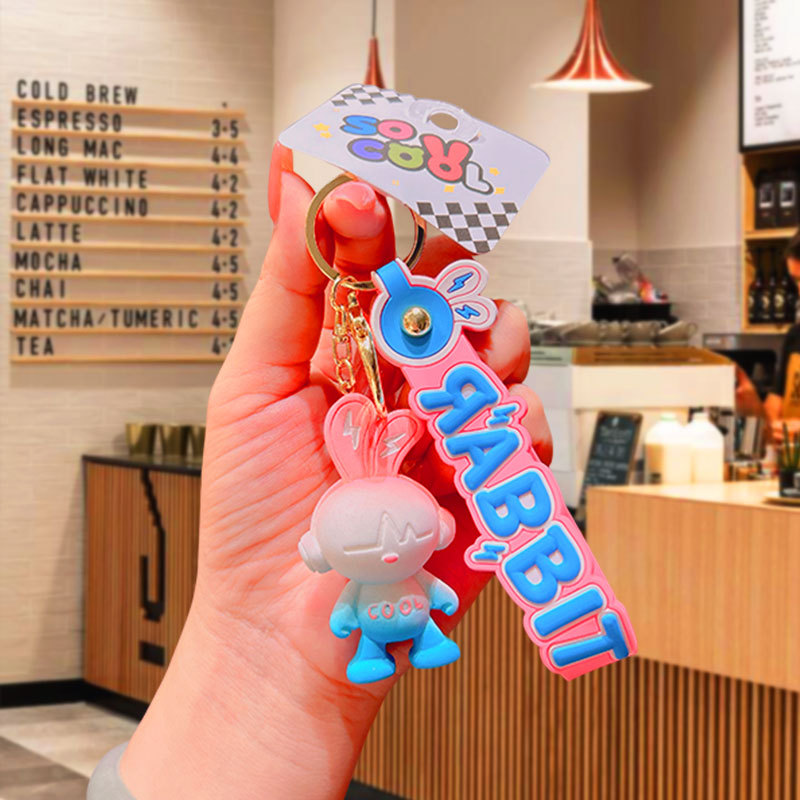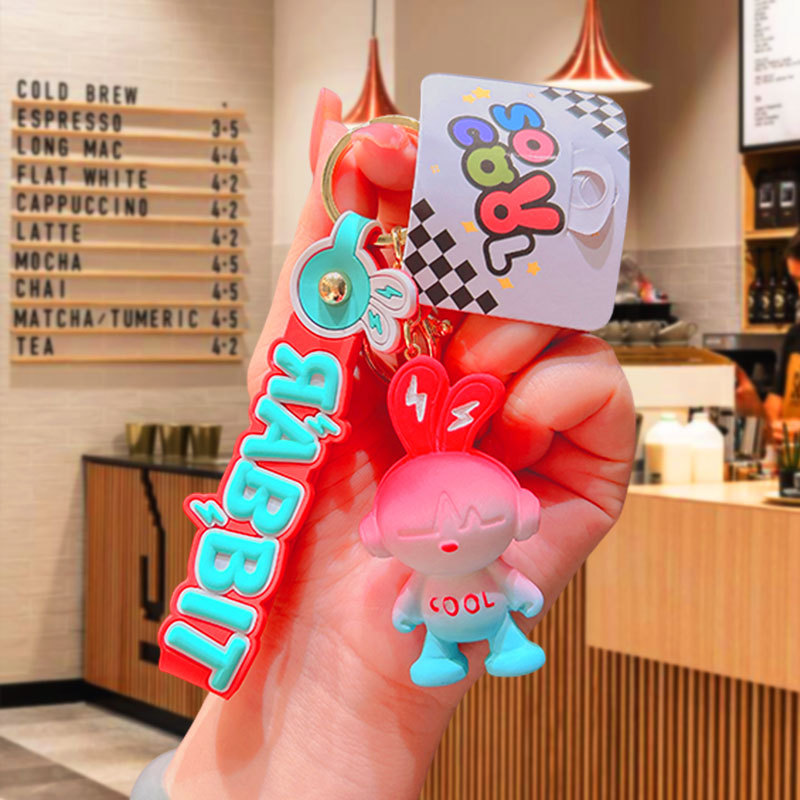 • 트렌디 그라데이션 토끼 열쇠고리-로즈 레드