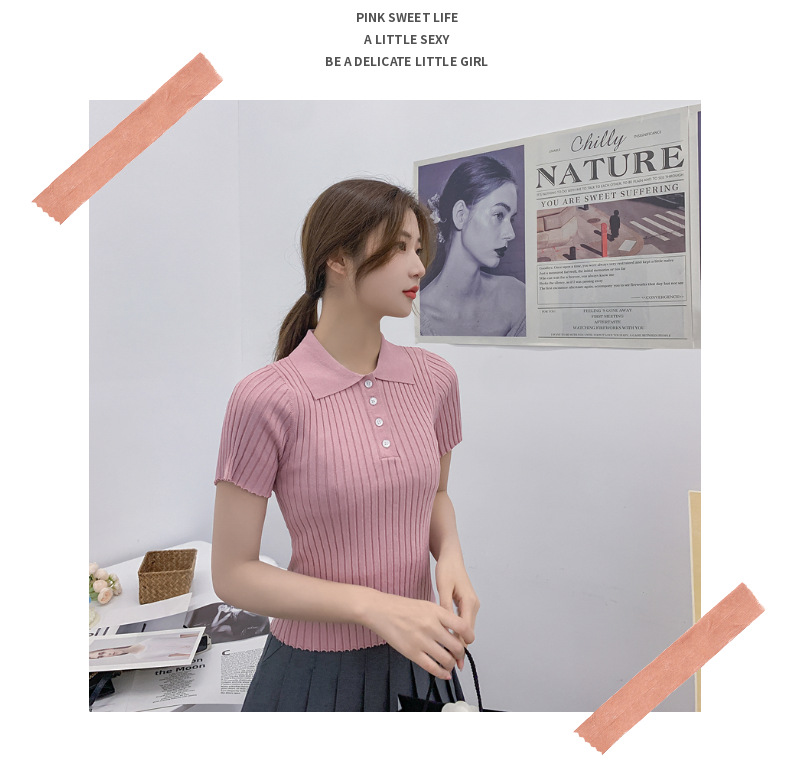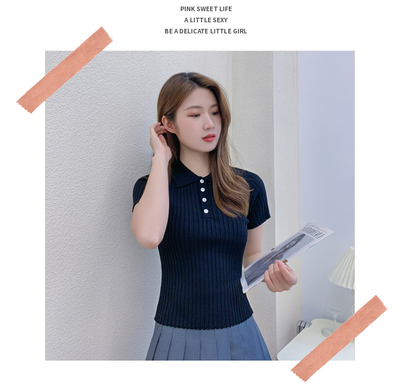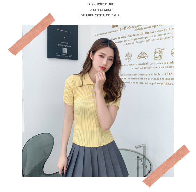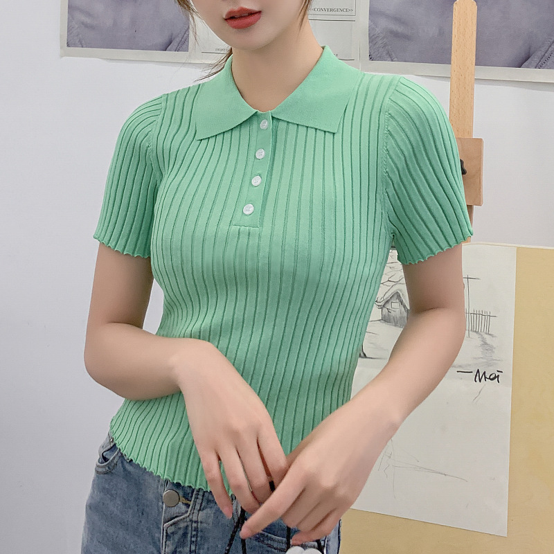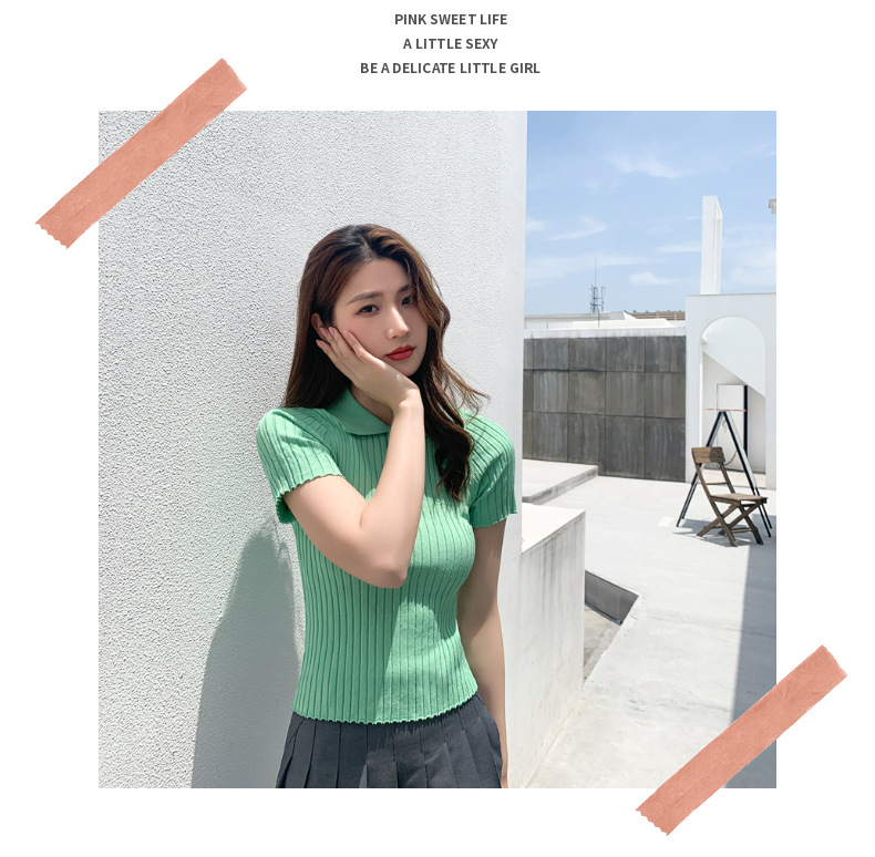 여성 니트 반팔 여성 의류 봄과 여름 프랑스 스타일 우아한 슬림 핏 슬리밍 티셔츠 얇은 짧은 니트 스웨터 탑 클리어런스