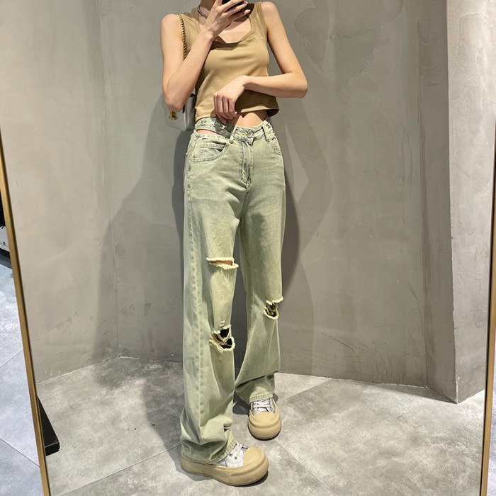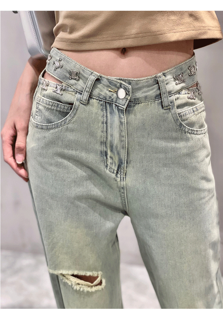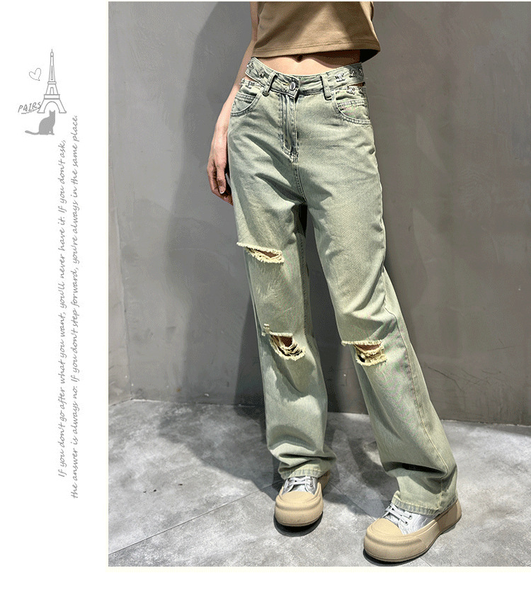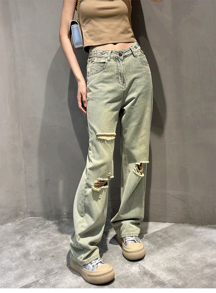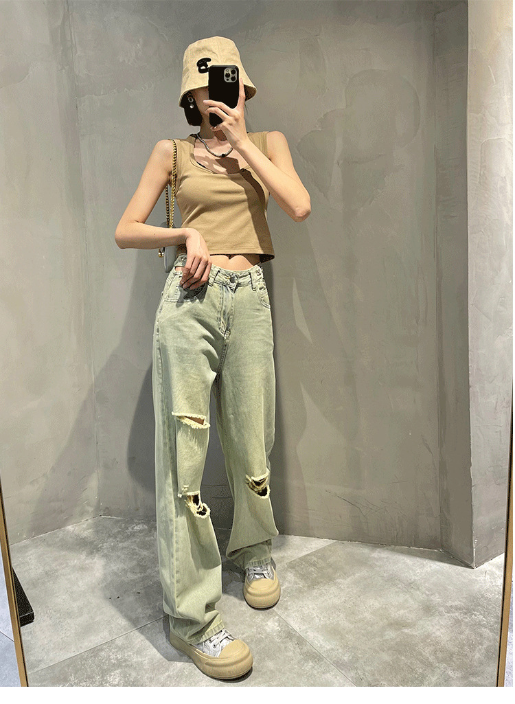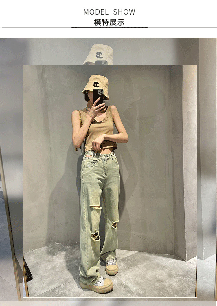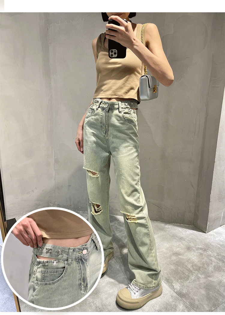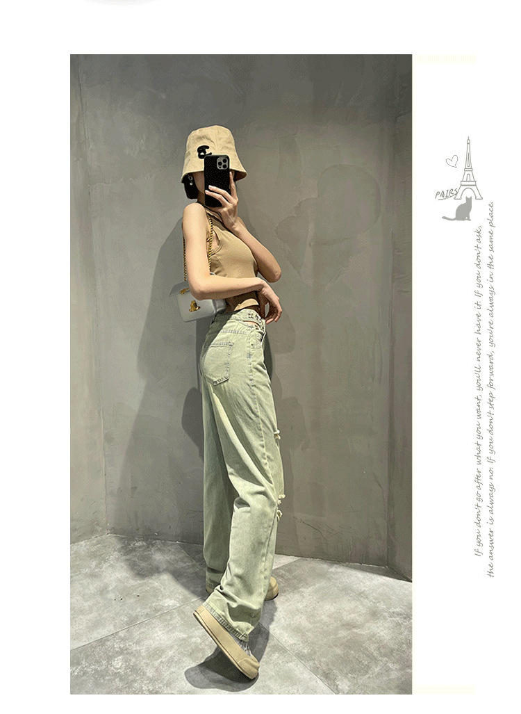홍콩 스타일 복고풍 넓은 다리 청바지 여성용 2024 년 여름 새로운 독특한 세련된 느슨한 슬림 스트레이트 다리 바지스토어 가기