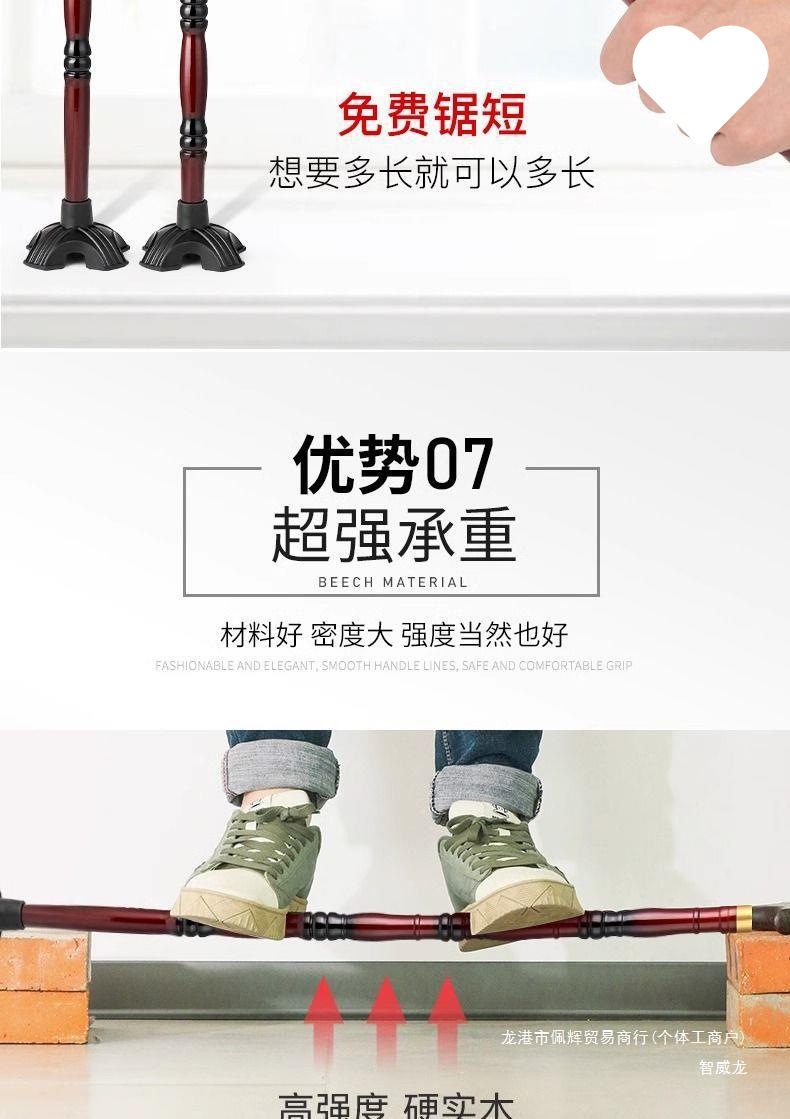 노인용 지팡이, 원목 일체형 지팡이, 나무 지팡이, 마호가니 4발 수도꼭지, 목재 경량 미끄럼 방지 등산기